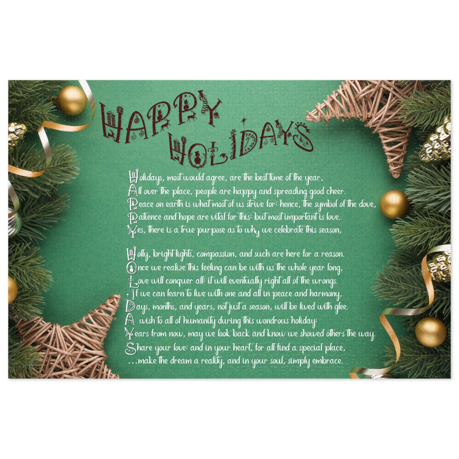 Happy Holidays Acrostic Poem Puzzle - Green Boho - Tin Box