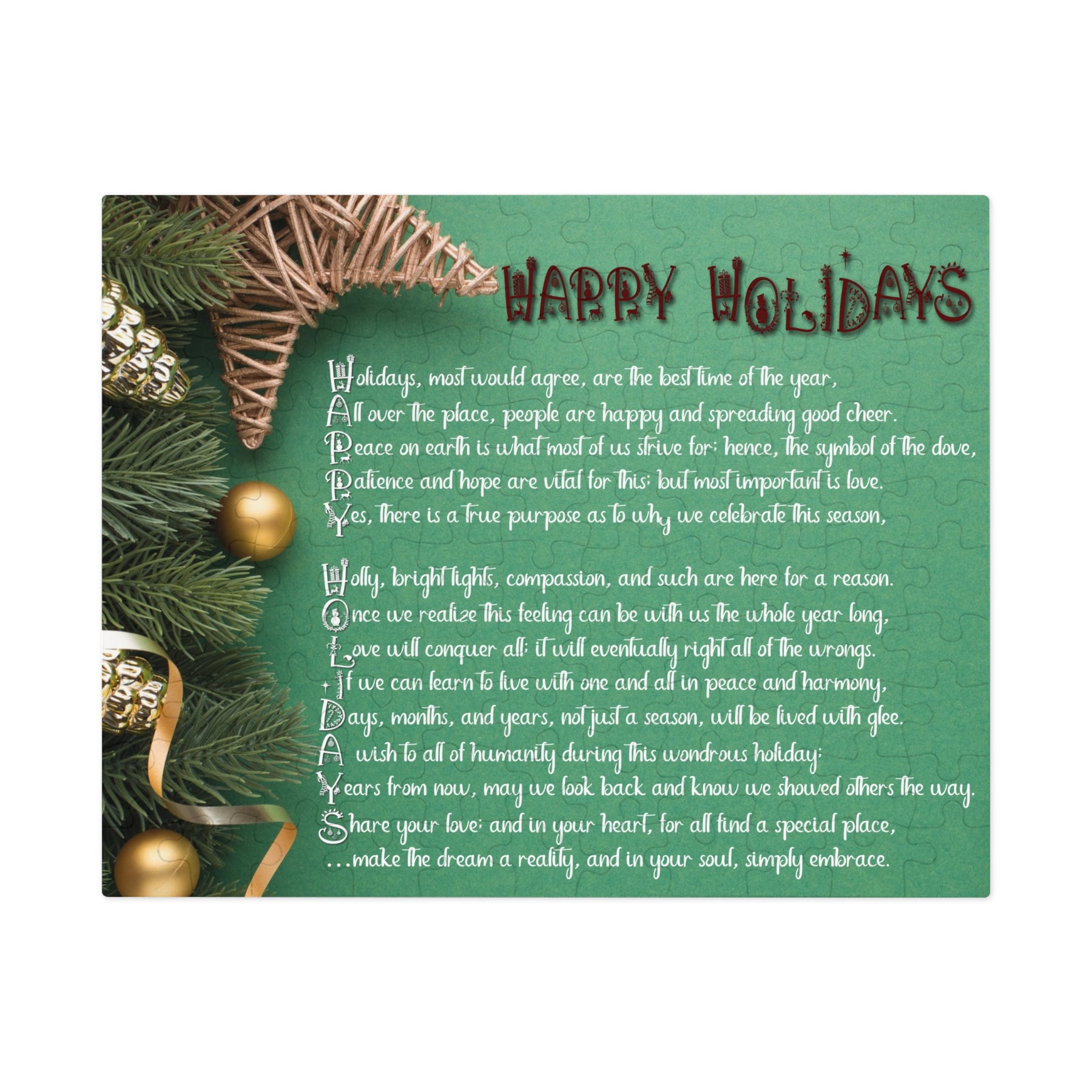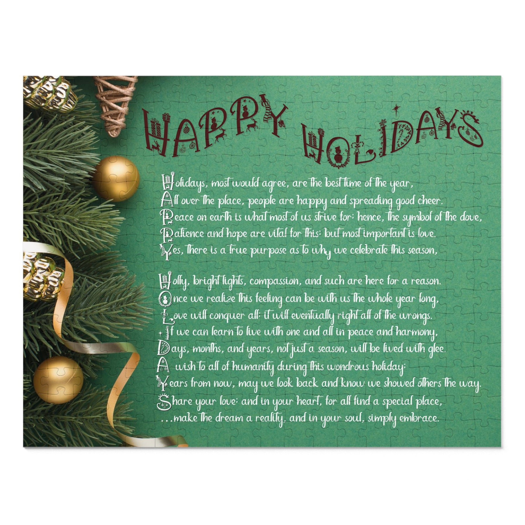 We are proud to introduce our It's Just a Phrase Puzzle Collection, meticulously crafted for puzzle enthusiasts and holiday lovers alike. Gorgeous design featuring an acrostic poem that spells out Happy Holidays. Leave this out all season long and invite family and guests to help with a piece or two here and there. They will piece together this enchanting puzzle, using each letter as a clue to unveil a captivating poem about the holiday season. With its vibrant imagery and intricate design, it's also perfect for those seeking a mindful and immersive experience. Unleash your critical thinking skills and embrace the magic of this exquisite puzzle.