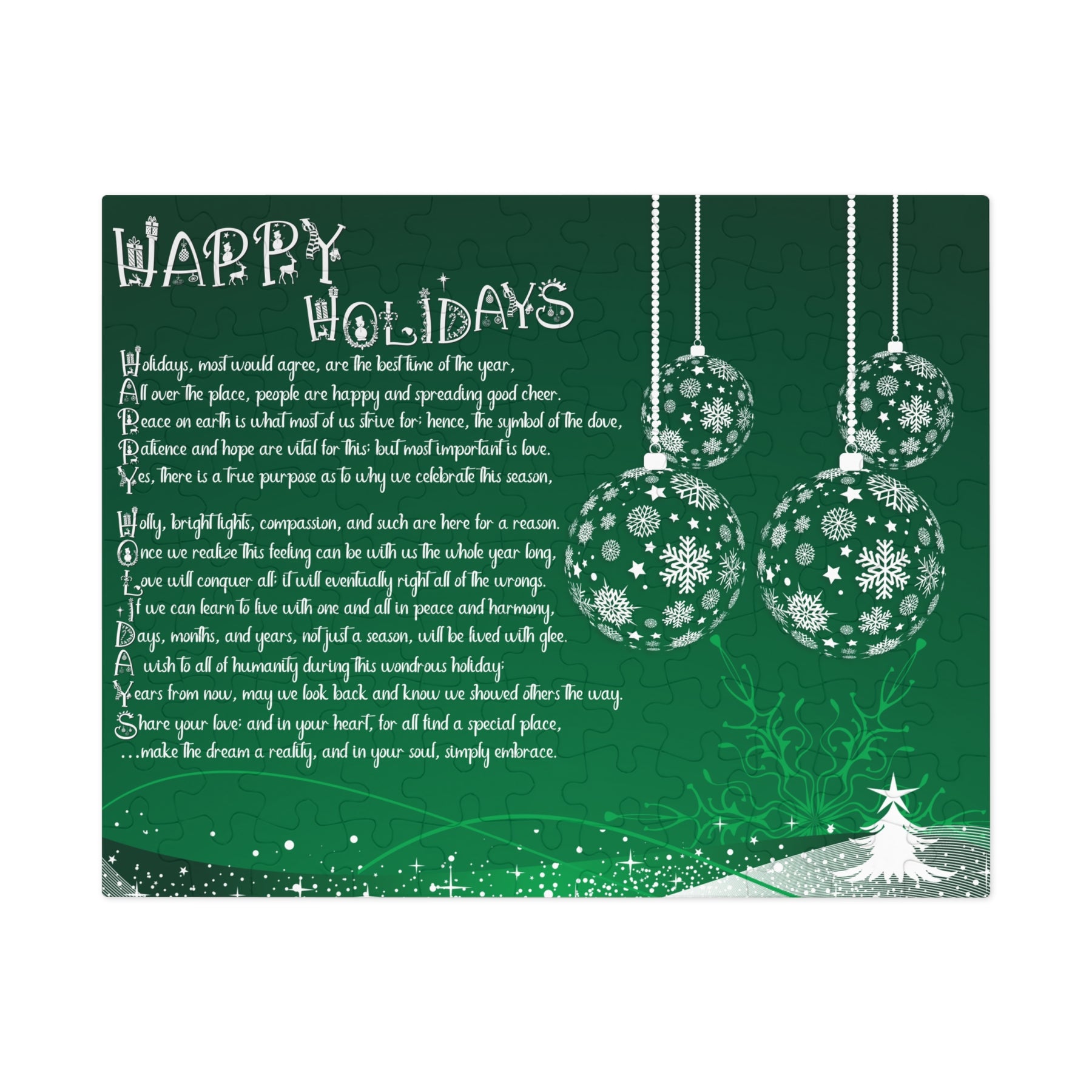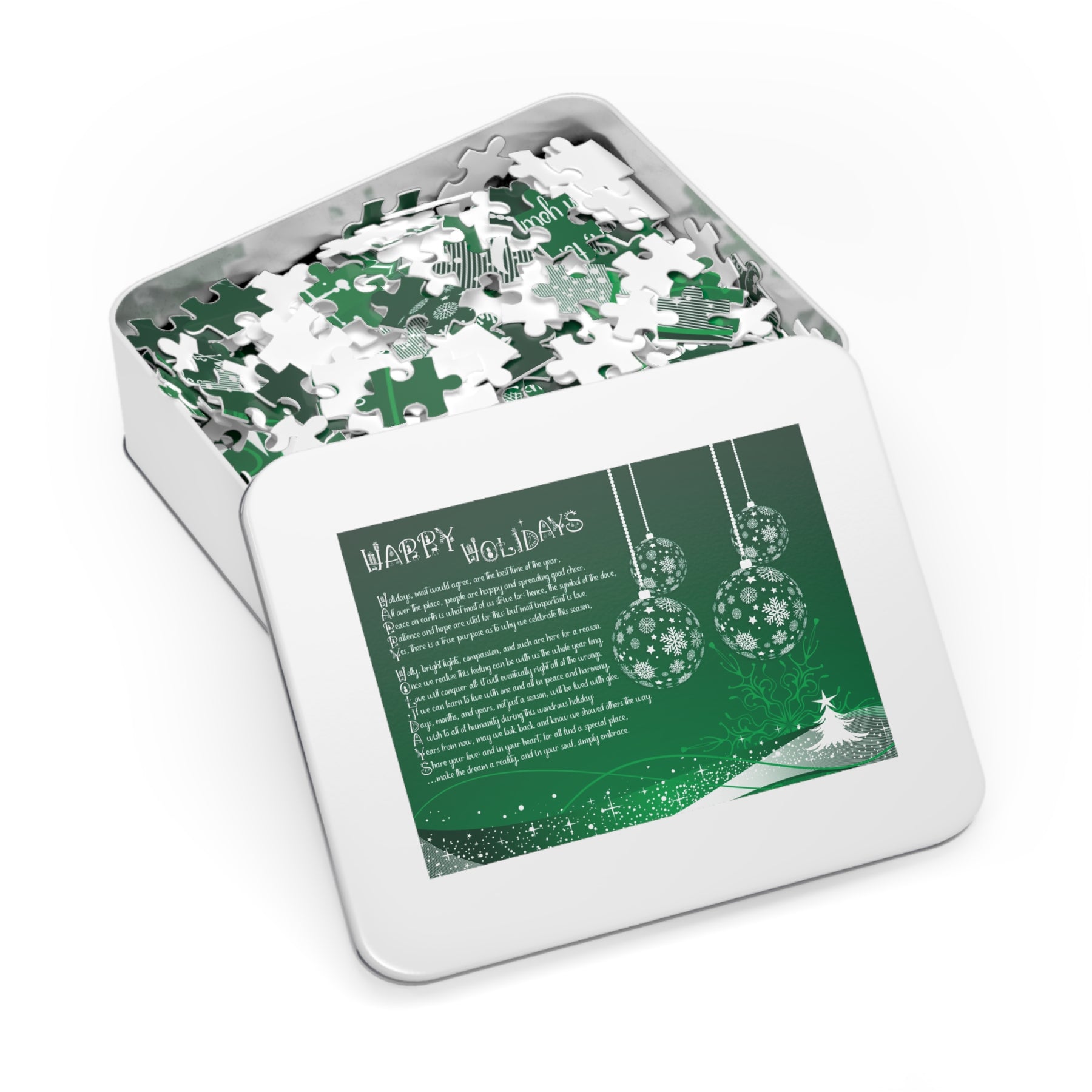 Happy Holidays Acrostic Poem Puzzle - Ornaments-Green - Tin Box