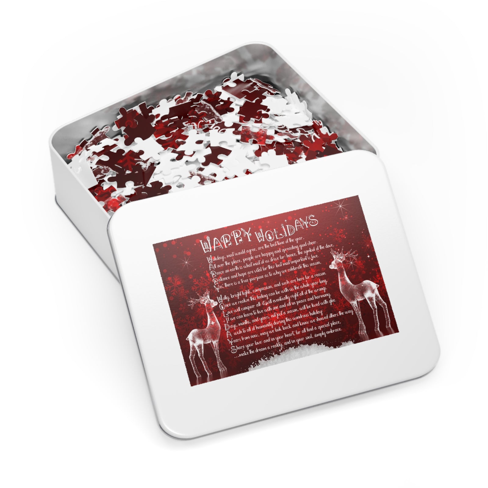 Moments in Rhyme introduces our Rhymes & Seasons Puzzle Collection, meticulously crafted for puzzle enthusiasts and holiday lovers alike—featuring a gorgeous design that spells out various holiday phrases through an acrostic poem. Pick one and leave it out all season long; invite family and guests to help with a piece or two here and there. They will piece together an enchanting puzzle, using each letter as a clue to unveil a captivating poem about the holiday season. With its vibrant imagery and intricate design, it's also perfect for those seeking a mindful and immersive experience. Unleash your critical thinking skills and embrace the magic of this exquisite puzzle.