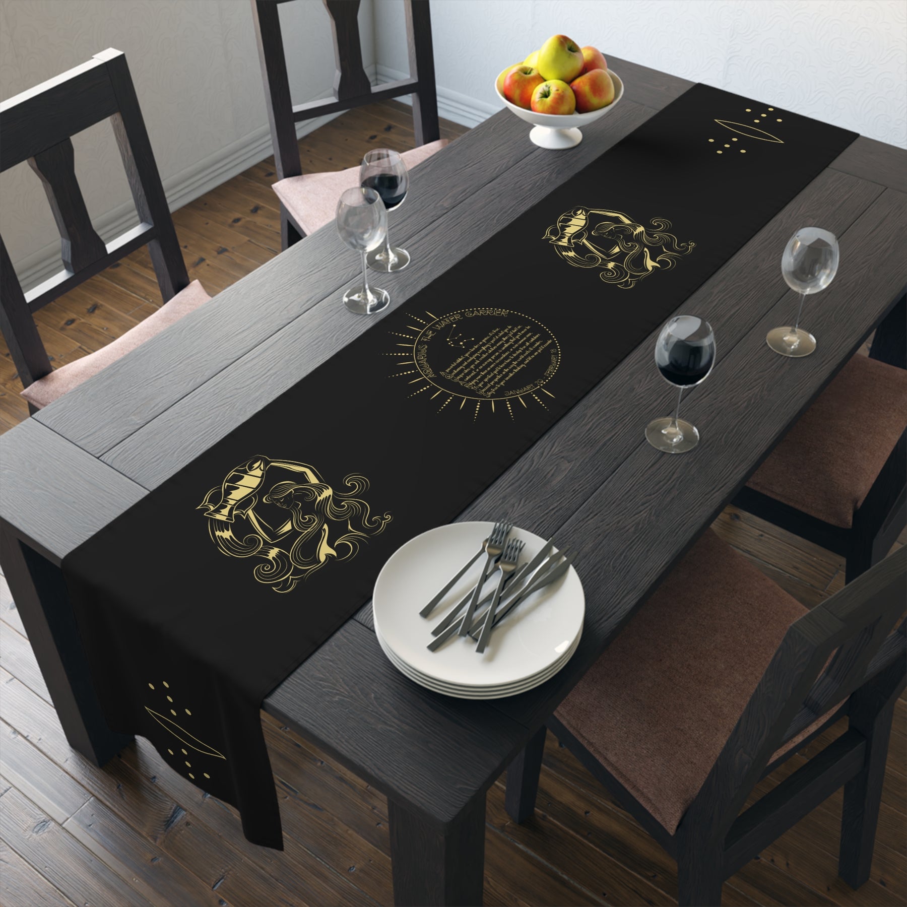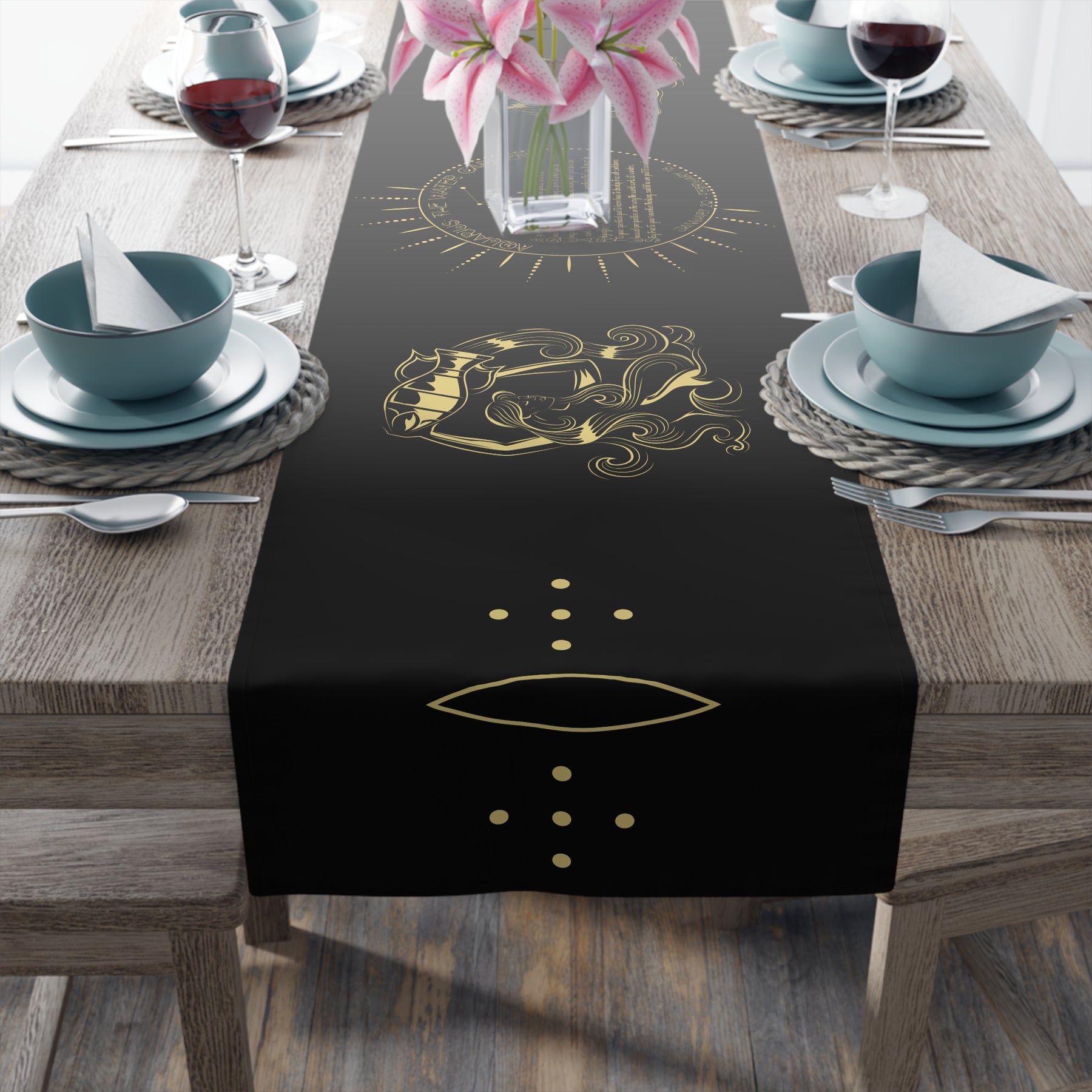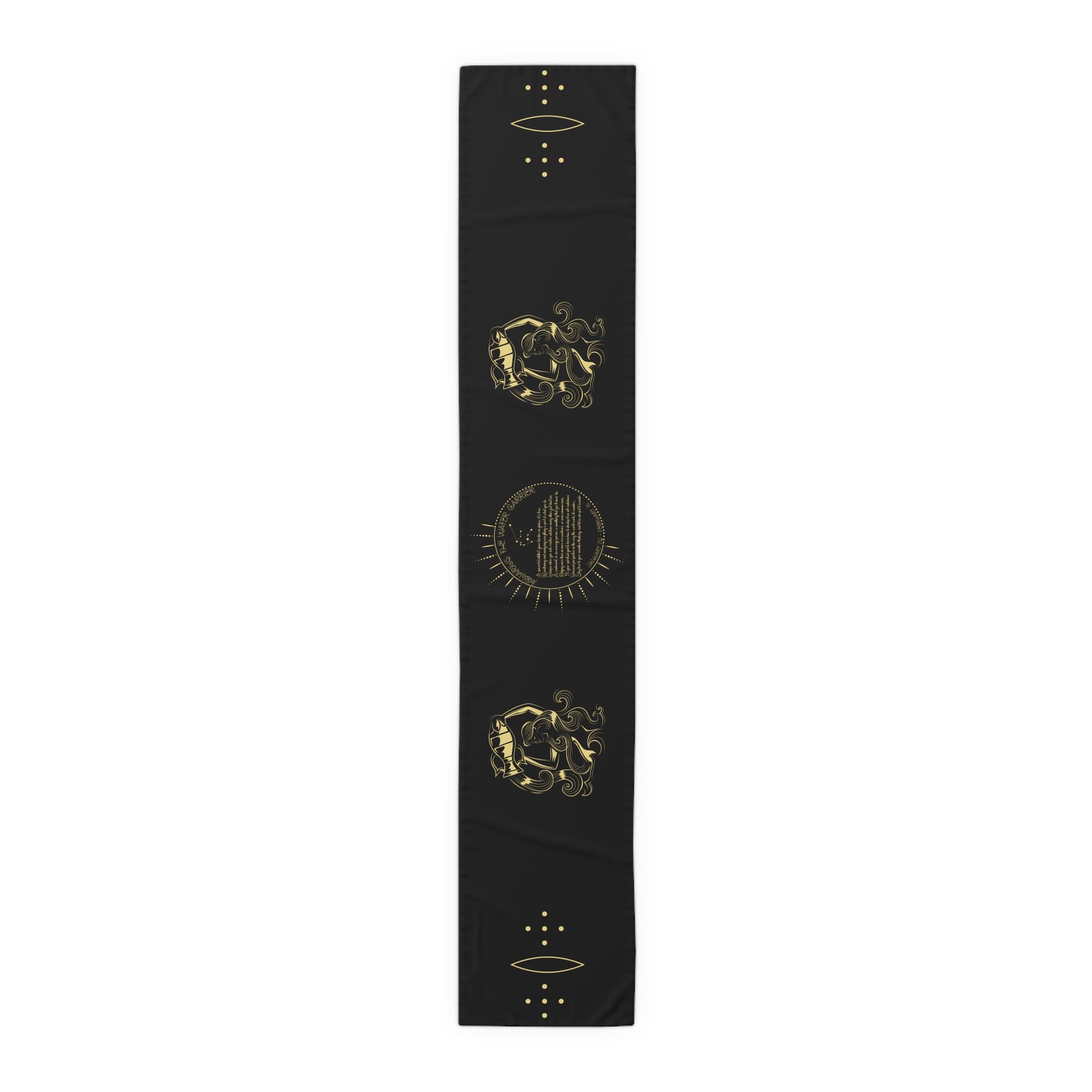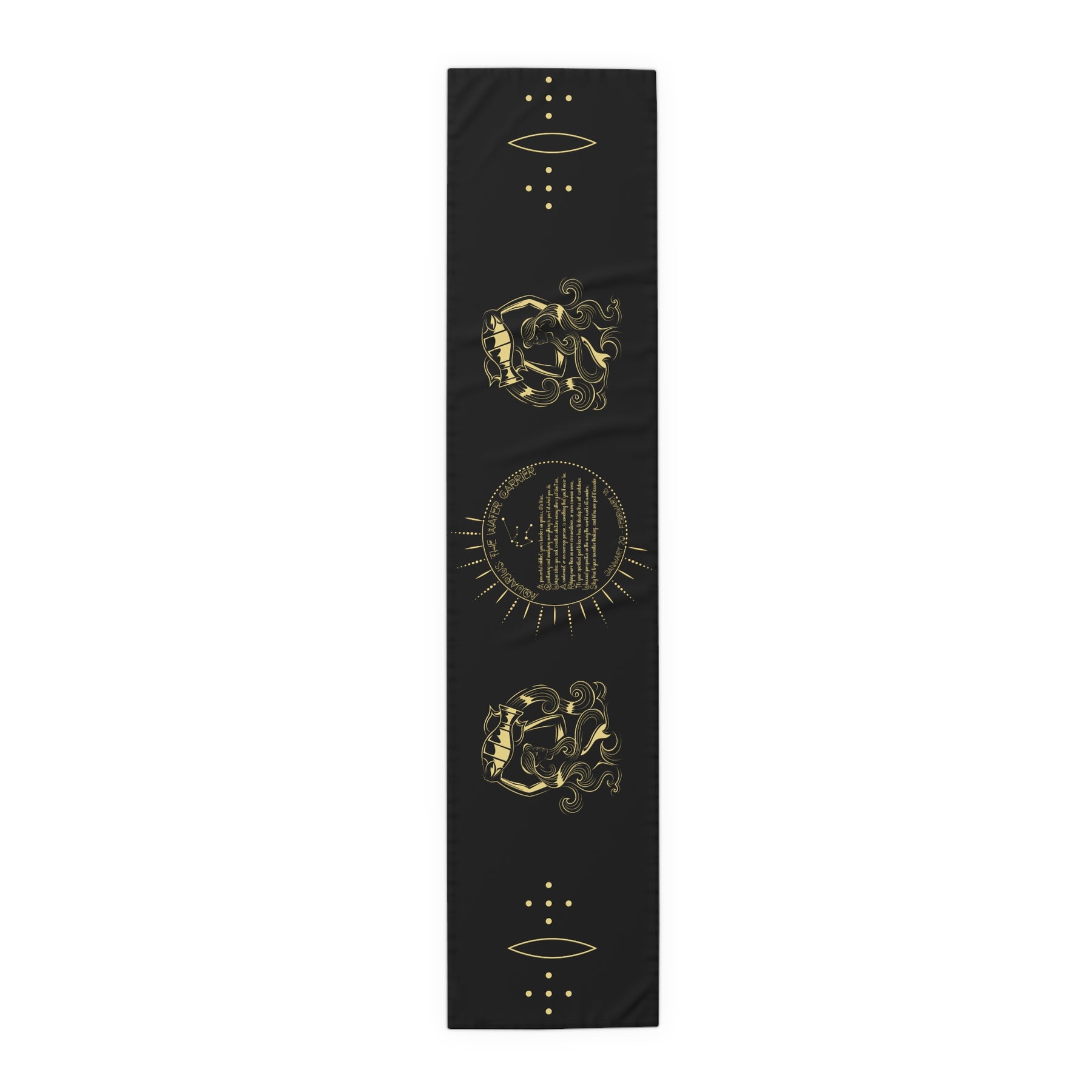 This horoscope-themed table runner is an excellent pick for astrology fans. It makes a thoughtful gift for birthdays or holidays. The Written in the Stars design features an acrostic poem that spells out Aquarius in a unique celestial font. Use it to add a playful touch to your next gathering. It's perfect for anyone who loves astrology or enjoys hosting gatherings with friends and family. Hemmed edges for durability.