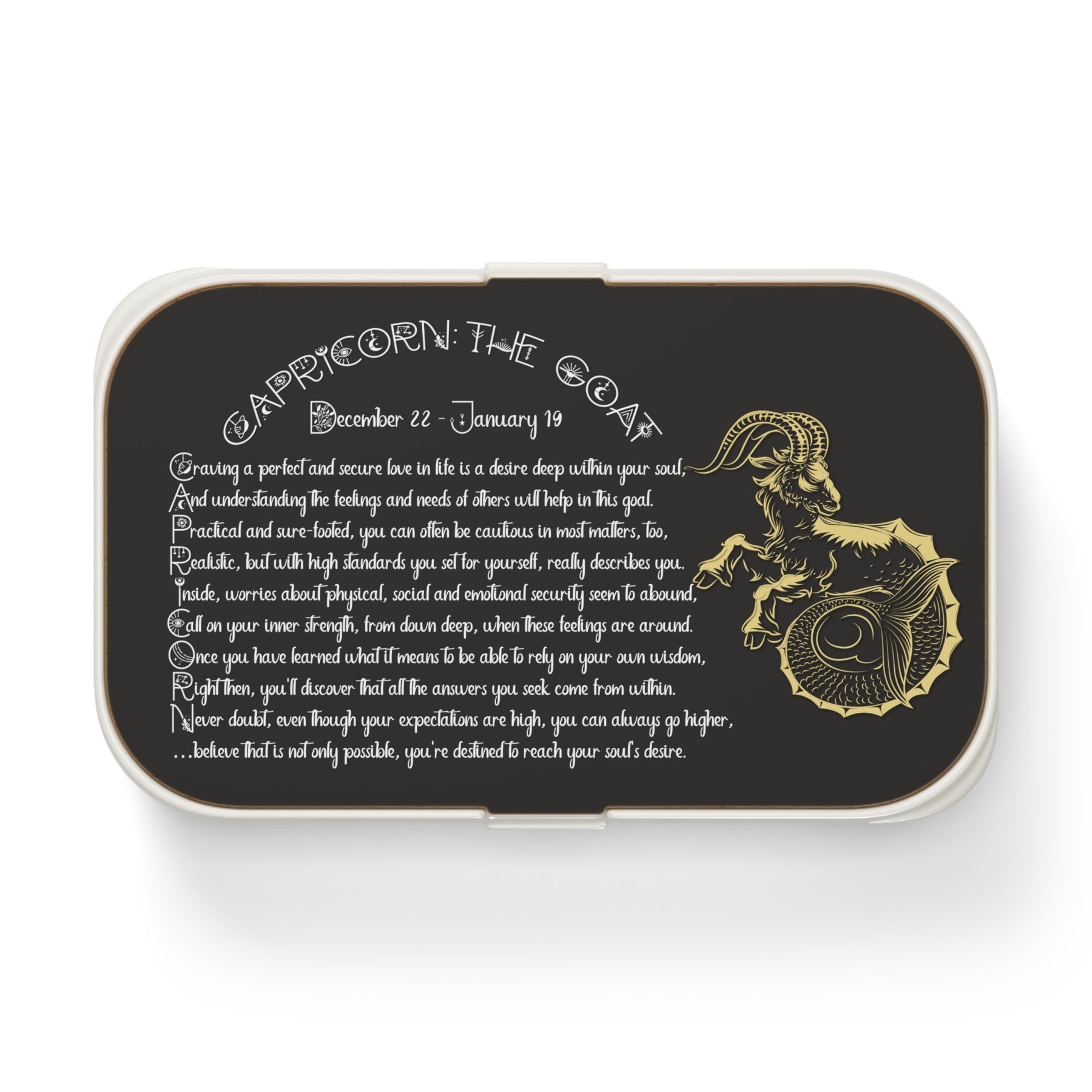 Enjoy fresh food on your own terms, whether at work, school, or a picnic. Written in the Stars presents our Capricorn acrostic poem, beautifully printed on a bento-style lunchbox with two compartments to keep your food separate. The stylish wooden lid can double as a handy plate. The compact size makes it a convenient choice that easily fits into any bag or backpack. Just check out the amazing Celestial font!