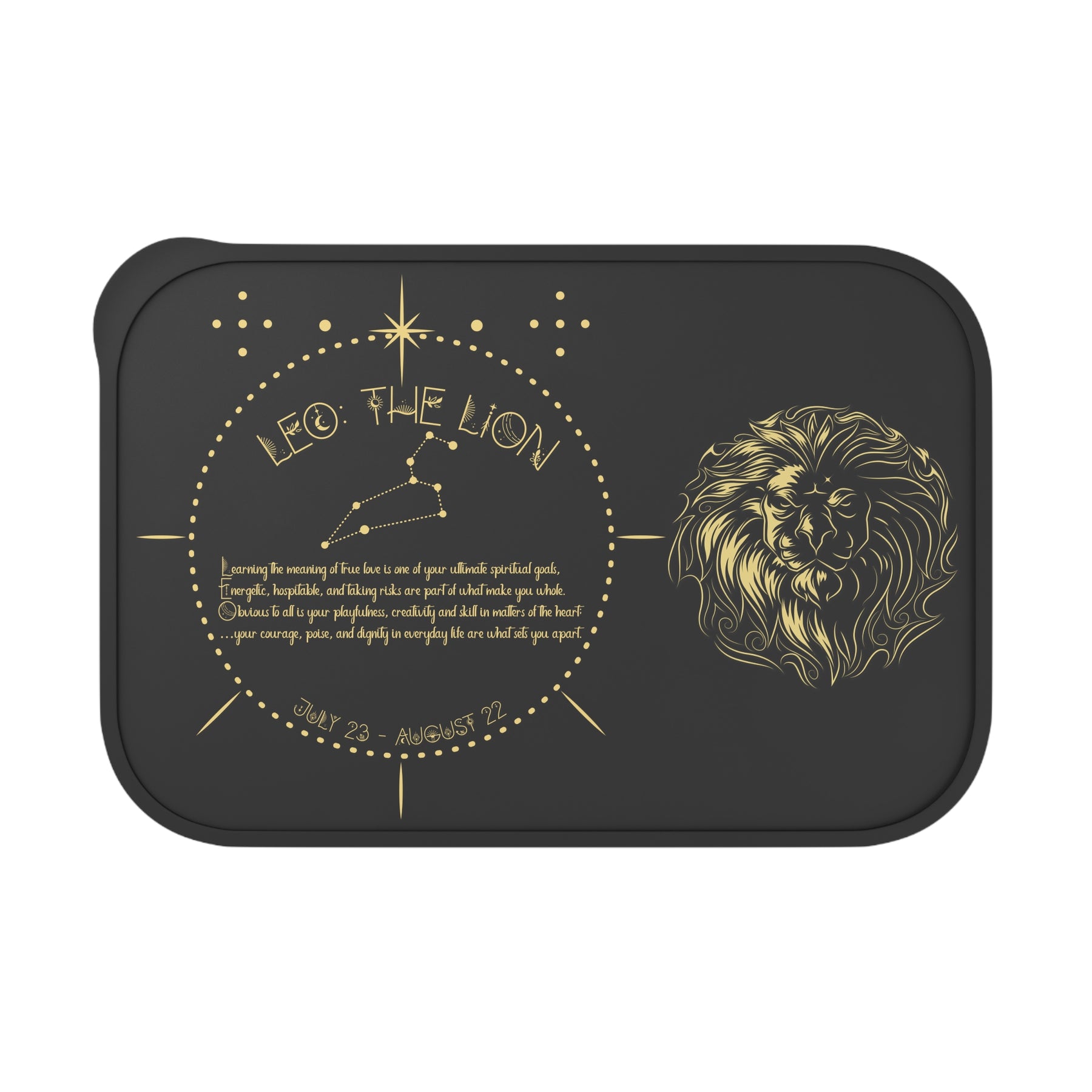 Discover Written in the Stars Leo Iacrostic poem Bento Box, designed for those who care about style and the environment. This unique lunch box makes meals more enjoyable and brightens up any lunch break. Its stipple print texture and artistic lid catch the eye, whether you’re at work, school, or out for a picnic.