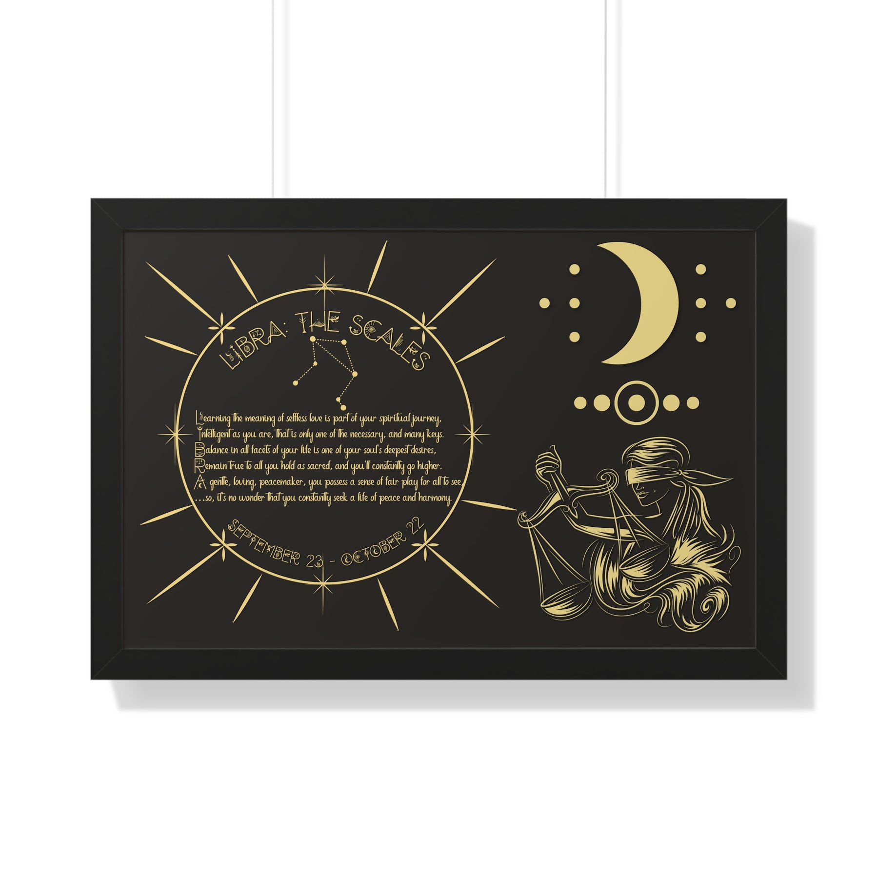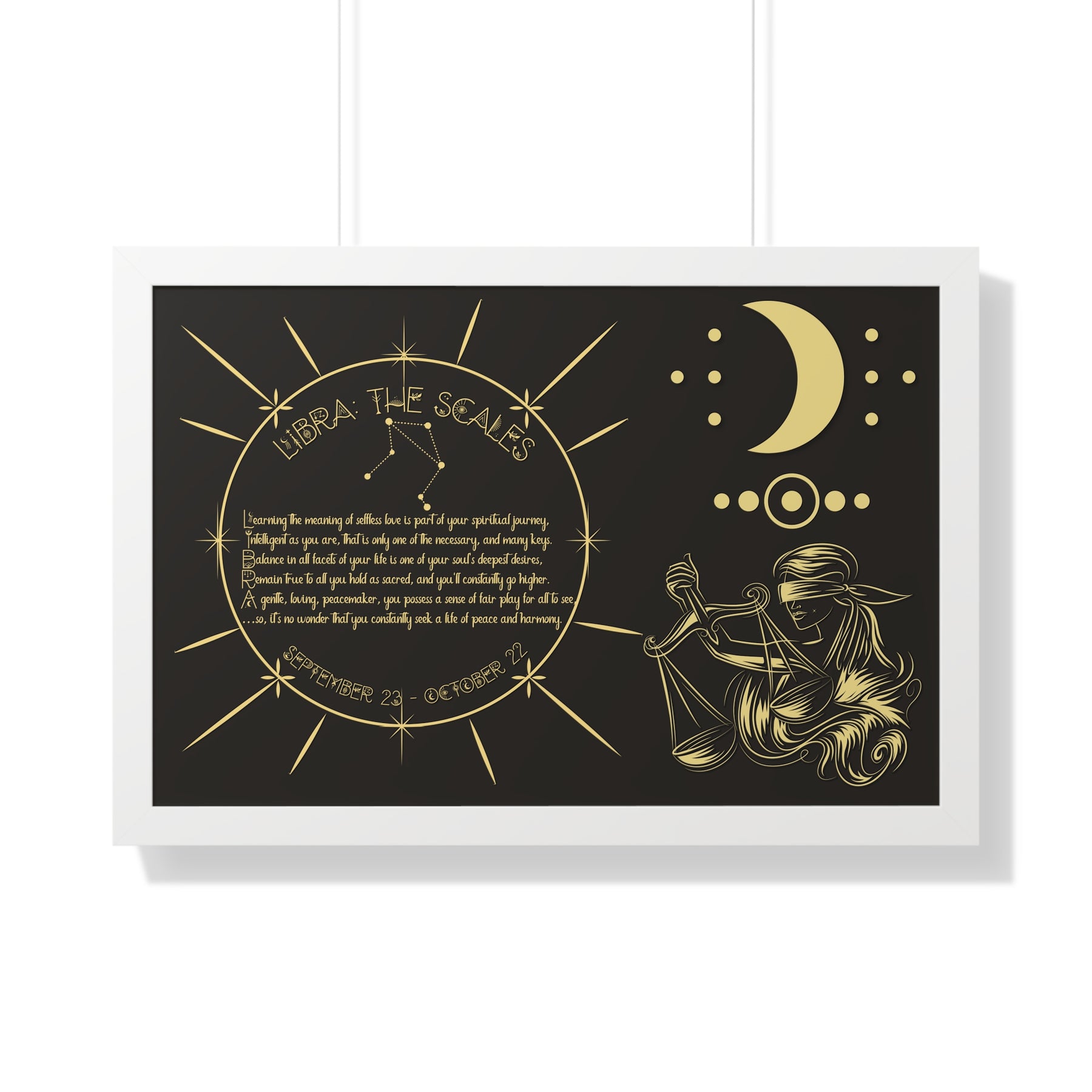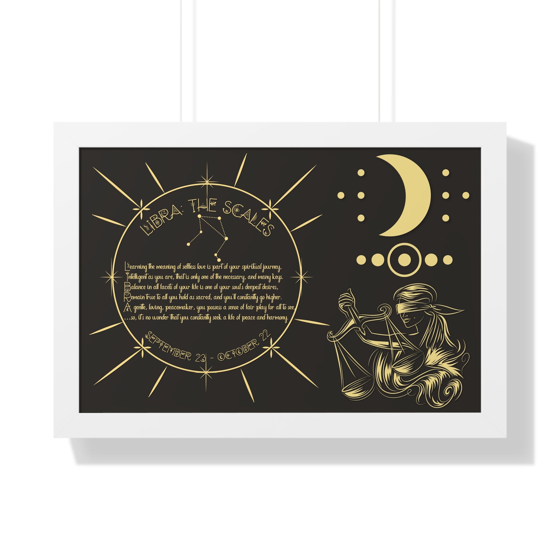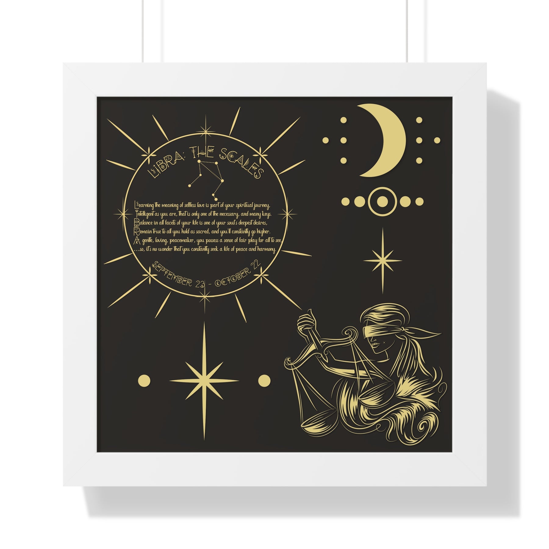 Moments in Rhyme presents Written in the Stars Framed Acrostic Poem Prints. This is the perfect addition to any astrology enthusiast's collection. This stunning and one-of-a-kind print features an acrostic poem, creatively spelling out "Libra" while embodying this zodiac sign's unique traits and ambitions. Don't pass up on this special and motivating gift for Christmas or a birthday.