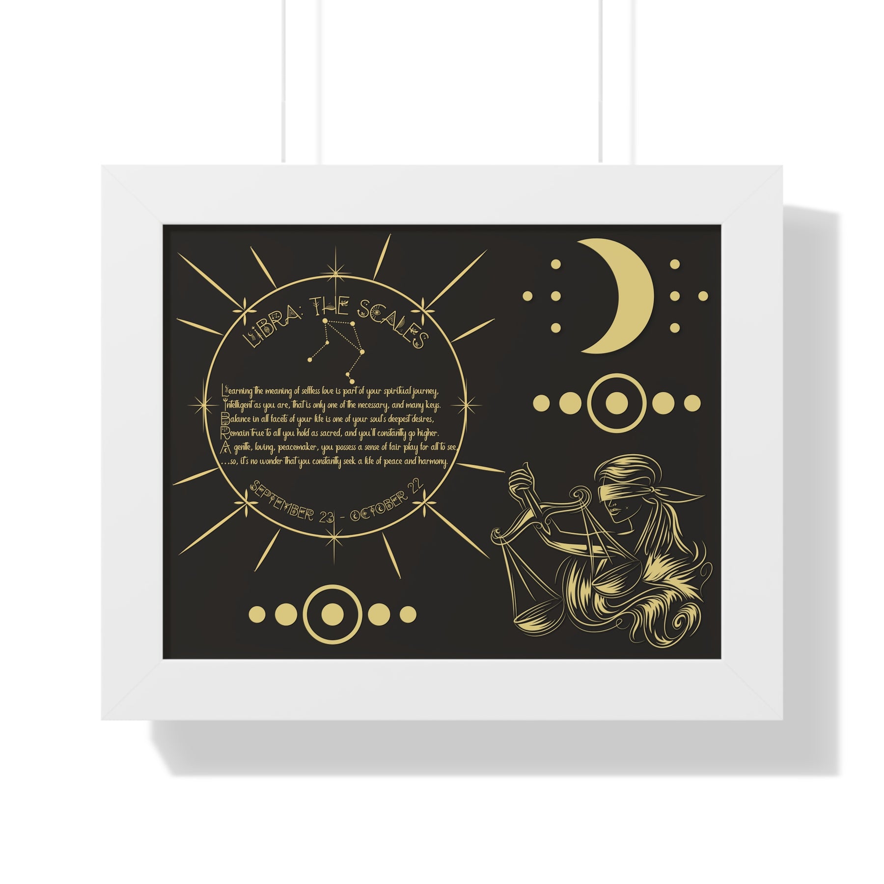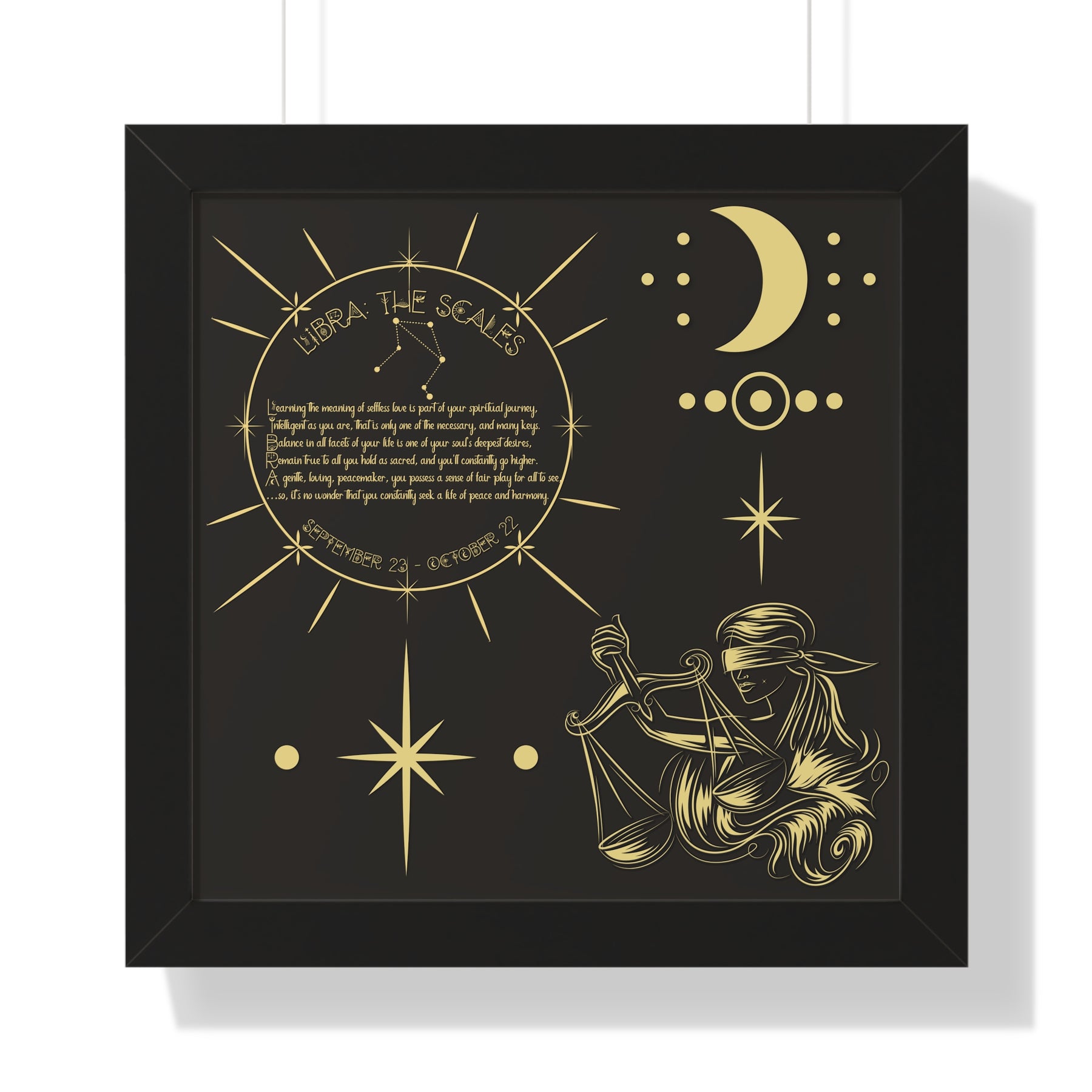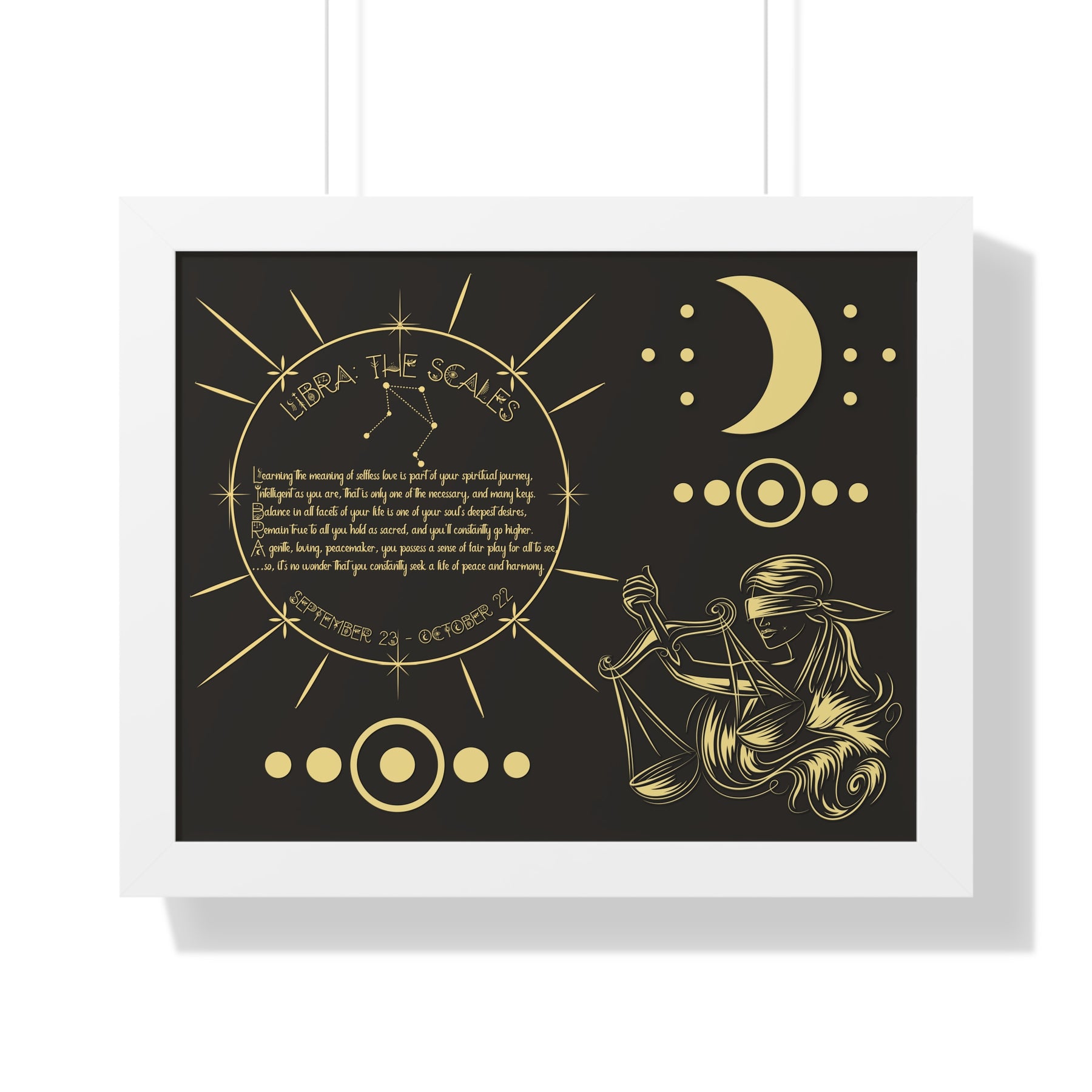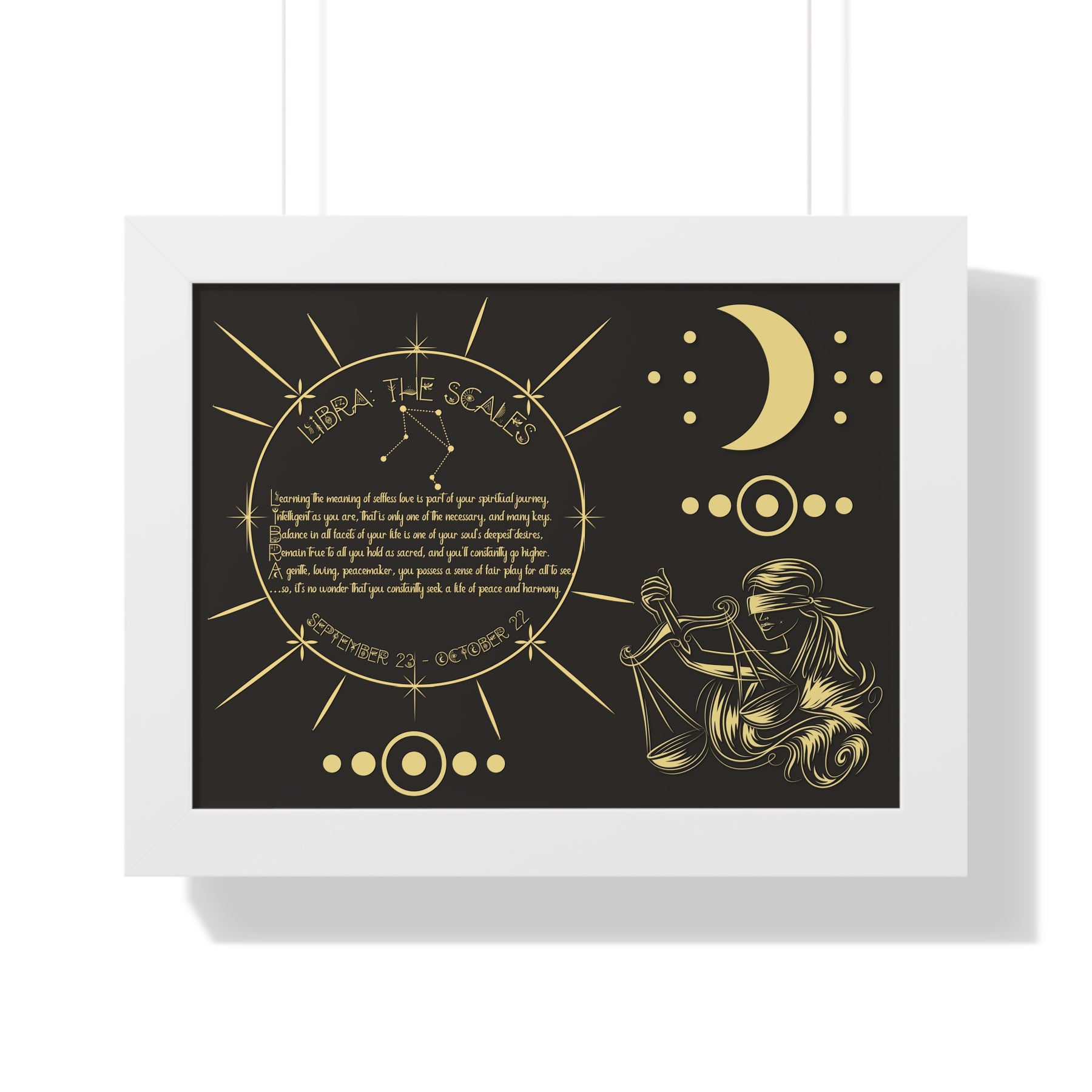 Moments in Rhyme presents Written in the Stars Framed Acrostic Poem Prints. This is the perfect addition to any astrology enthusiast's collection. This stunning and one-of-a-kind print features an acrostic poem, creatively spelling out "Libra" while embodying this zodiac sign's unique traits and ambitions. Don't pass up on this special and motivating gift for Christmas or a birthday.