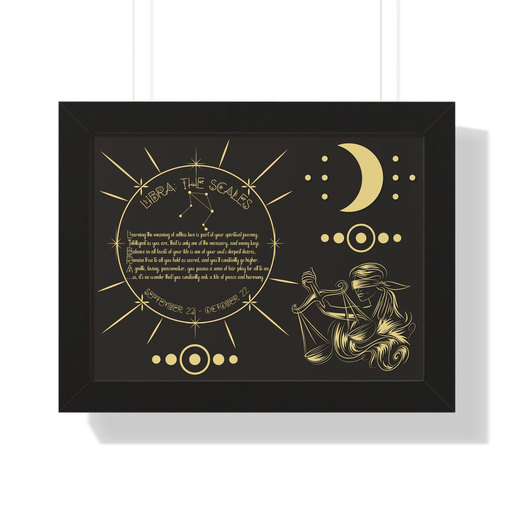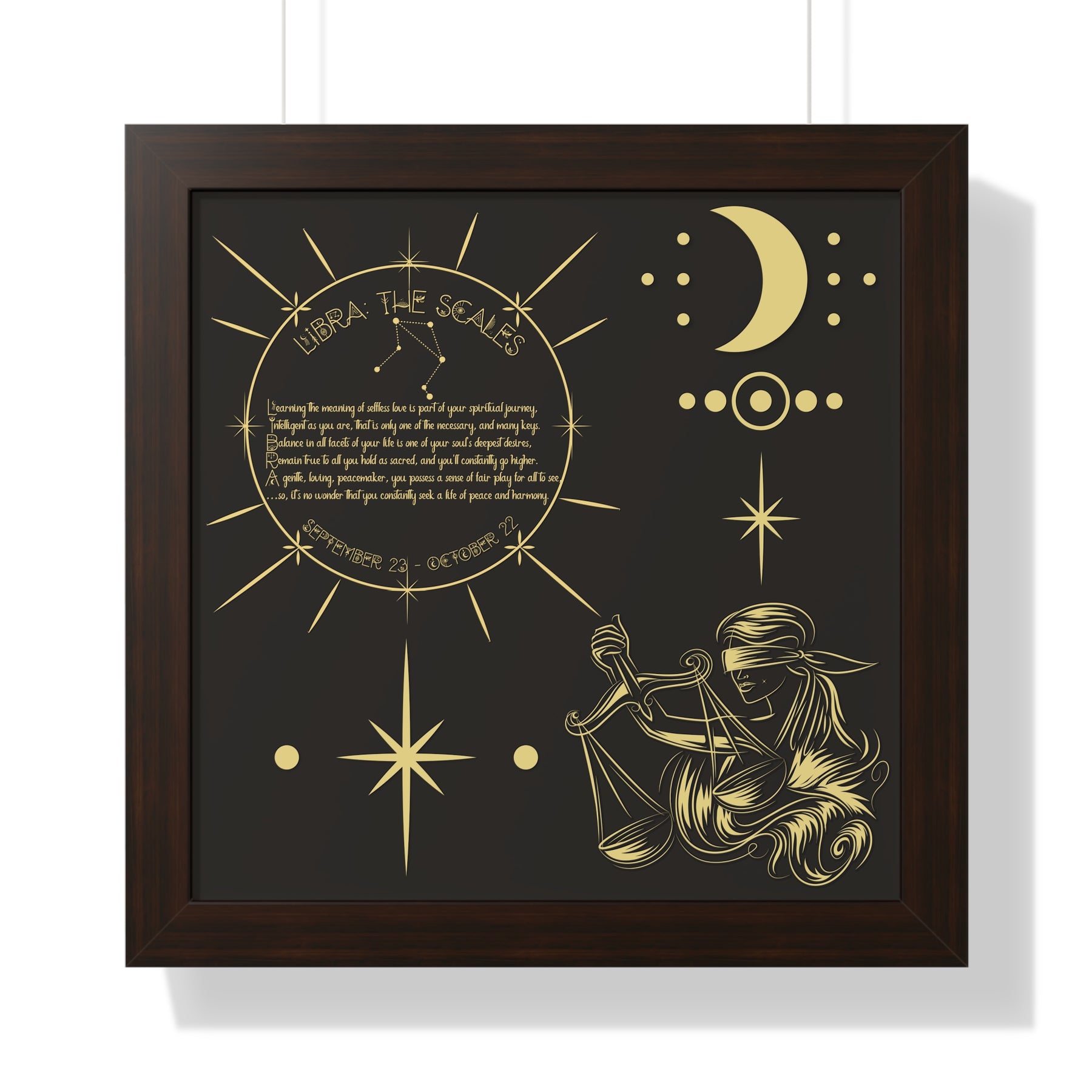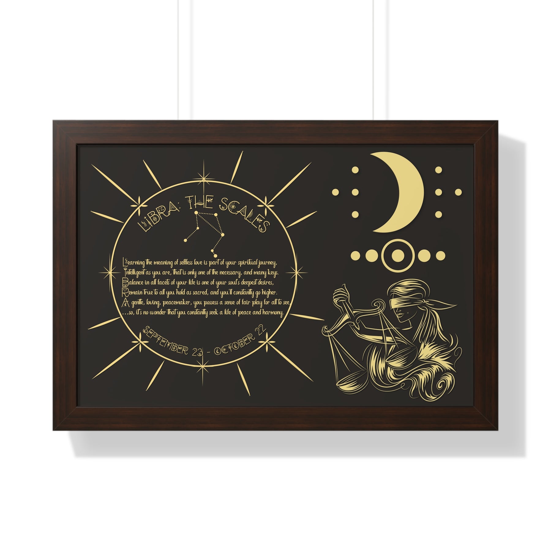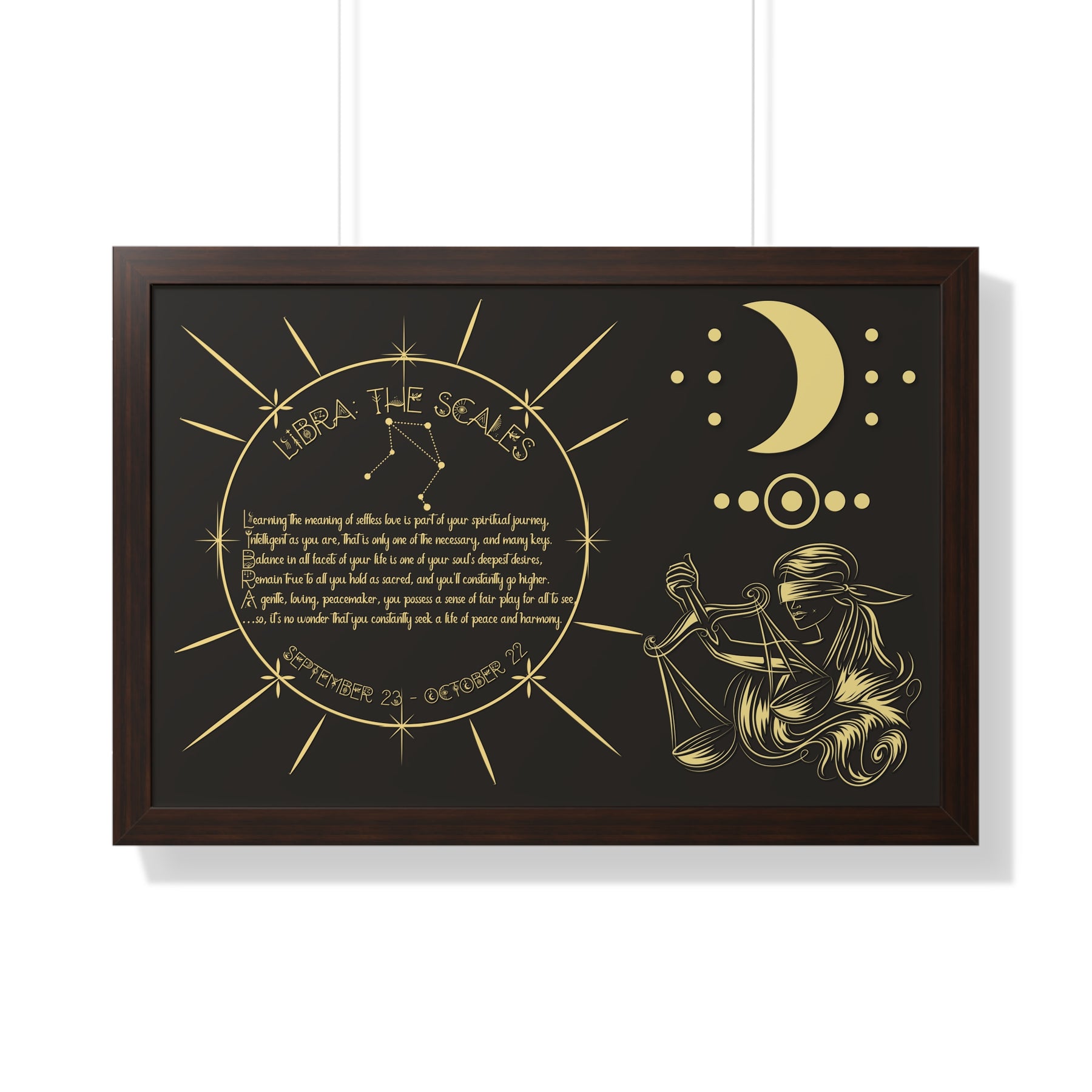 Moments in Rhyme presents Written in the Stars Framed Acrostic Poem Prints. This is the perfect addition to any astrology enthusiast's collection. This stunning and one-of-a-kind print features an acrostic poem, creatively spelling out "Libra" while embodying this zodiac sign's unique traits and ambitions. Don't pass up on this special and motivating gift for Christmas or a birthday.