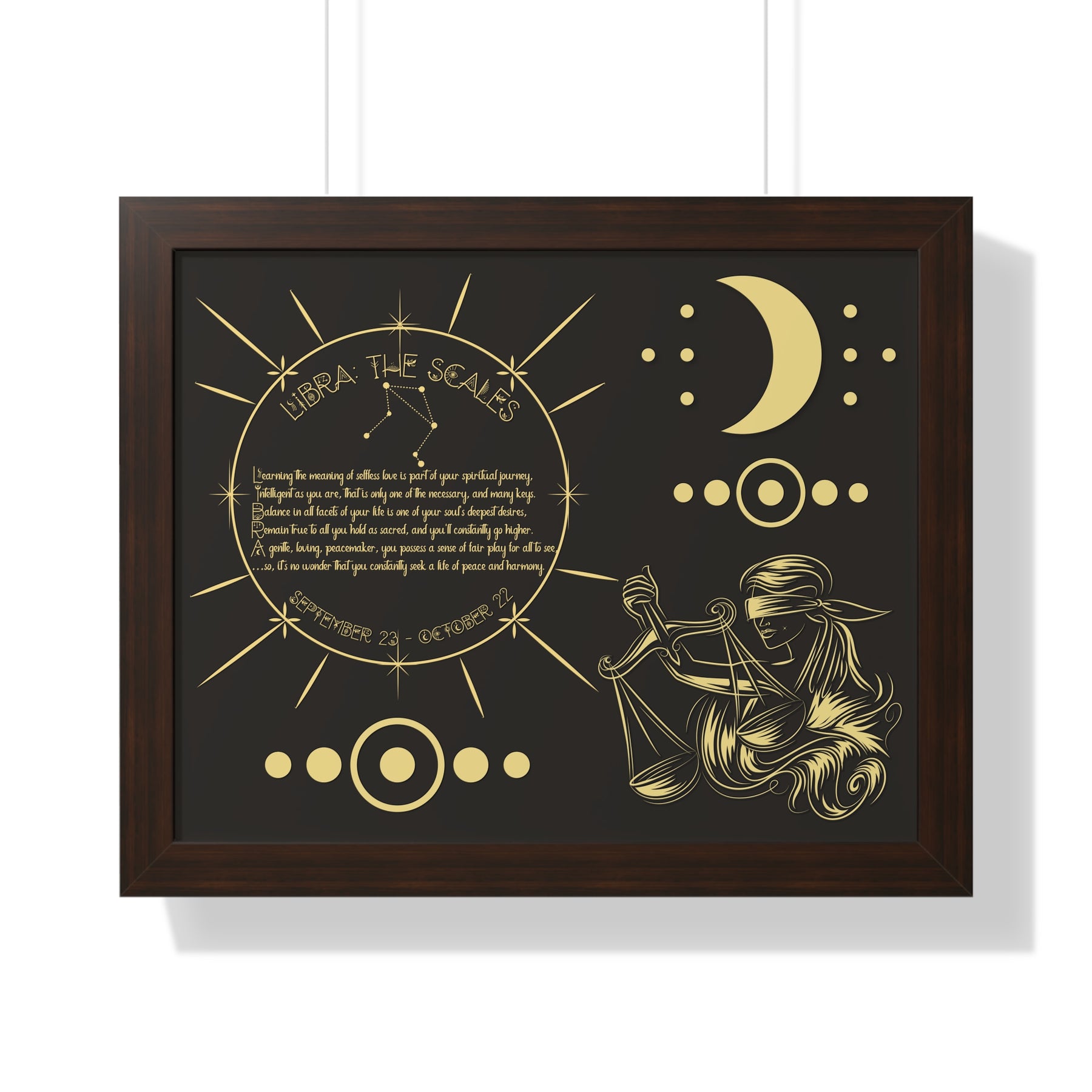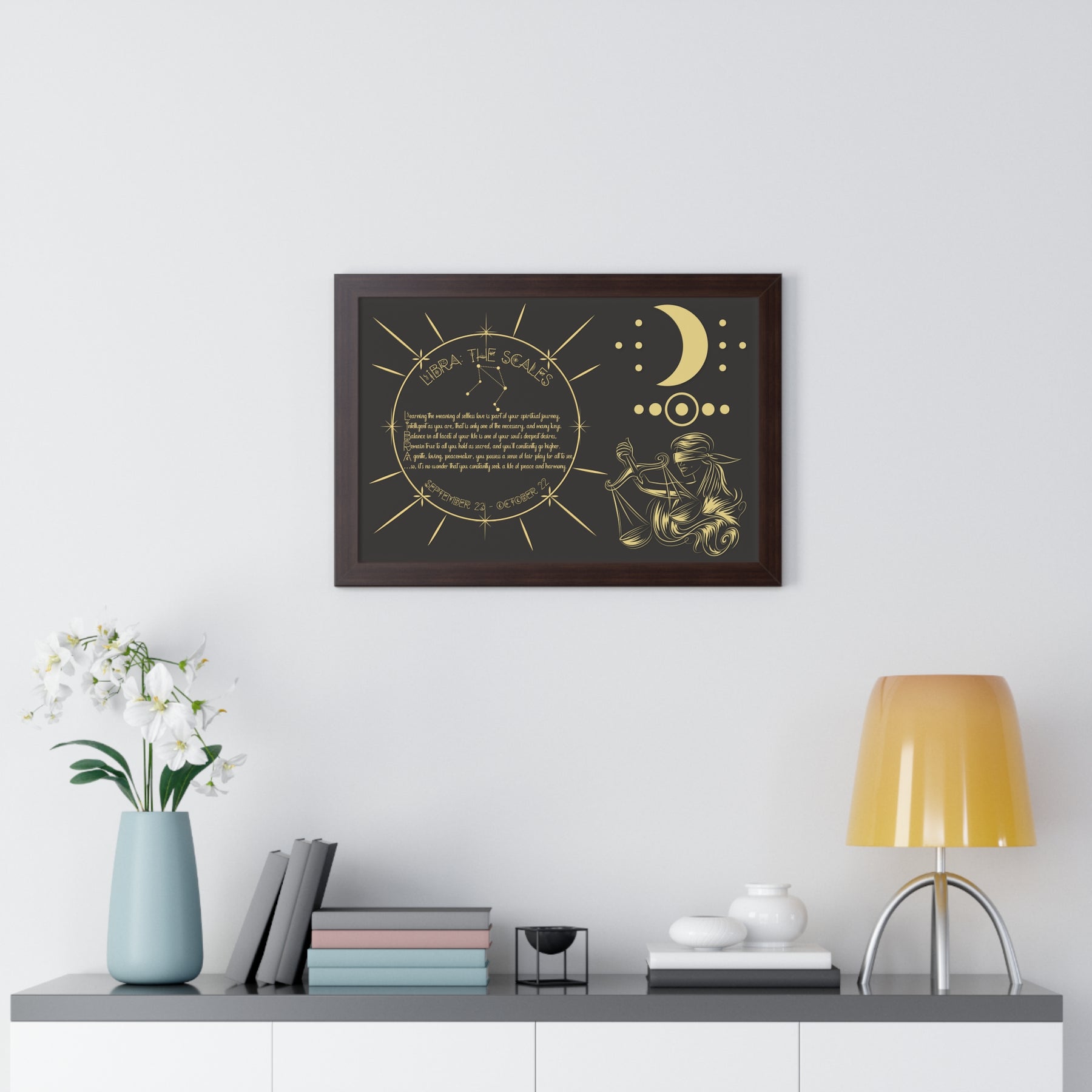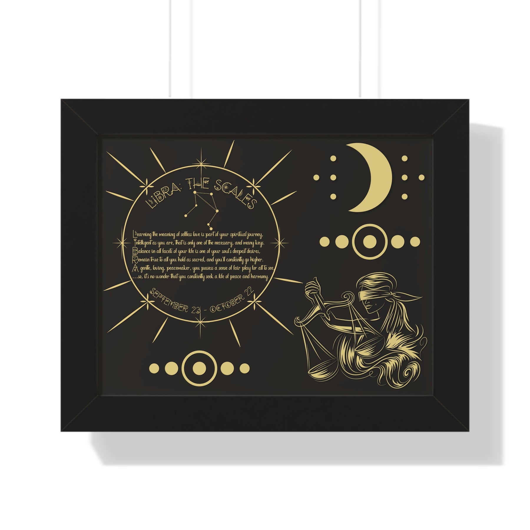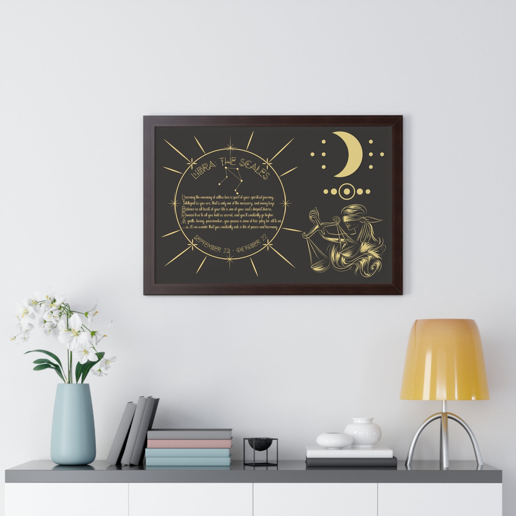 Moments in Rhyme presents Written in the Stars Framed Acrostic Poem Prints. This is the perfect addition to any astrology enthusiast's collection. This stunning and one-of-a-kind print features an acrostic poem, creatively spelling out "Libra" while embodying this zodiac sign's unique traits and ambitions. Don't pass up on this special and motivating gift for Christmas or a birthday.