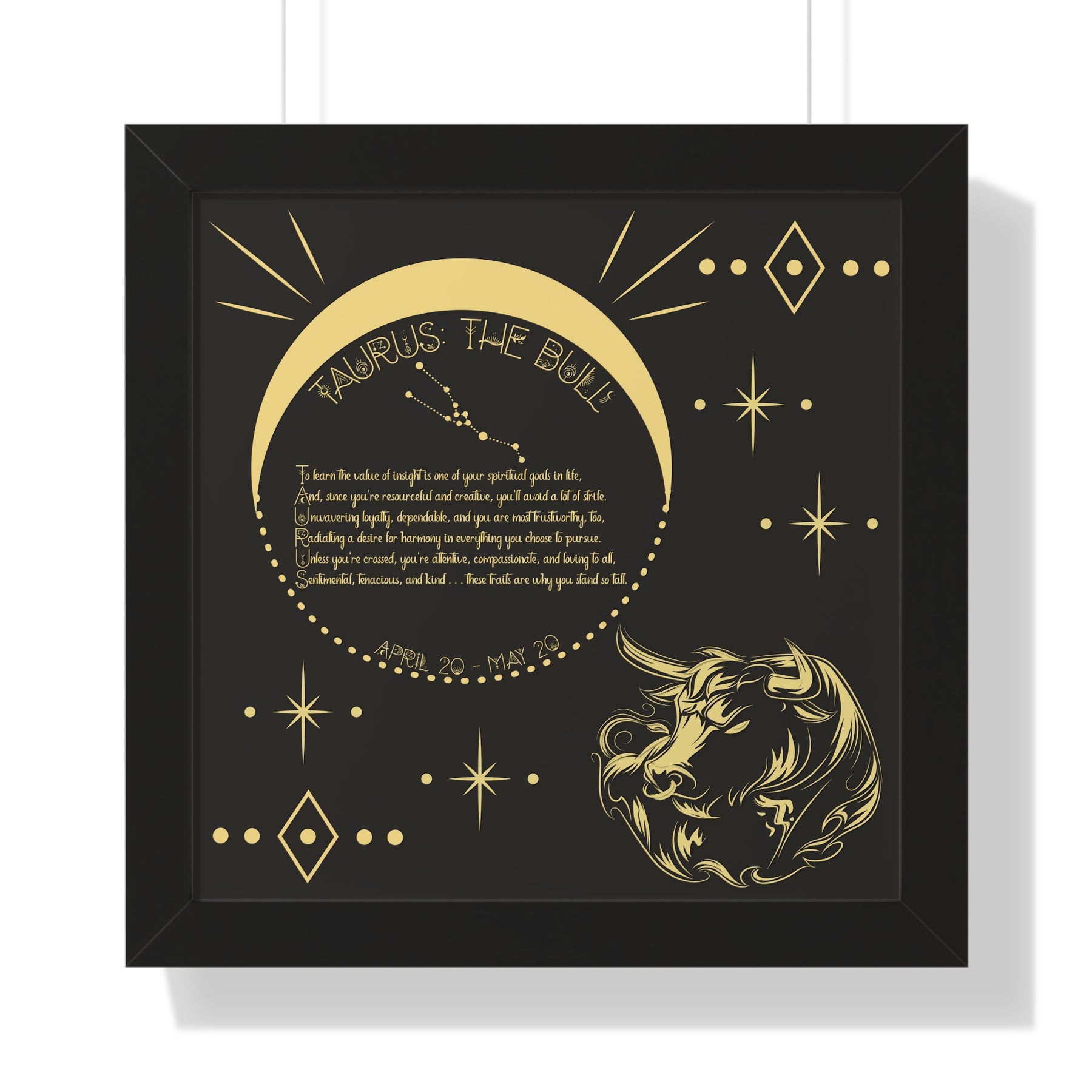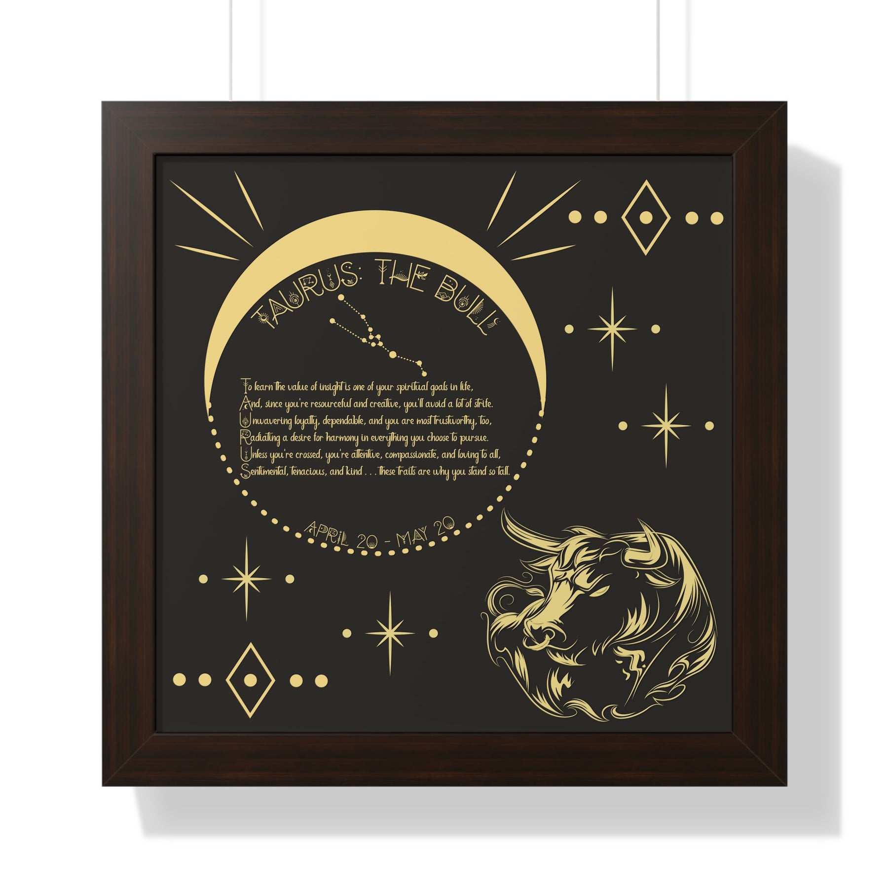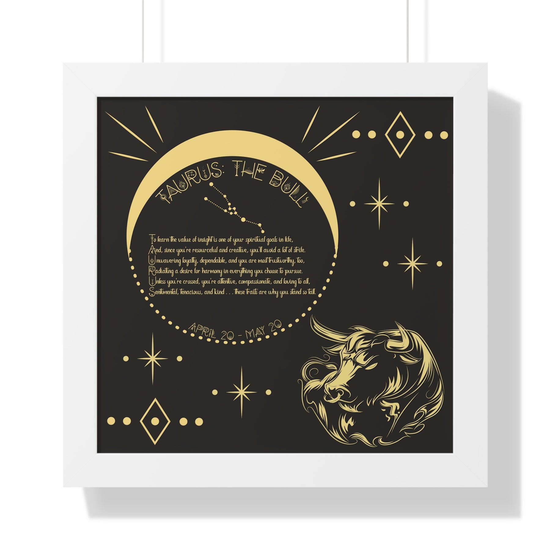 Moments in Rhyme presents Written in the Stars Framed Acrostic Poem Prints. This is the perfect addition to any astrology enthusiast's collection. This stunning and one-of-a-kind print features an acrostic poem, creatively spelling out "Taurus" while embodying this zodiac sign's unique traits and ambitions. Don't pass up on this special and motivating gift for Christmas or a birthday.