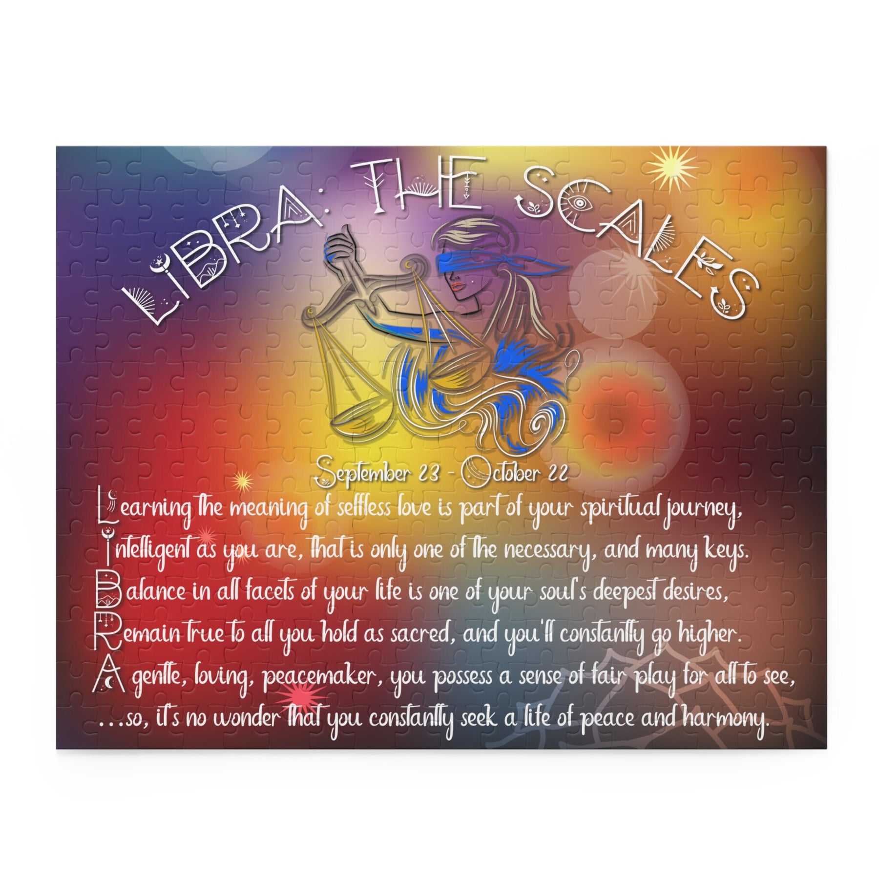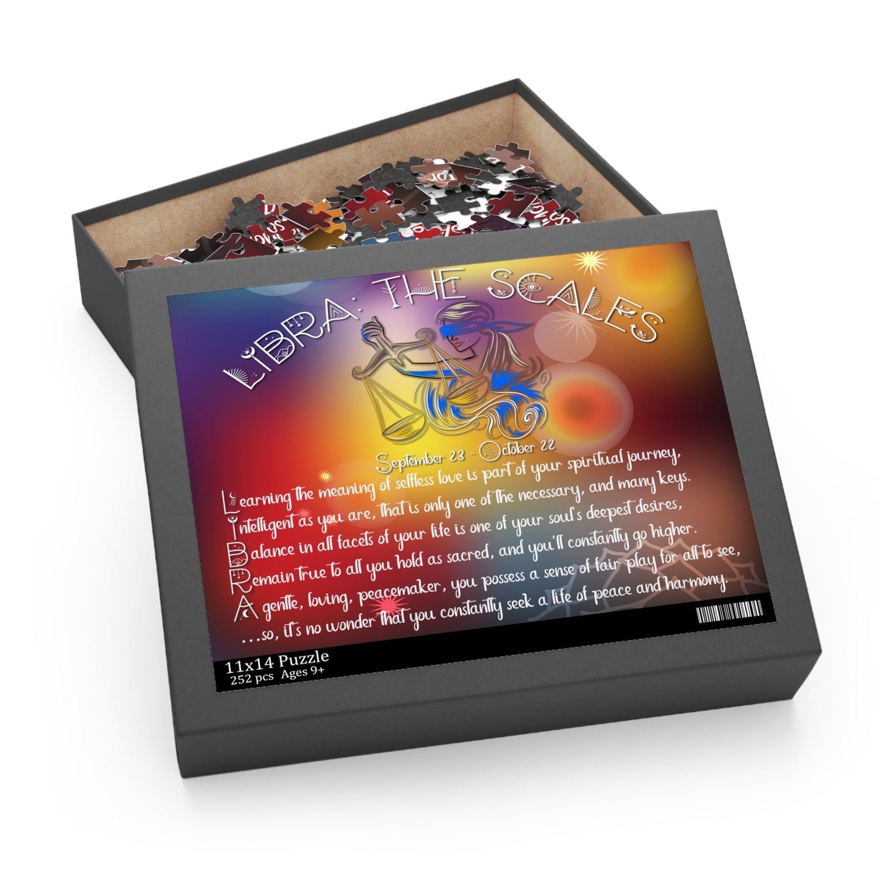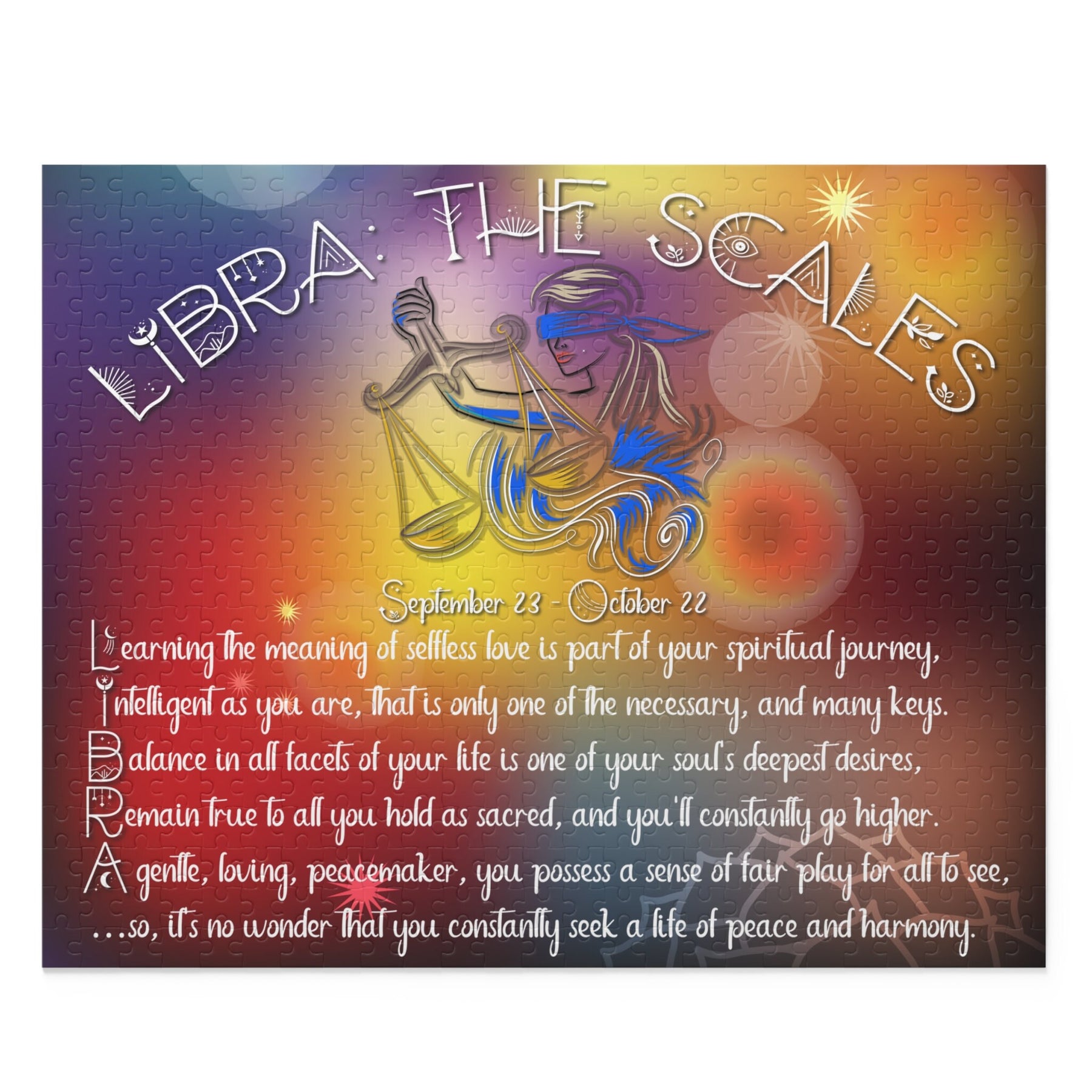 Introducing our "Written in the Stars" Acrostic "Libra" Poem Jigsaw Puzzle, meticulously crafted for astrology enthusiasts and puzzle lovers alike. Discover the unique traits and spiritual goal of your Libra star sign. Crafted with precision and care, this exciting, astrology-inspired puzzle is a bold, beautiful way to uncover your cosmic destiny. Take the challenge and explore yourself with this amazing puzzle. Piece together this enchanting puzzle, using each letter acts as a clue, unveiling a captivating story from the stars. With its vibrant imagery and intricate design, it's perfect for those seeking a mindful and immersive experience. Unleash your inner cosmic explorer and embrace the magic of your sign with this exquisite puzzle. Hurry, grab your piece of this celestial saga today!
