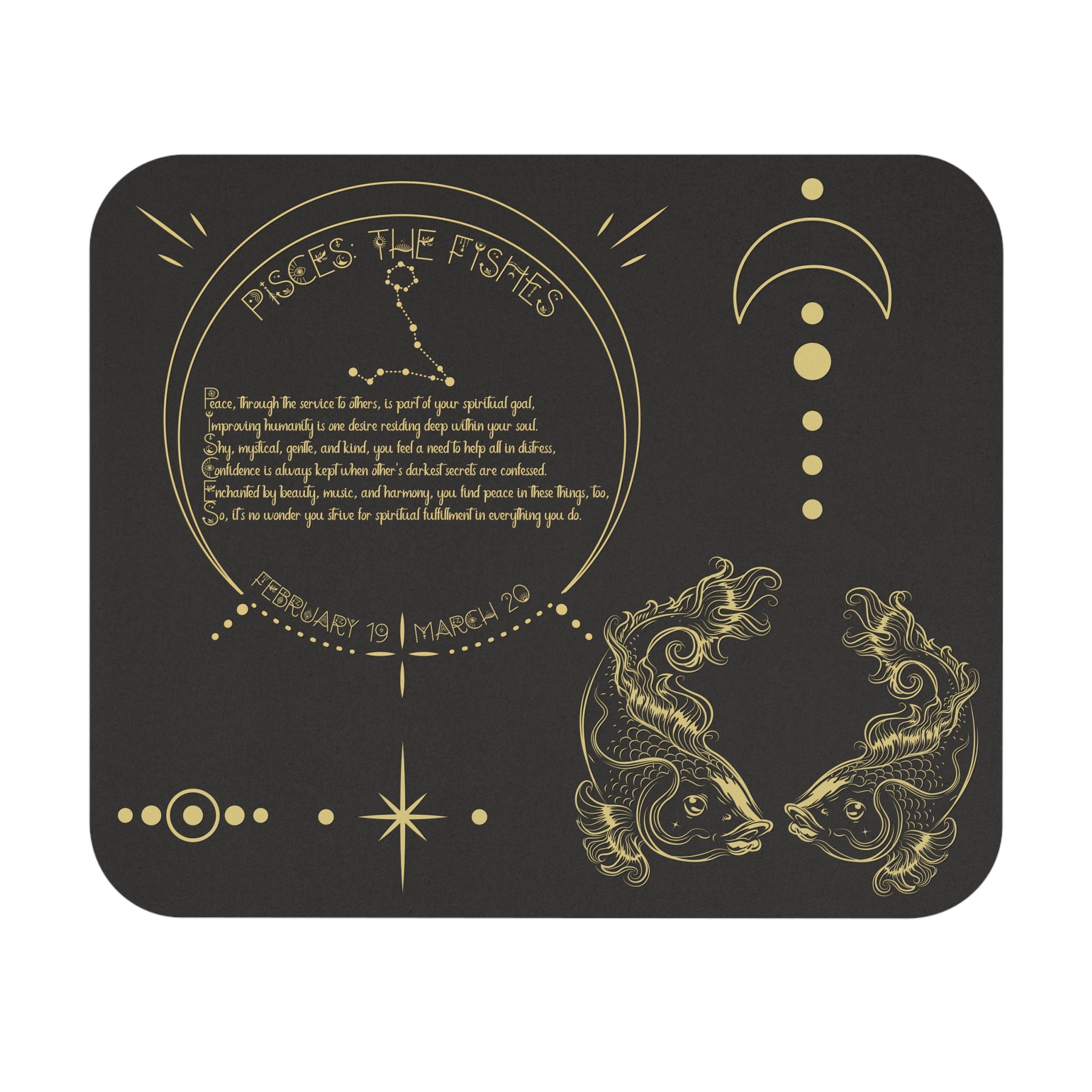 Whether it’s browsing, working, or gaming, these Written in the Stars 9x7-inch "Pisces" astrology sign mouse pads deliver a smooth experience with a custom flair. A unique horoscope sign is printed on the front side with crisp details and bright colors, adding a touch of astrology to your desk setup. . Meanwhile, the 0.11" thickness, along with the stitched edges, adds extra resilience and a professional feel to the mousepad.