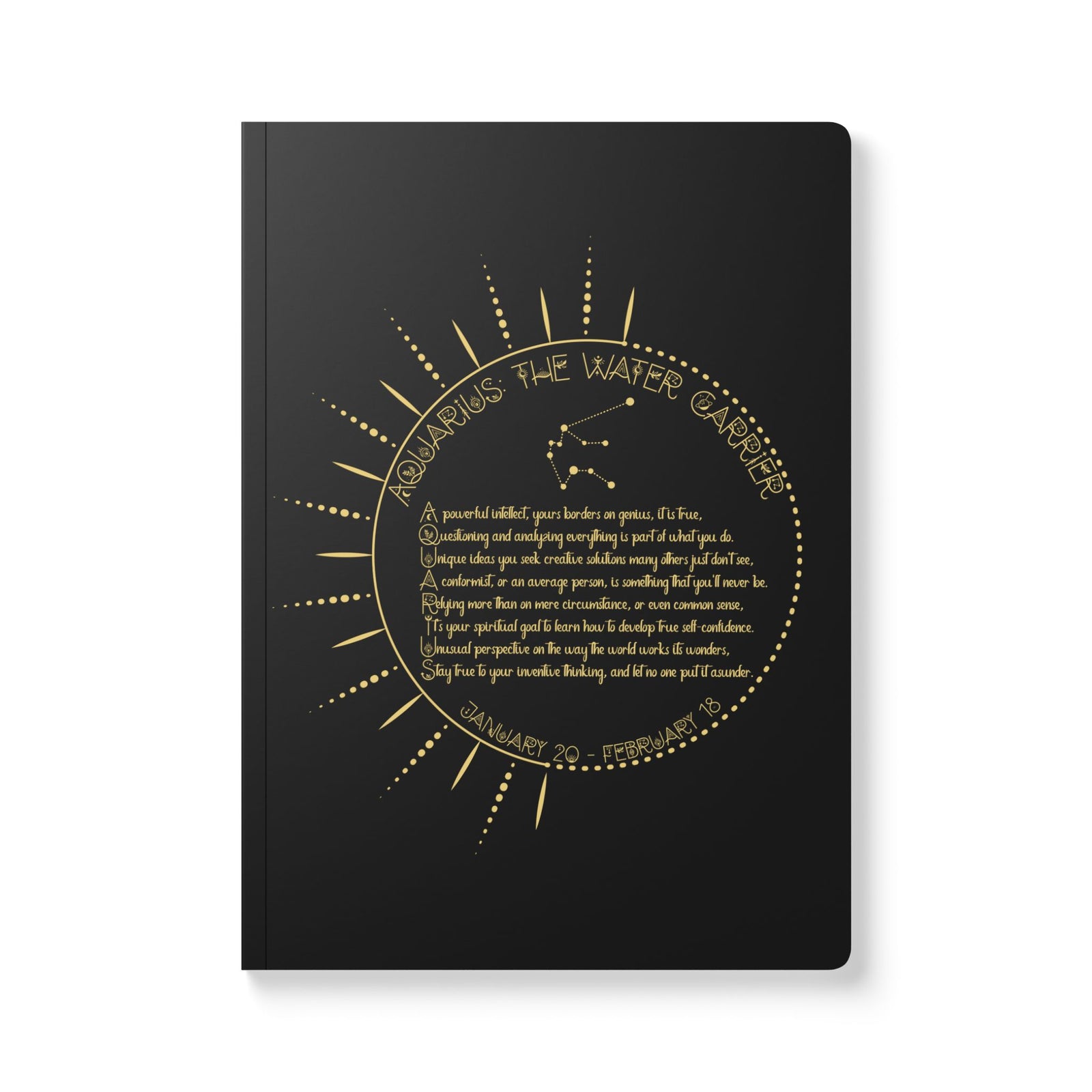 Indulge your creativity with Written in the Star’s Acrostic Poem Softcover Notebook Collection, with a poem spelling out your sign, and the traits and spiritual goals incorporated. Convenient perforated pages for easy tearing, and standard size: 5.75" x 8" for portability. These are designed for dreamers and thinkers, serving as a journal that invites you to capture your thoughts, sketches, or daily musings. The soft satin finish cover and rounded corners give it a sophisticated, approachable vibe. These are ideal for students, professionals, or anyone who enjoys jotting down ideas. This journal is great for personal use or as a thoughtful gift. It shines during special occasions such as birthdays, holidays, or any celebration where inspiration is key. Embrace your inner creator and choose a journal for your canvas!