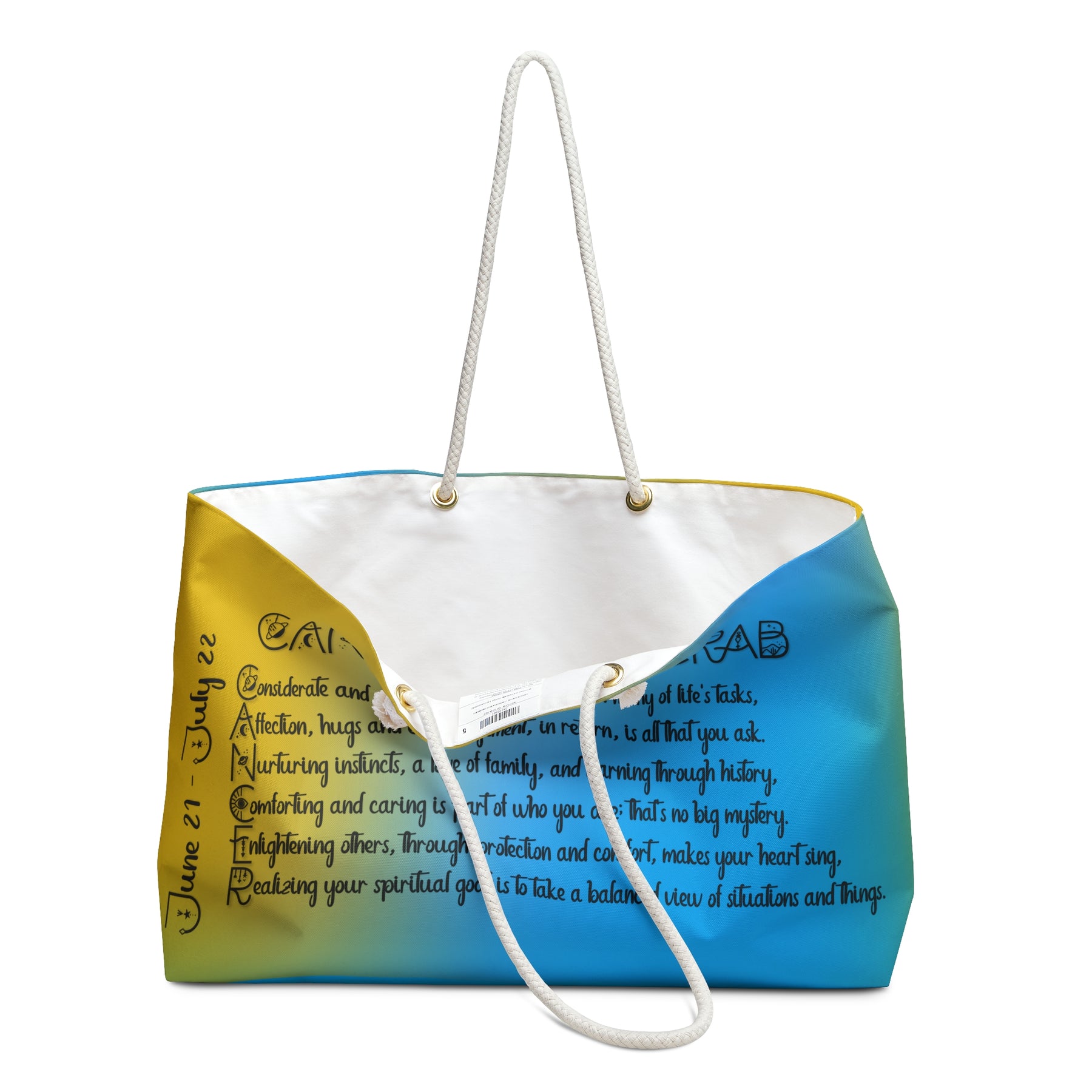 Take your essentials with you in style with our Written in the Stars Weekender Bag Collection. This roomy tote features an acrostic poem spelling out Cancer. This bag is more than just practical—it makes a statement and celebrates both words and astrology. It’s great for weekends, the gym, or daily use, especially if you love literary art and all things cosmic. It also makes thoughtful gifts for bridesmaids, birthdays, holidays, or just for yourself. With lots of space for your things, this bag is sure to become a favorite. Give someone special a gift they can use for years. One size: 24" x13"