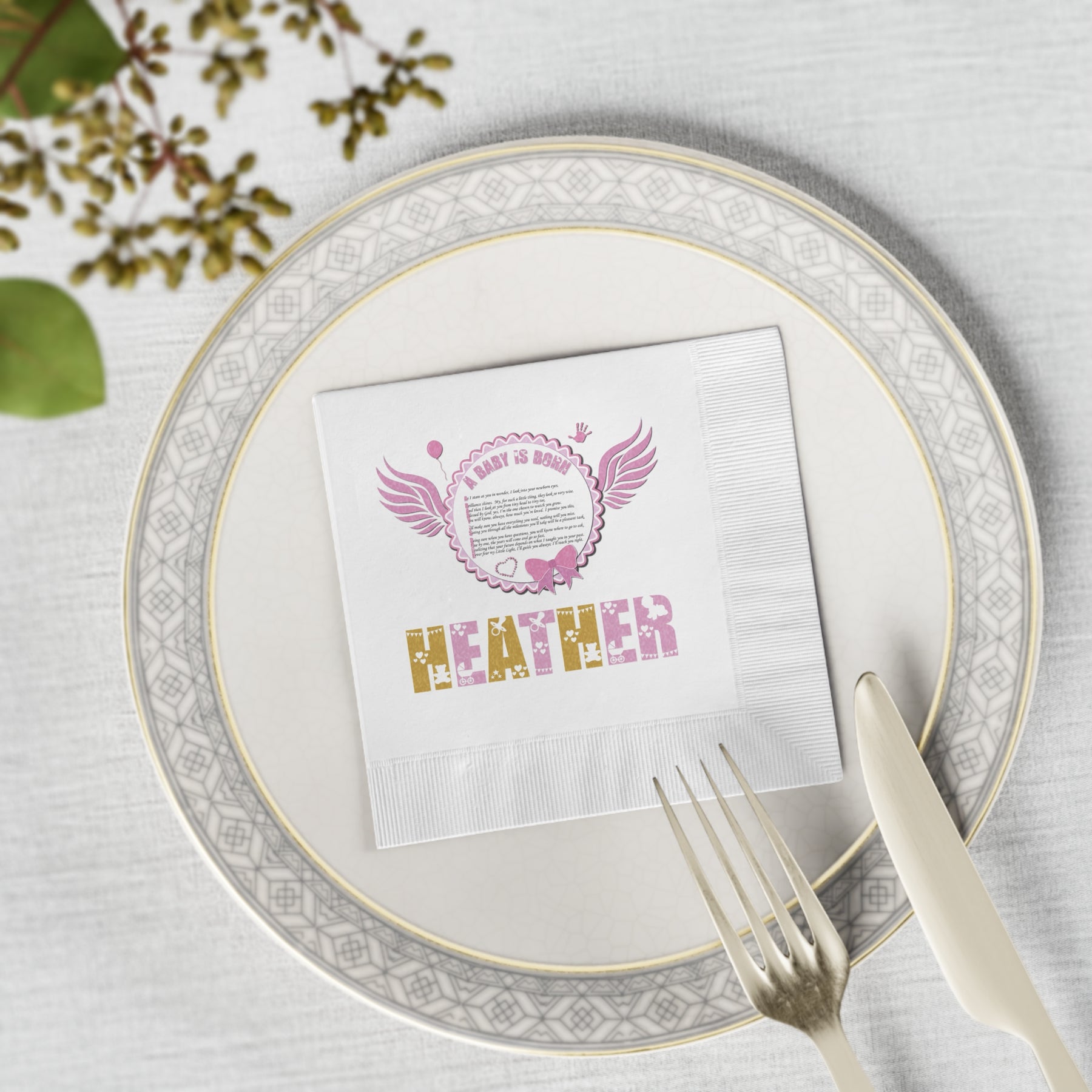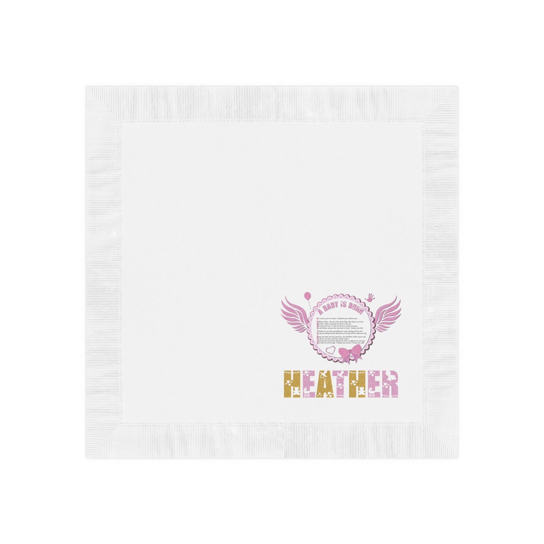 Transform the atmosphere of any baby shower with our indoor wall tapestry/backdrop. This darling design features an adorable baby body suit design with polka dots, and an acrostic poem spelling out A Baby is Born with a heartfelt message to welcome a new baby. Advanced printing techniques ensure every detail is perfect, no matter how intricate the design. With a variety of sizes to choose from, you can create the perfect look for your special occasion. Just tell us the precious baby girl's first name, and we'll take it from there.