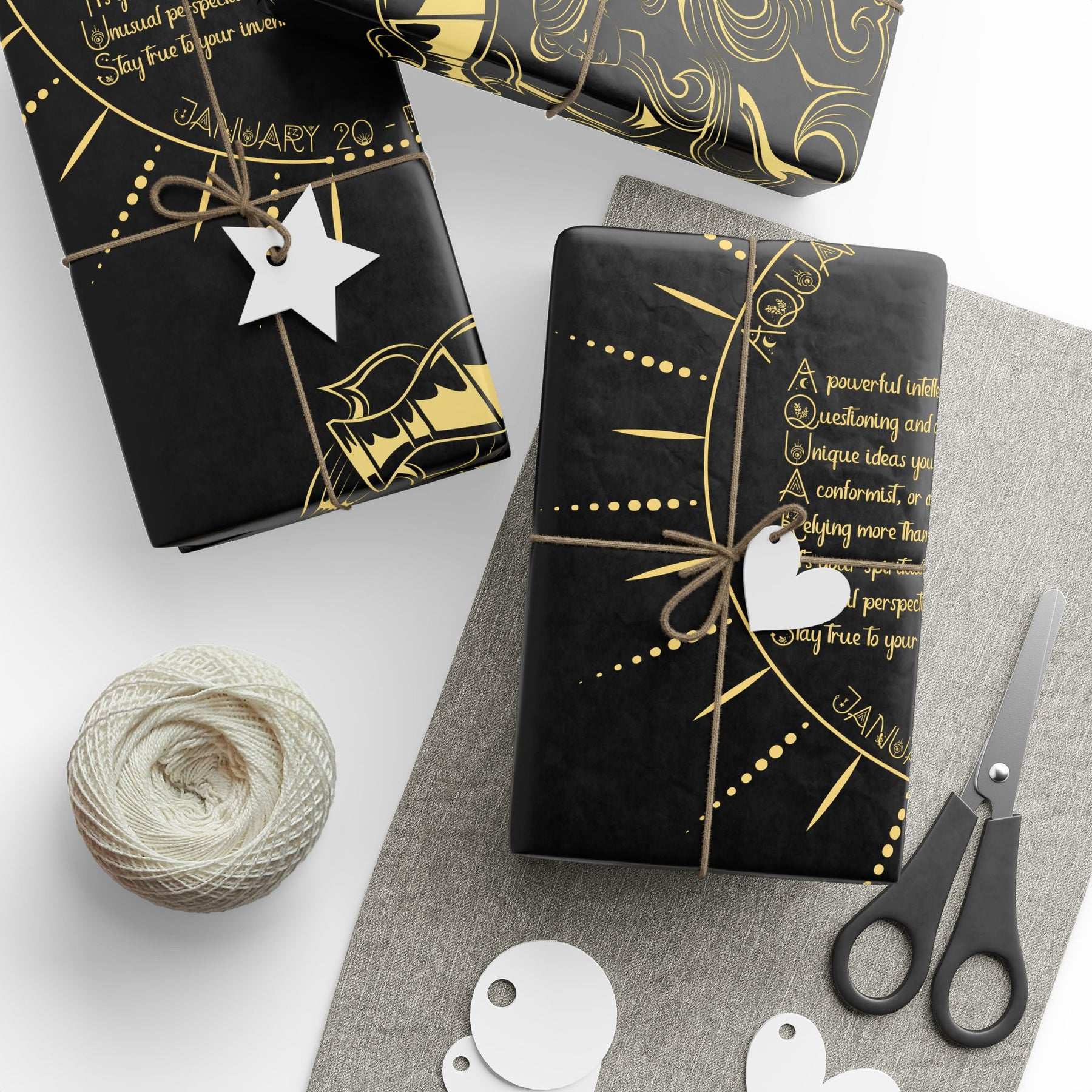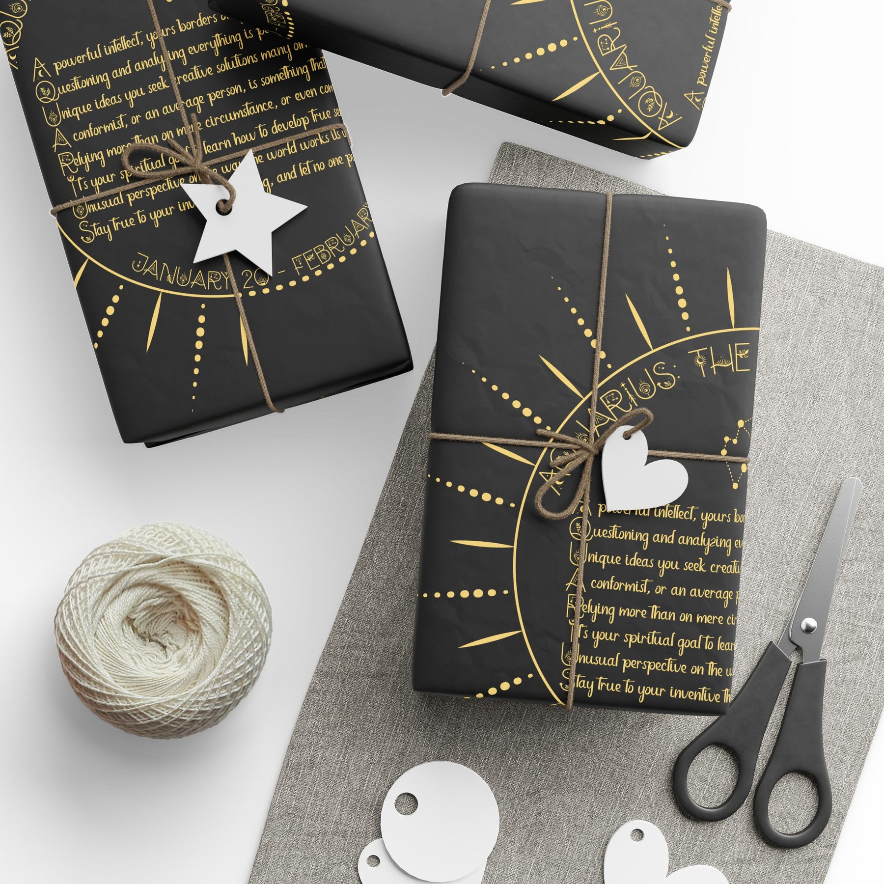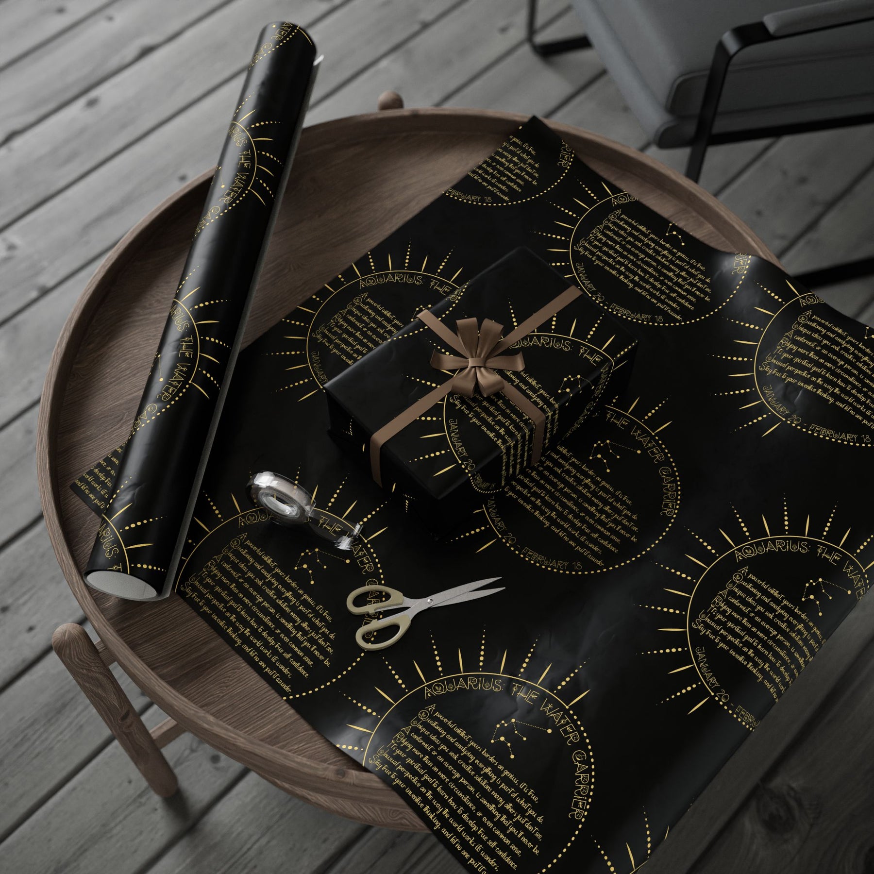 Elevate your gift-giving experience with Written in the Stars' beautiful wrapping paper. A unique acrostic poem spells out Aquarius, including the traits and spiritual goals of the sign. This product adds a touch of elegance and joy to any occasion. Perfect for birthdays or holidays, it brings a festive vibe that enhances the excitement of unwrapping. Ideal for those who appreciate aesthetic details in their celebrations, this wrapping paper is perfect for art lovers and anyone seeking to make a thoughtful impression. The glossy or matte finish adds to the allure, making each gift stand out. Whether you're wrapping a small token or a large present, this wrapping paper will surely make a lasting impression. Available in three versatile sizes: 30" × 36", 30" × 72", and 30" × 180". Includes white spaces at the top and bottom edges for a clean finish.