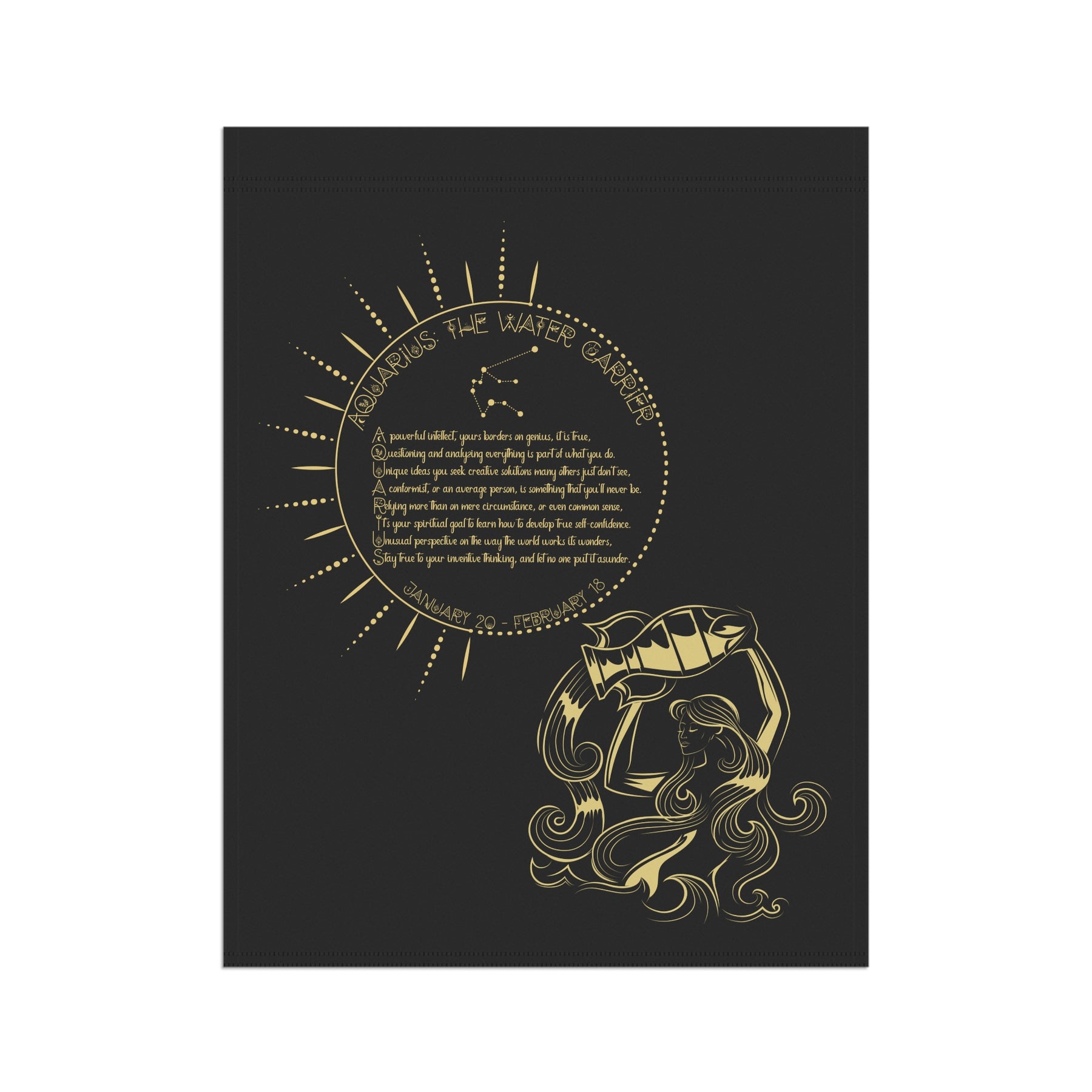 Help any astrology lover transform their yard or garden with the simple addition of the Written in the Stars banners. This garden banner spells out Aquarius with the traits and spiritual goal incorporated. You will enjoy reading this sentimental poem year after year! The perfect gift for any friend who loves unique decor or outdoor spaces. Made with lightweight yet highly durable poly poplin-canvas fabric, these banners come in two sizes (12'' × 18'' and 24.5'' × 32'') and feature a top sleeve for easy placement on poles. Crisp detail and color appear on both sides of the flag. 100% poly poplin-canvas fabric. Features a sleeve at the top. Pole, hooks, or fasteners are not included.