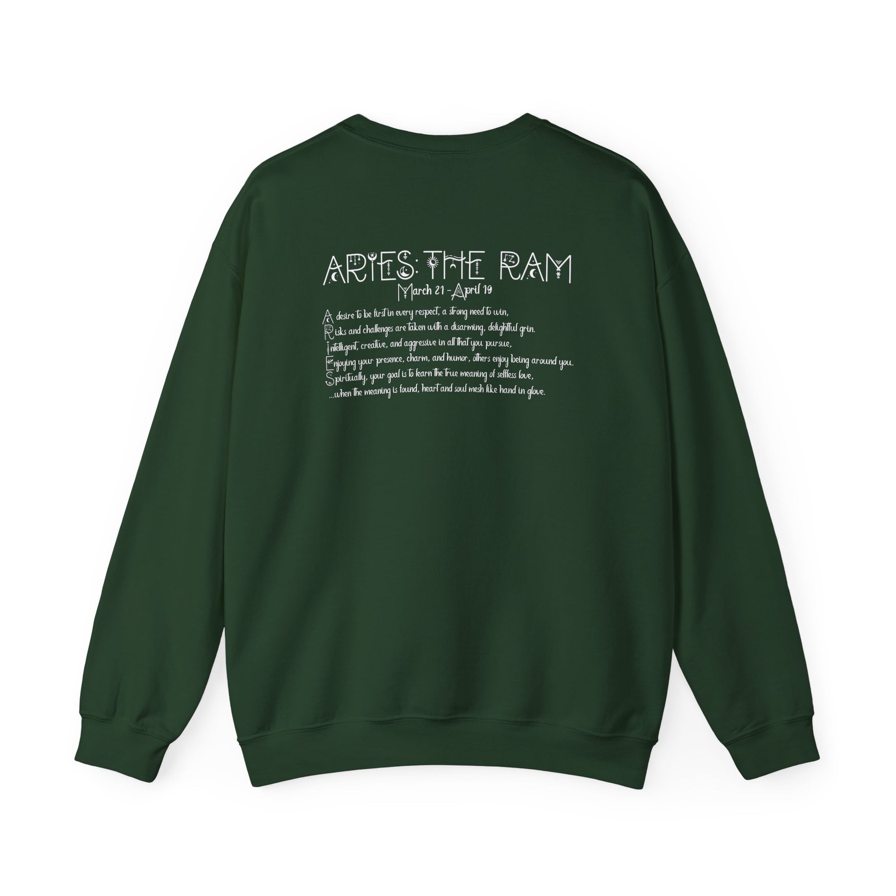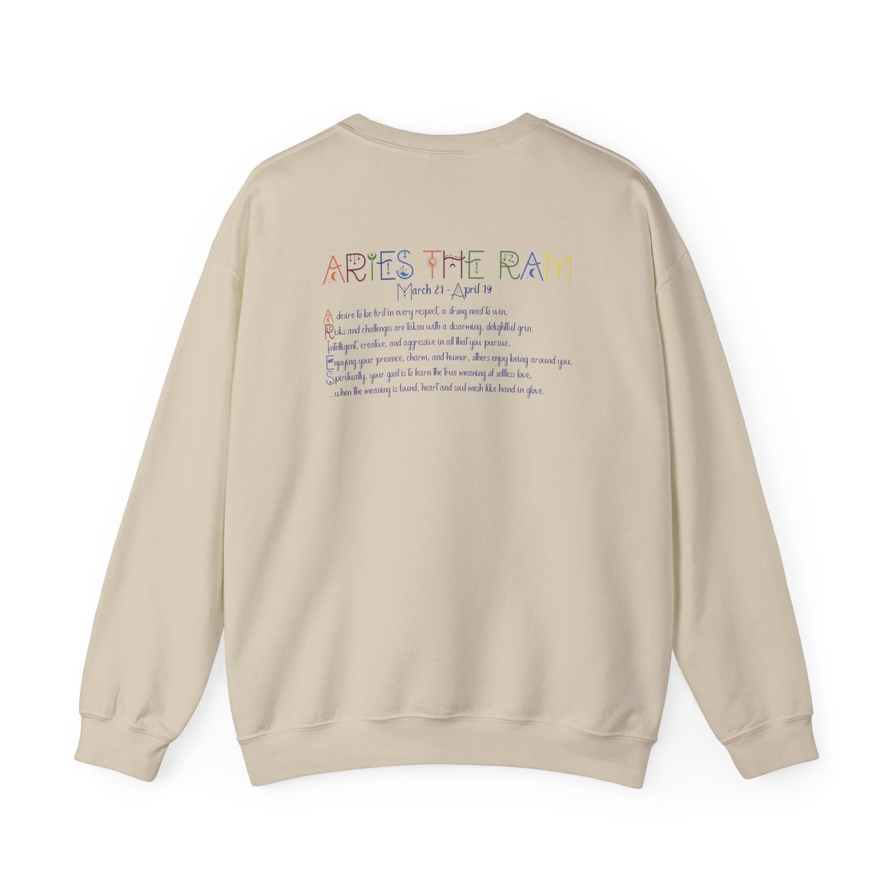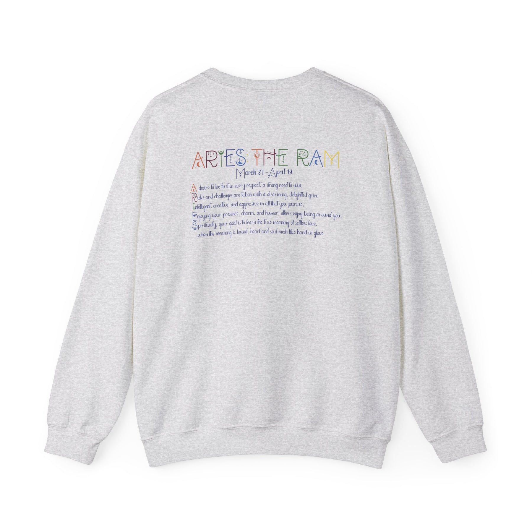 Our Written in the Stars acrostic poem sweatshirt spells out Aries and is a fun way for astrology fans to display their sign proudly. Your horoscope sign appears on the front, while the back features an acrostic poem inspired by Aries' traits and spiritual goals. This sweatshirt is comfortable, durable, and adds a playful astrological touch to your day. It's an excellent staple for your wardrobe and sure to spark conversations with fellow astrology lovers. Plus, the Celestial font really stands out!