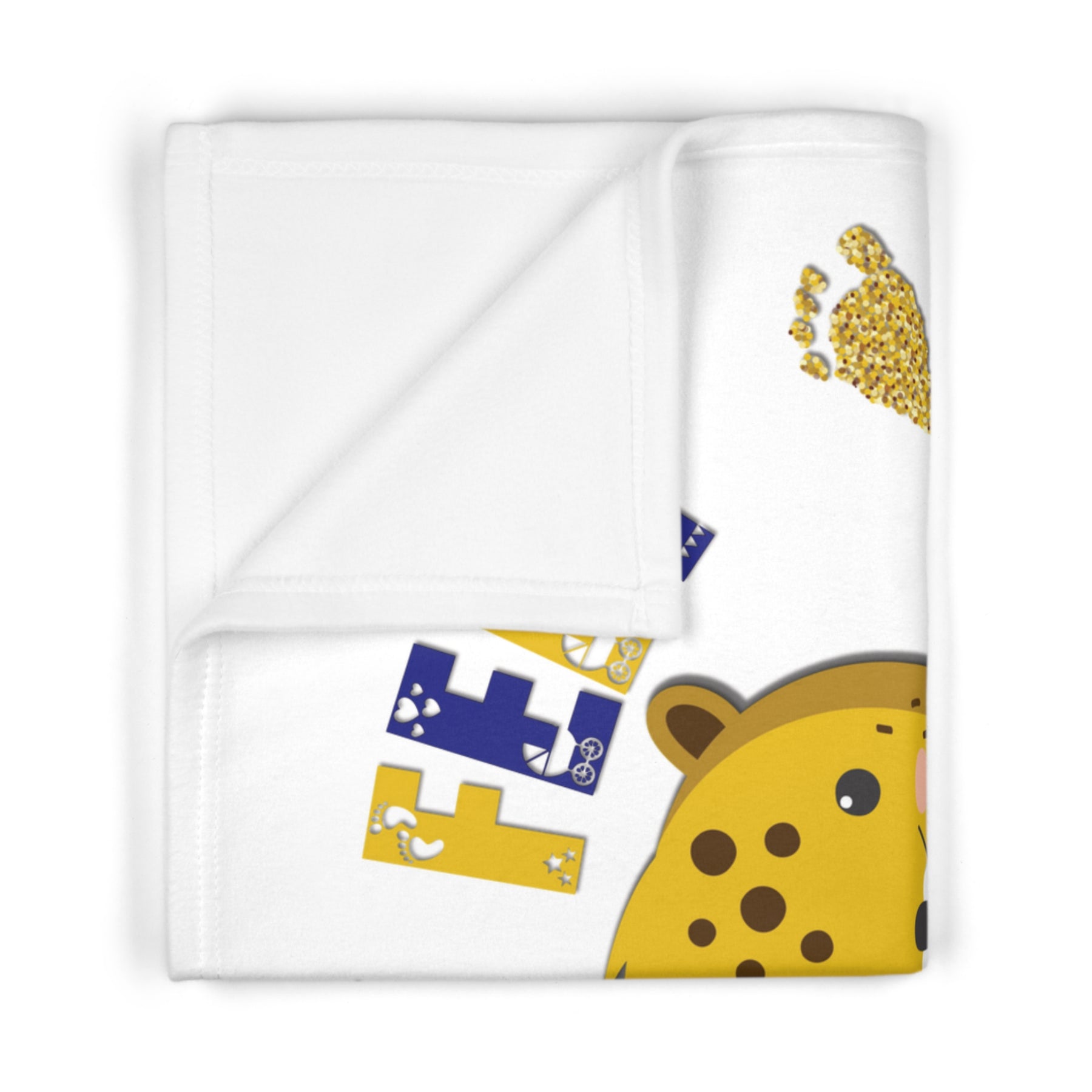 Celebrate the arrival of a new baby boy with Baby Steps adorable Acrostic Poem Blanket. Perfect for a baby shower or the new mom, it features a whimsical baby leopard and baby item font with the words Baby Feet spelled out in a precious acrostic poem. Look how cute the footprints are! Crafted from luxurious fabric, this blanket is sure to become a cherished keepsake.