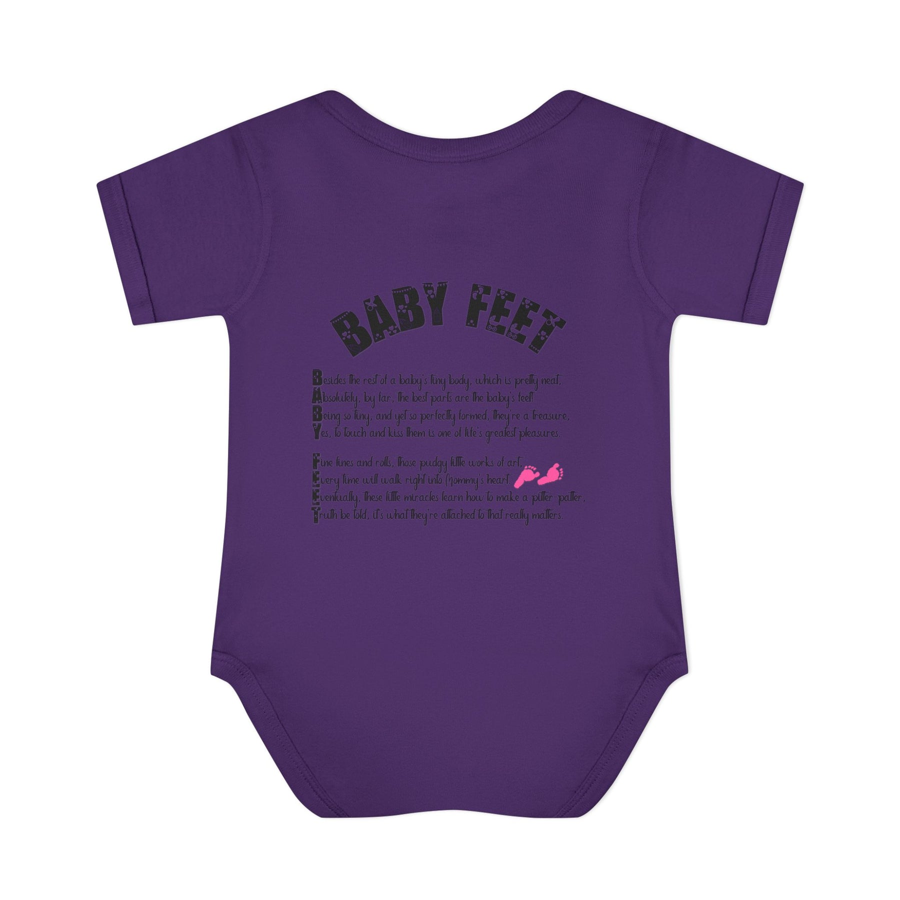 This bodysuit is absolutely sweet, featuring an acrostic poem that spells out "Baby Feet" with precious pink baby footprints on the front. It's the perfect lifetime keepsake. With lap shoulders, these one-piece bodysuits are ideal for wriggly little ones. A great present for baby showers!