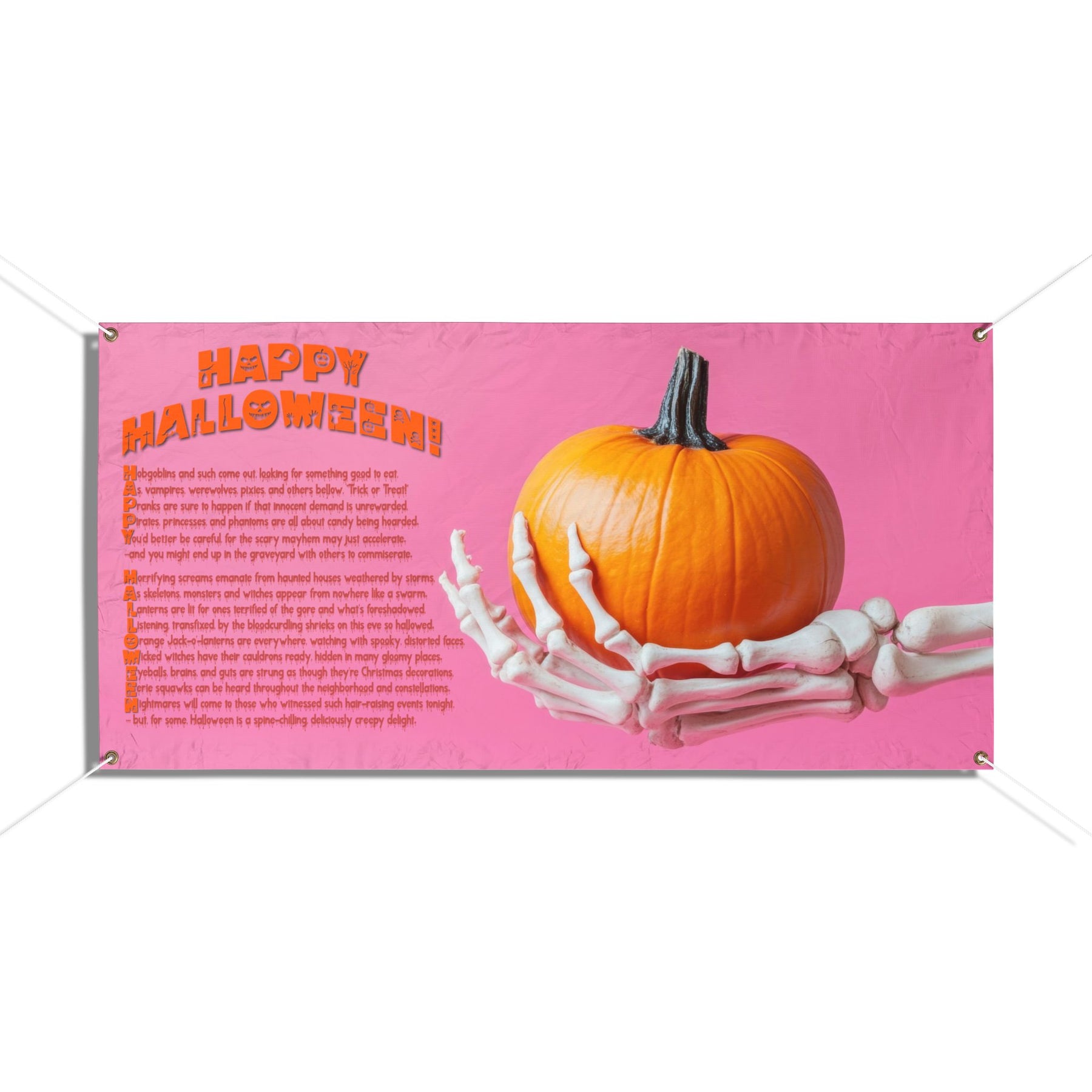 Celebrate special moments with our It’s Just a Phase Vinyl Banner, featuring an acrostic poem that spells out Happy Halloween with spooky, fun prose. This banner is perfect for indoor and outdoor events, adding a festive touch to family gatherings and parties. If you want to bring more personality to your Halloween party, this banner is a great pick. Made from strong material, it stands up to any weather. It has heat-welded hems and grommets that make hanging simple and keep the banner looking great. You can use it inside or outside. Choose from three sizes: 24" x 48", 24" x 72", or 36" x 72". To clean, wipe with a soft, damp cloth. Hanging strings are not included.