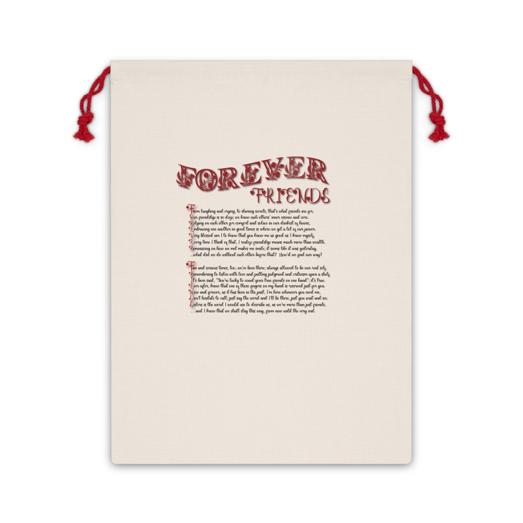Your BFFie is going to love our It’s Just a Phrase stylish gift bags, featuring an acrostic poem that spells out Forever Friends. The sentimental prose serves as a sweet reminder of what true friendship truly is. This gift bag adds a unique touch to any celebration. The vintage look brings nostalgia while keeping presents safe. These are eye-catchers and conversation starters. The spacious interior allows for multiple gifts, making it a versatile choice. With a secure drawstring closure, it is both functional and chic. Designed for those who appreciate creativity and thoughtfulness in gift-giving. Made from 95% polyester and 5% cotton. Spot clean only. Do not bleach.