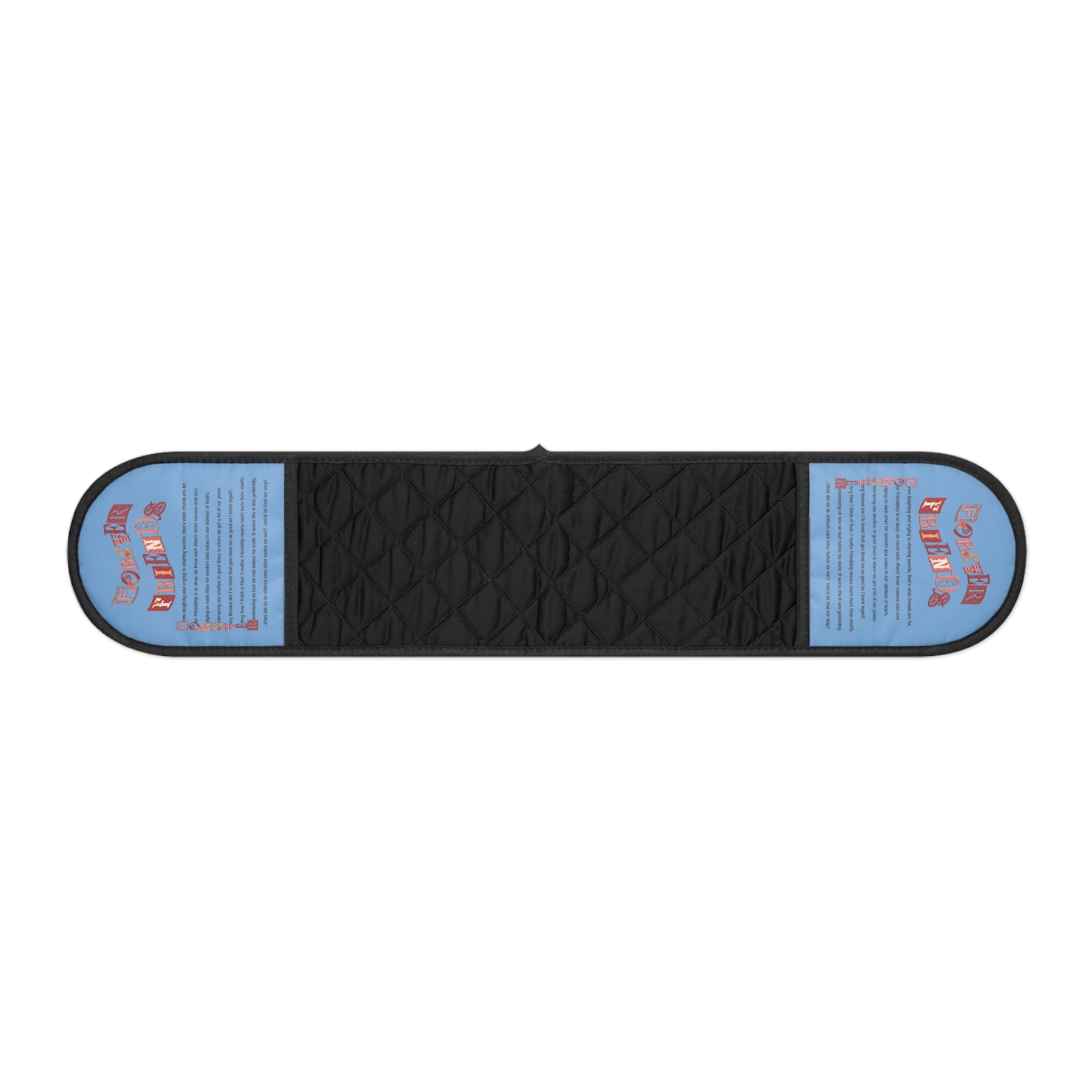 Moments in Rhyme introduces our It’s Just a Phrase Winter Holidays Oven Mitts Collection with an acrostic poem that spells out Forever Friends and lovely, sentimental prose. Terrific for gift-giving during any winter holiday, and they’re sure to be used year after year. These are made with strong, durable synthetic polyester fabric. They retain their shape and dry quickly. The cotton underside is made from specially spun fibers, resulting in a strong and smooth fabric. The product is heat-insulated to protect hands from hot objects. They come in one size and are slip-resistant, featuring a hanging loop for added convenience.