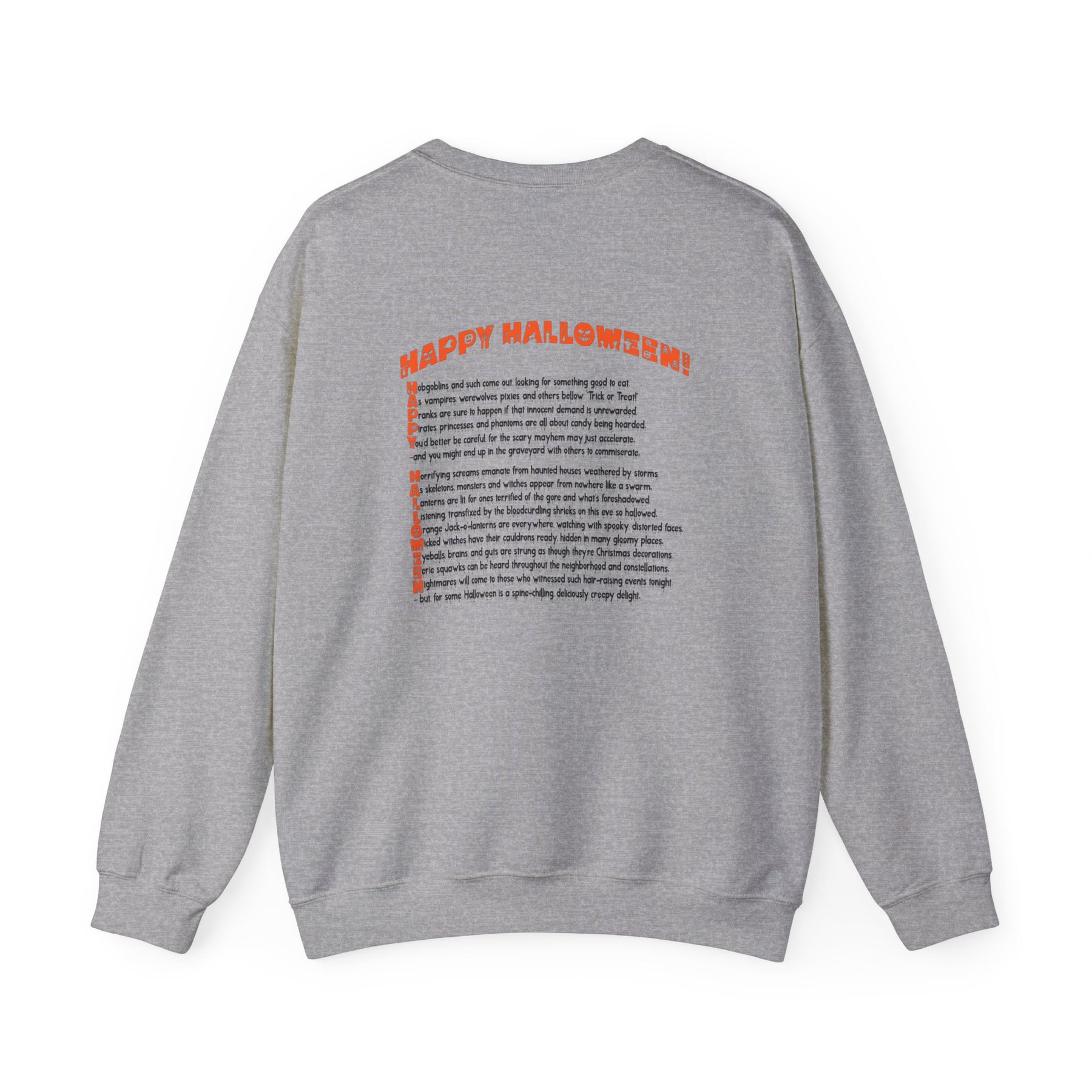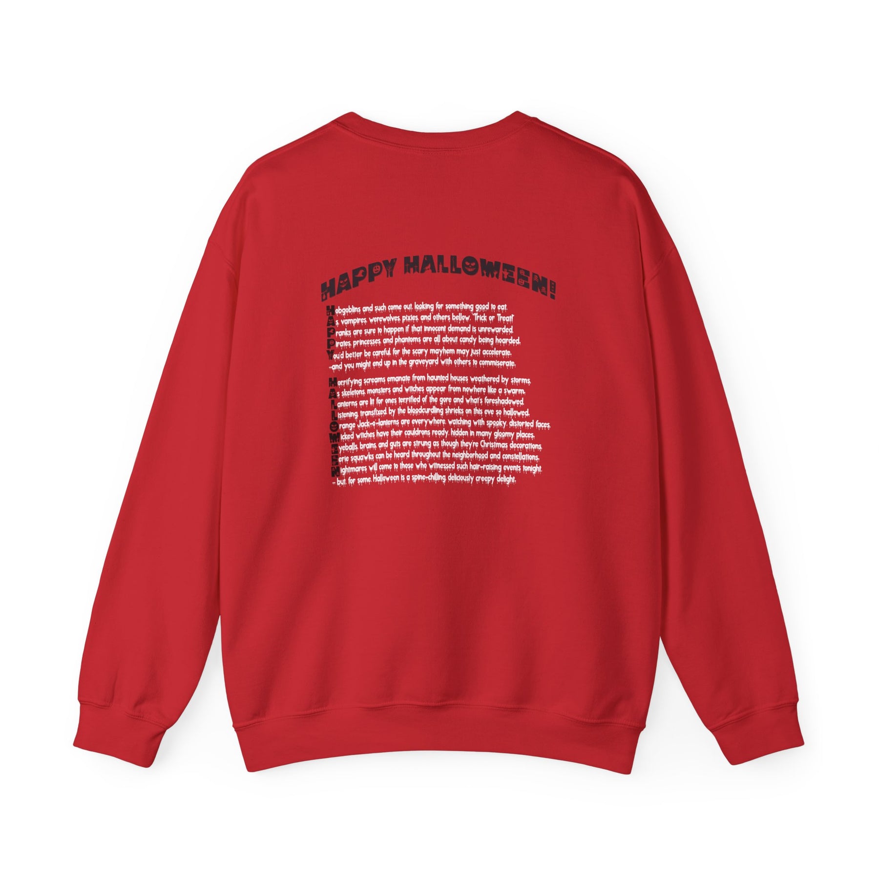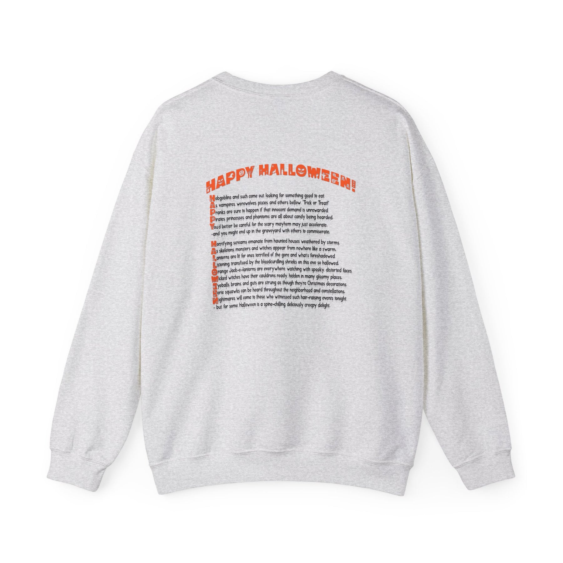 This It’s Just a Phrase acrostic poem sweatshirt features a creepy pumpkin on the front, with an acrostic poem that spells out Happy Halloween on the back. The unique font and poem will undoubtedly spark a conversation! This sweatshirt is comfortable, durable, and adds a playful touch to the Halloween season. Plus, the amazing font really stands out!