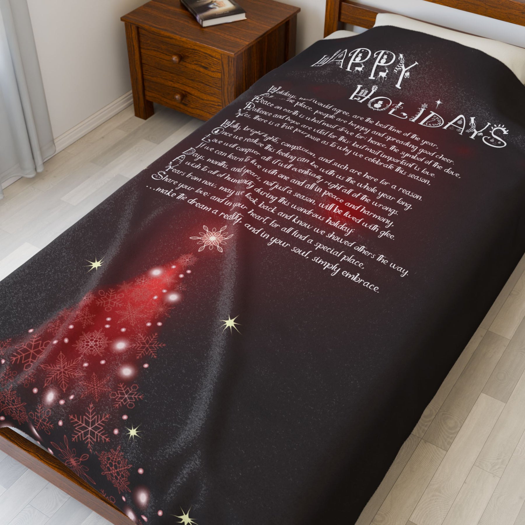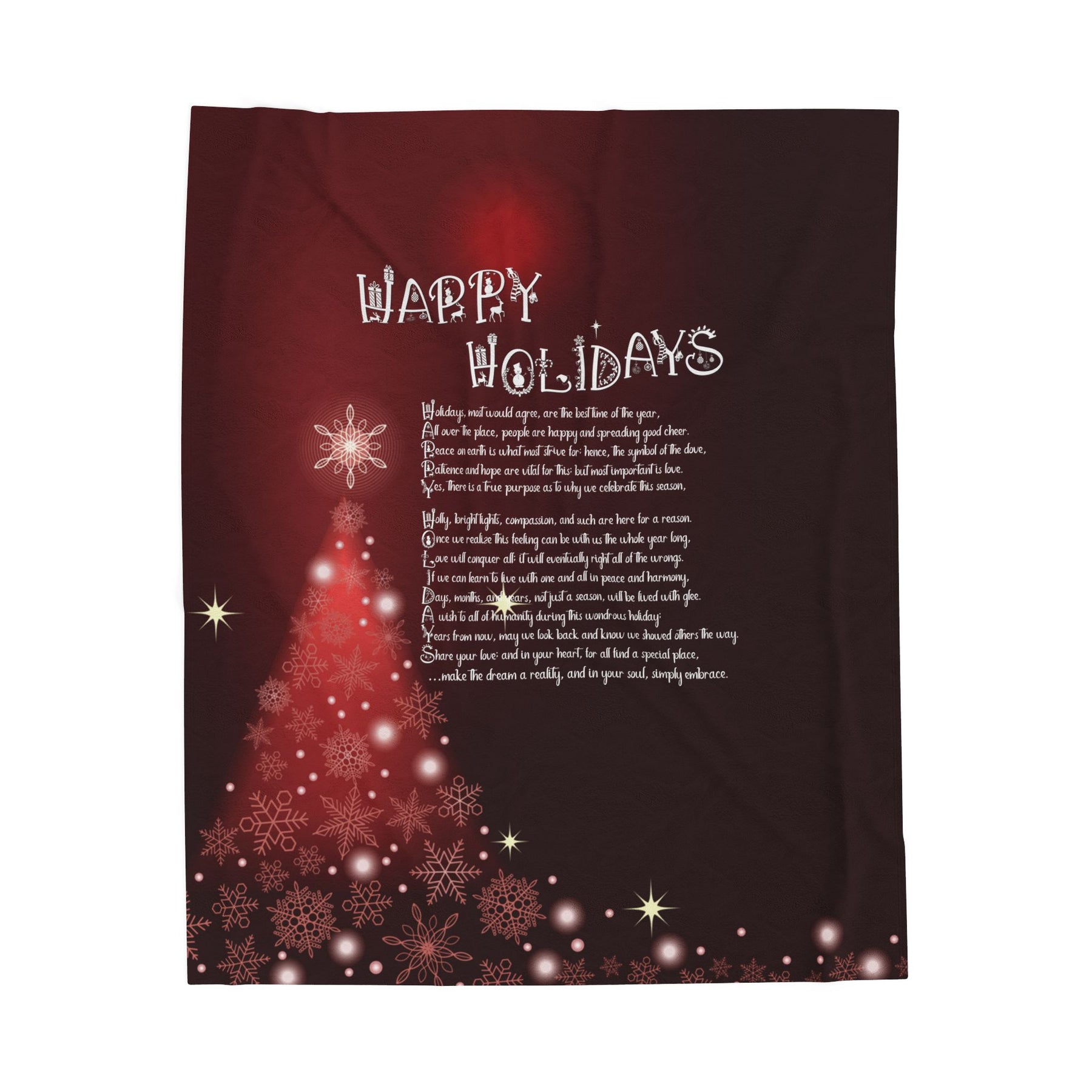 Experience ultimate comfort with our It’s Just a Phrase Winter Holidays Velveteen Plush Blanket, featuring an acrostic poem that spells out Happy Holidays. This is a great gift, but more than that, it's a symbol of love and appreciation. Made with the highest quality materials, this blanket is delicate, soft, and vibrant. Whether she's snuggled up indoors or enjoying outdoor events, this blanket will keep anyone warm and cozy. It's the perfect gift to show how much someone means to you. Don't wait, give a loved one the gift of comfort for years to come! Made from 83% Polyester and 17% Spandex, a medium- to heavyweight fabric that feels exceptionally soft to the touch. Available in three sizes.
