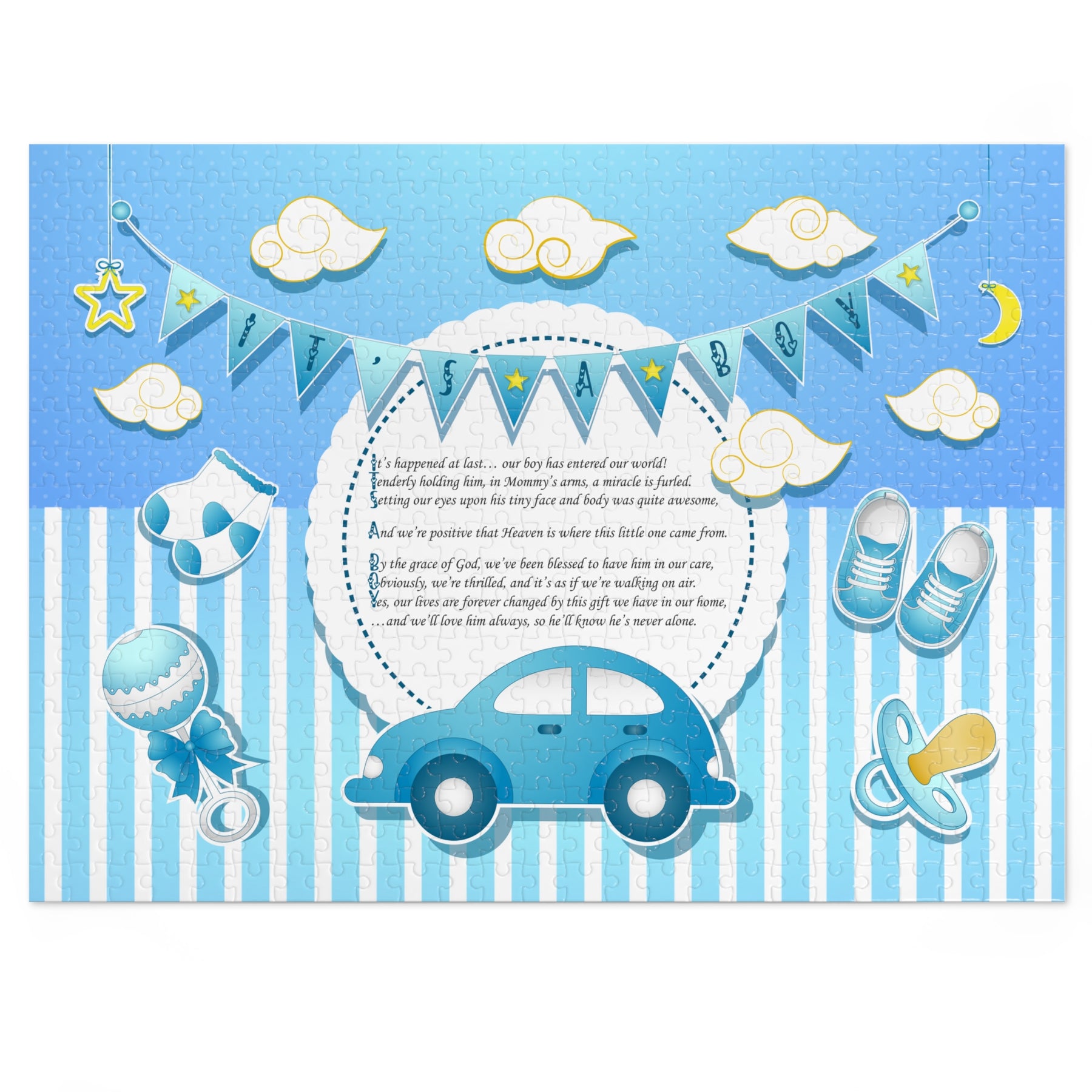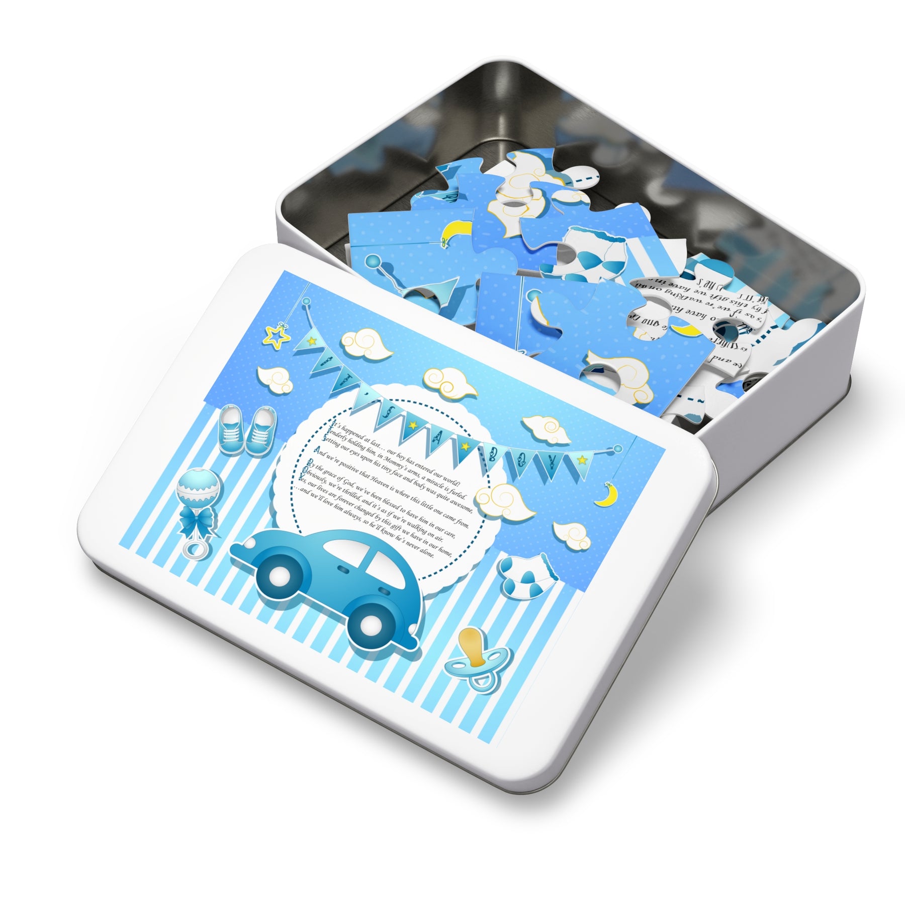 Take a look at our "It's Just a Phrase" "It's a Boy!" Puzzle from Moments in Rhyme. It’s a fun activity for your baby shower that guests can enjoy throughout the party. They’re sure to love it, and it also makes a lovely keepsake or a gift for another new mom. The puzzle is made from sturdy board with a glossy finish and comes in a gift-ready box that highlights the design. Choose from several sizes, and don’t miss the personalized version where you can add the baby’s first name.