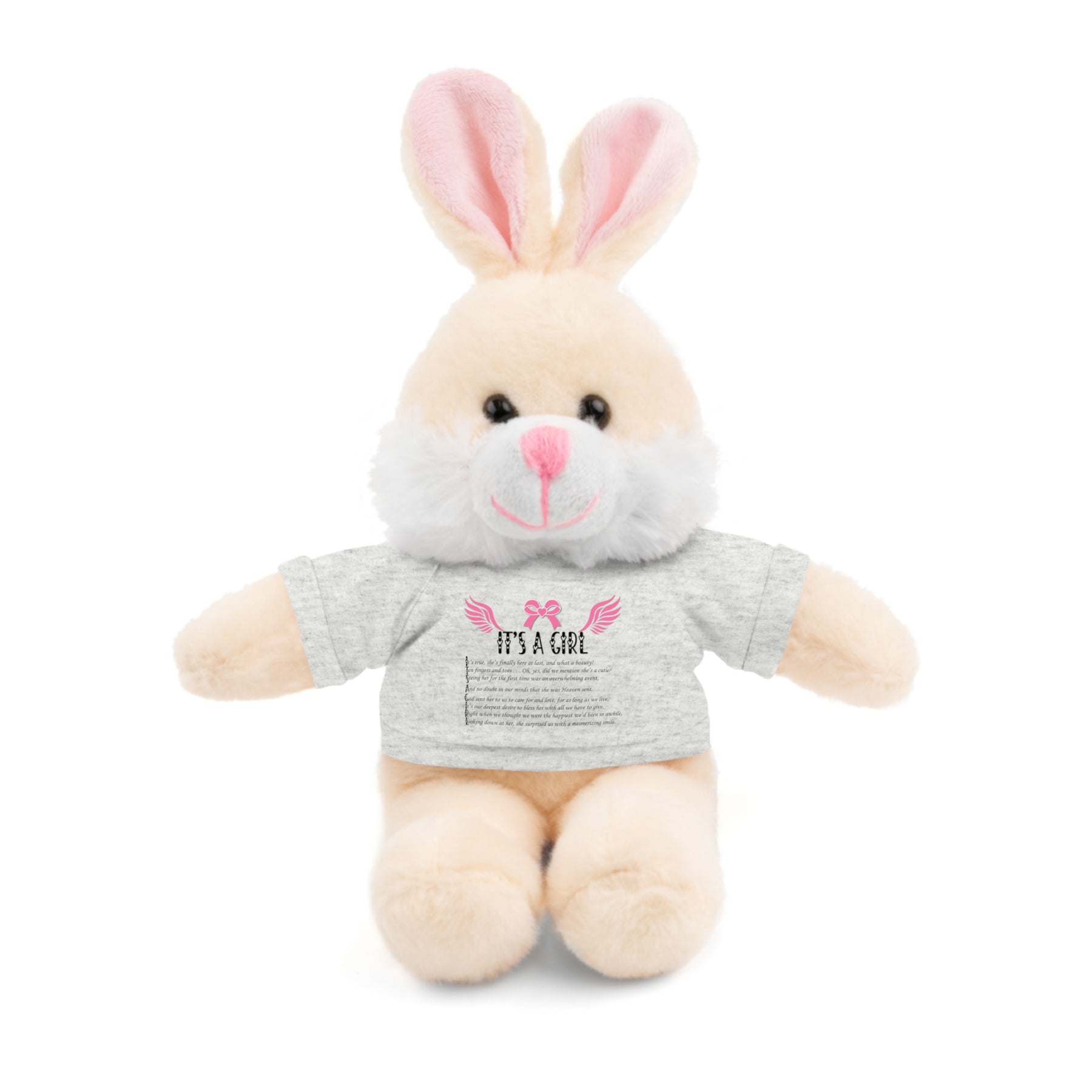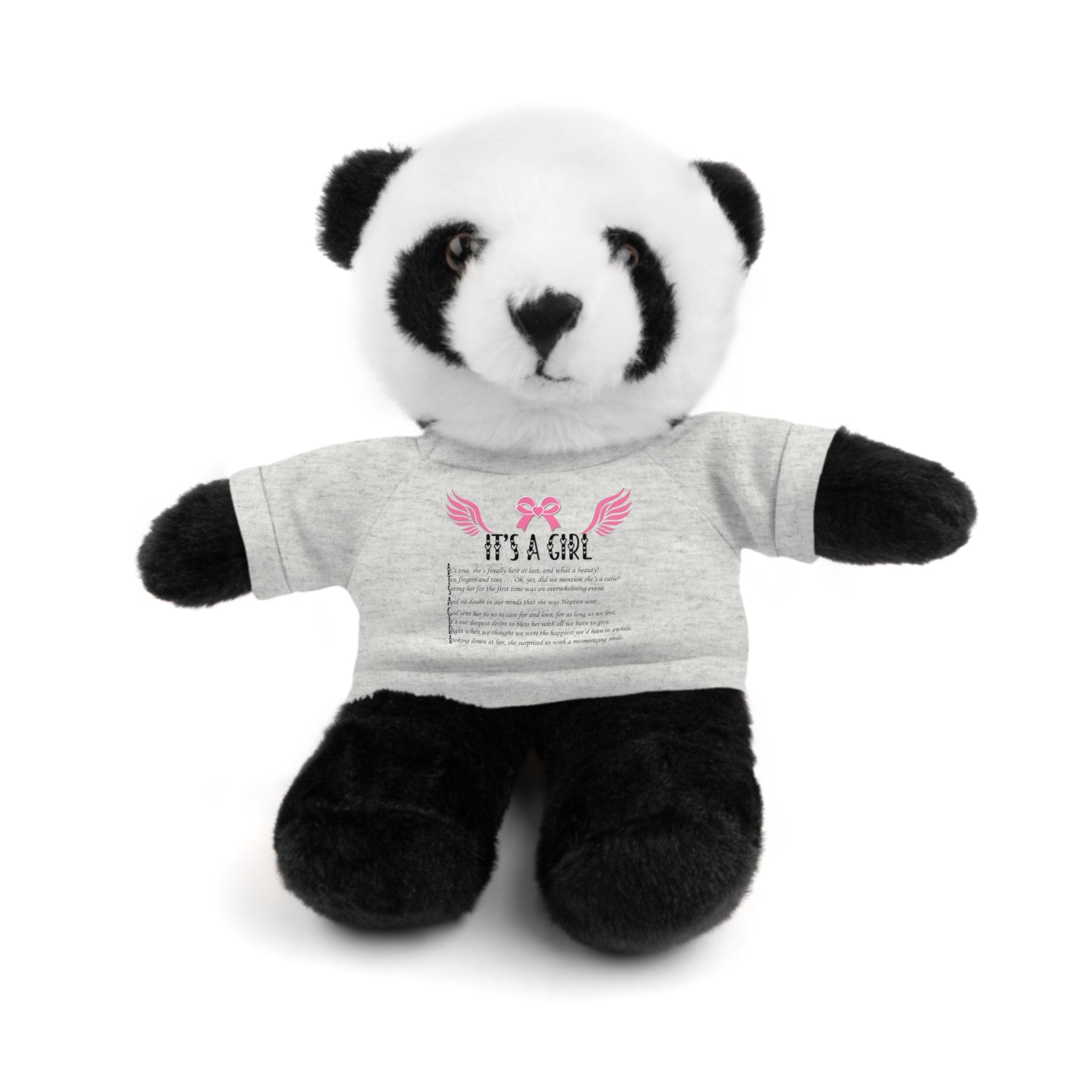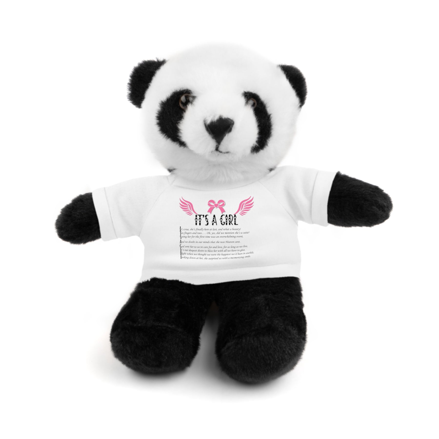 Baby Steps presents our precious, tiny stuffed animals. Their miniaturized 100% cotton T-shirts feature an acrostic poem that spells out It's a Girl, adding extra charm. They come in a variety of teeny-tiny shirt colors, too! These will become a lifetime keepsake. They create adorable nursery decor and are ideal for baby shower gifts. Designed to put smiles on the faces of any child, these stuffed animals come with a playful attitude and customizable tees. Each plushie is 8 inches tall, features polyester and plastic pellet stuffing, and its tees are 100% cotton. Available animals include Panda, Lion, Bear, Bunny, Jaguar, and Sheep. (You might need reading glasses or a magnifying glass for some of these miniturized poems, but it’s worth a closer look at! Good things come in small packages, and you’ll find yourself reading it many times.)
