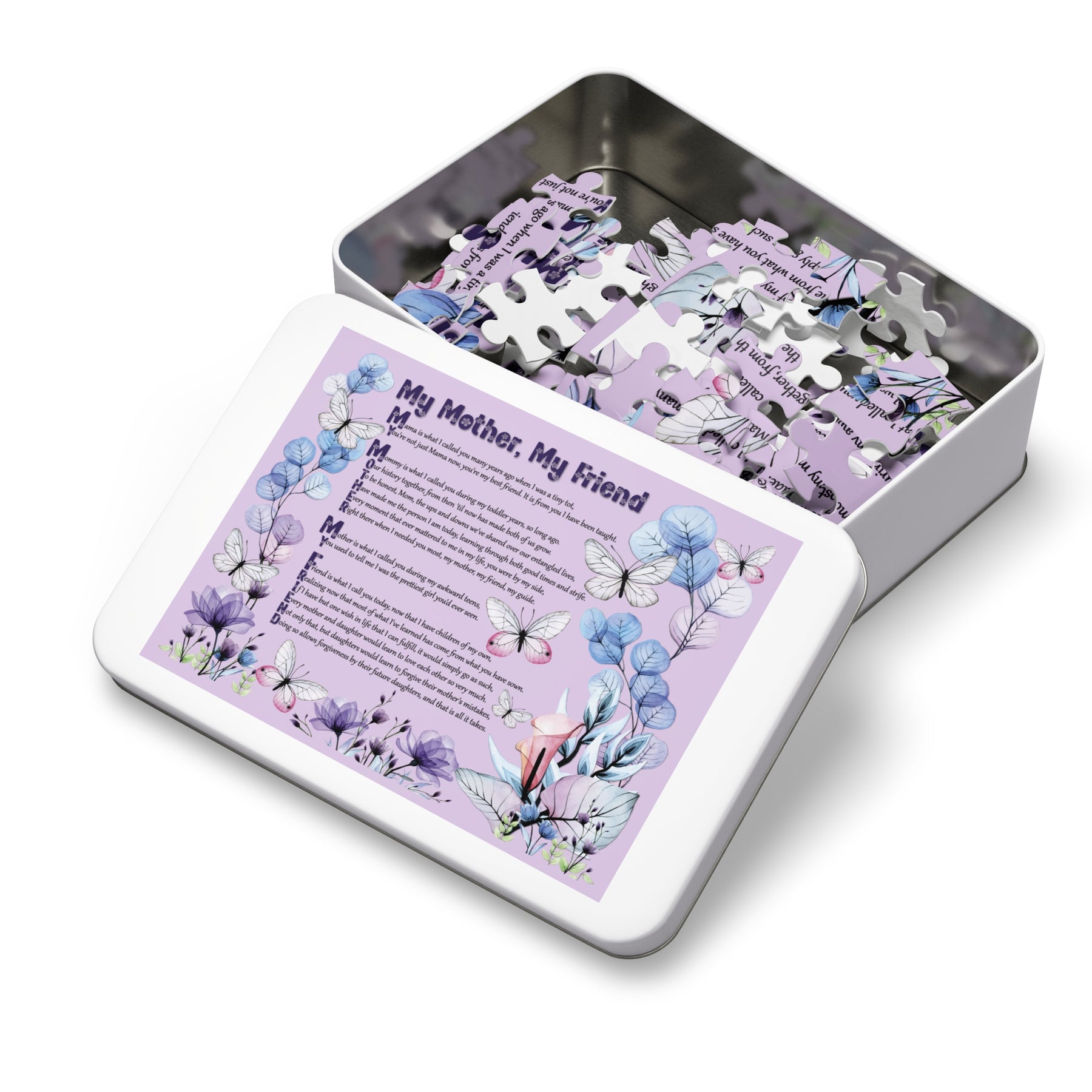 It's Just a Phrase from Moments in Rhyme offers a beautiful acrostic poem puzzle, perfect as a special gift for Mother’s Day, birthdays, or any occasion. This puzzle features a unique design and font, with an acrostic poem that spells out My Mother, My Friend. Elegantly crafted, it makes a lasting keepsake and a meaningful way to celebrate your bond with someone truly special. Made from sturdy puzzle board with a glossy finish, it comes in a gift-ready box that highlights the design. Several sizes are available.