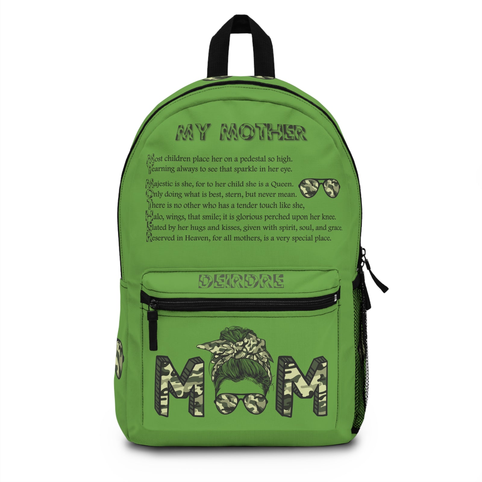 Gotta lot of stuff to take places? The It's Just a Phrase acrostic poem spells out My Mother and has a Camo design. This backpack from Moments in Rhyme provides ample space for everything. Take it to class, on a trip, or wherever you need to go. It’s made from spun polyester, so it’s both lightweight and tough, weighing just 1.3 lbs. The adjustable shoulder straps and blank name tag inside add convenience, and the waterproof material keeps your things safe. Just tell us the name you’d like on it, and we’ll do the rest.