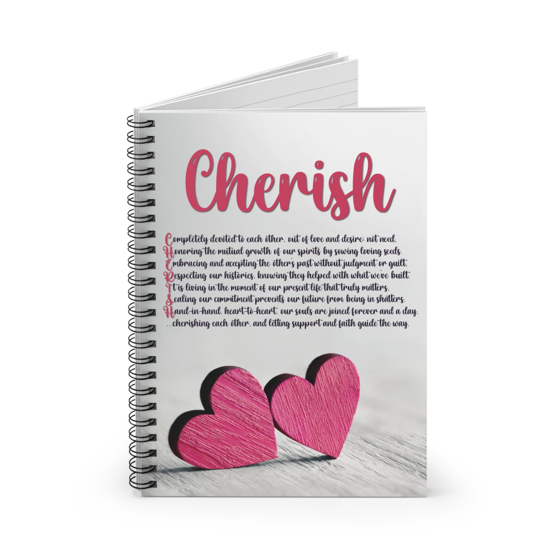 Take a look at the It's Just a Phrase Spiral Notebook Collection from Moments in Rhyme. This notebook includes an acrostic poem that spells out Cherish and a pink wooden hearts graphic. It’s a thoughtful birthday, Valentine’s, Christmas, or everyday gift to show someone you care. Use it for shopping lists, recipes, or journaling. The sturdy printed cover keeps it safe wherever you go, and the font helps it stand out. It comes with a dark grey back cover and 59 double-sided sheets.