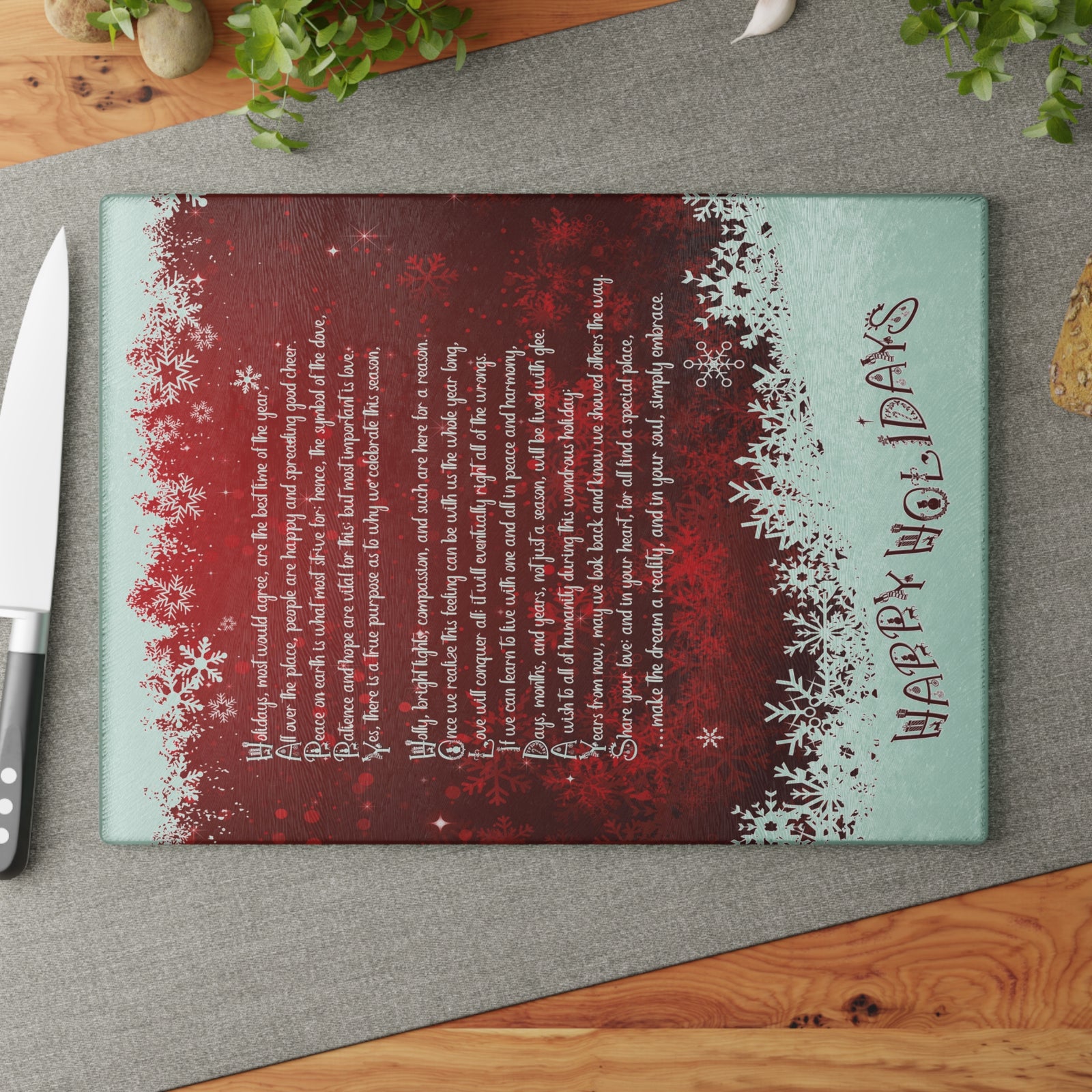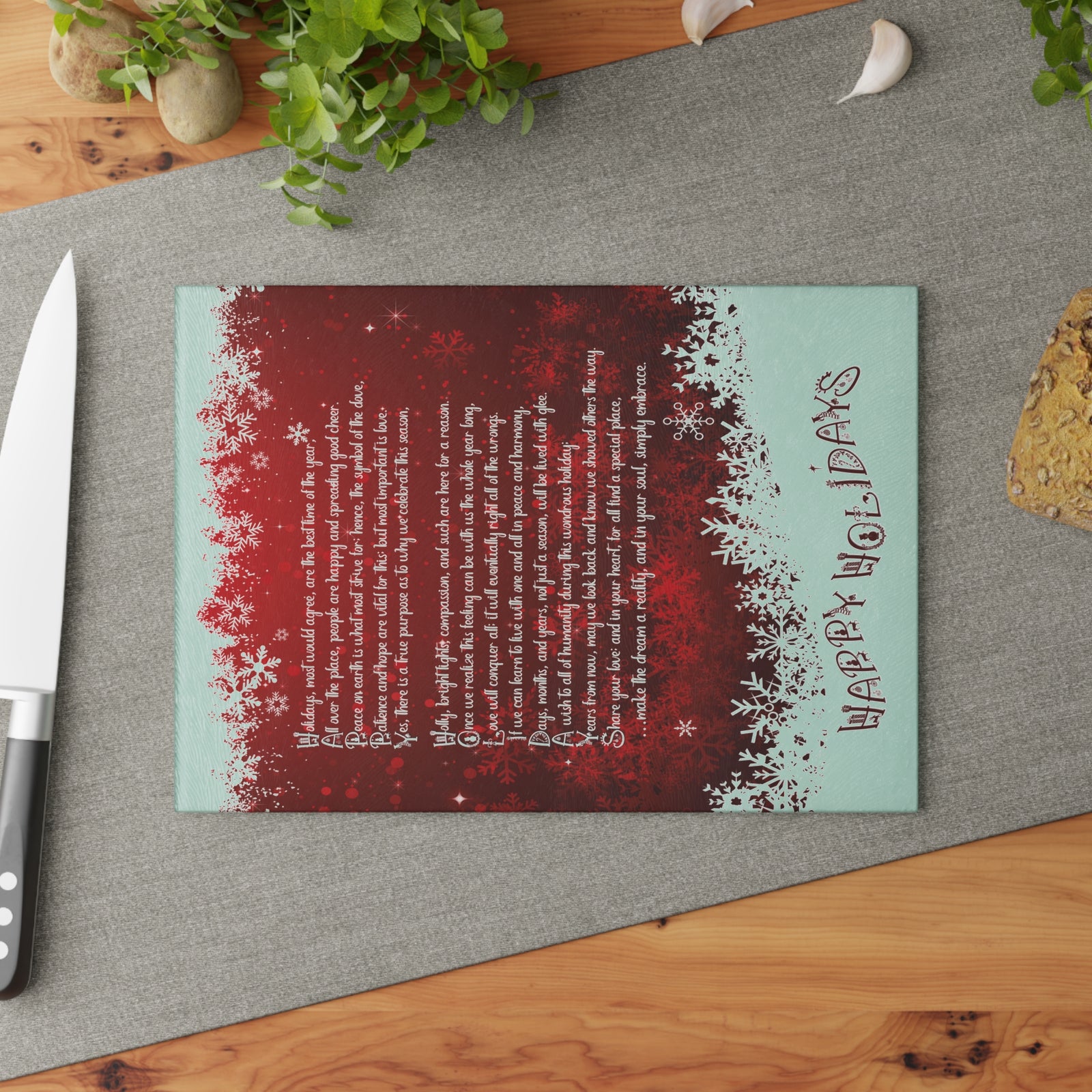 Bring a touch of character into any kitchen with this custom glass cutting board. Its tempered glass material is robust and helps prepare many a tasty meal for a long time to come. The textured surface makes it an ideal chopping, slicing, and dicing area. Available in two sizes: 8" x 11" and 11" x 15".