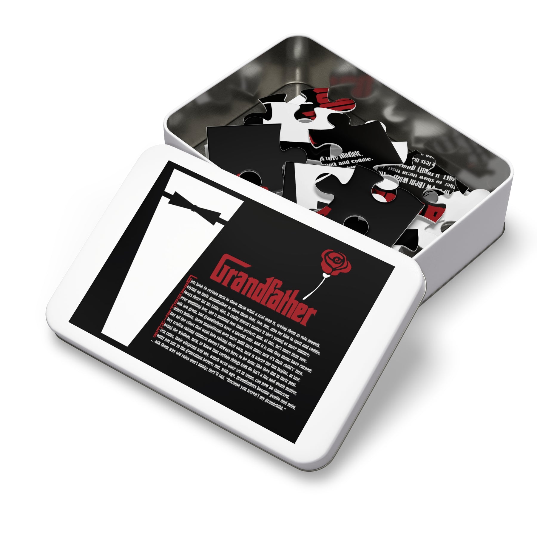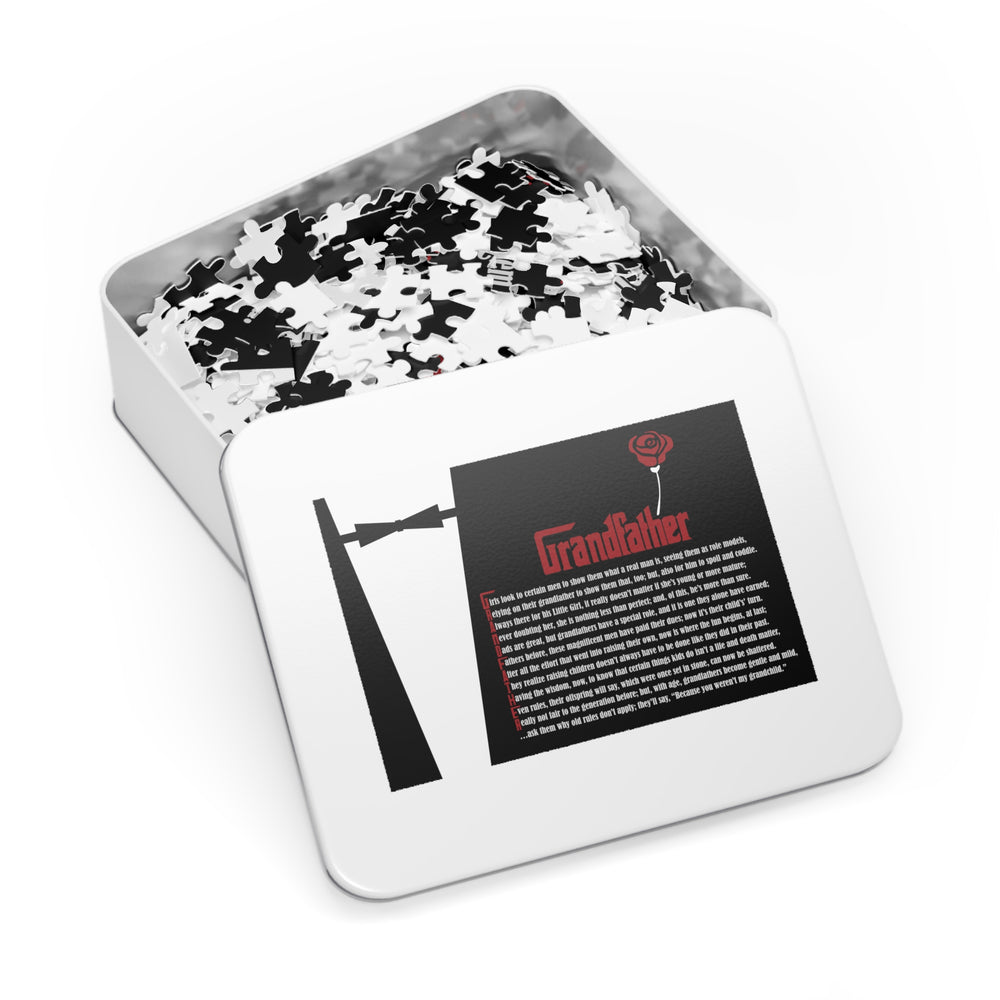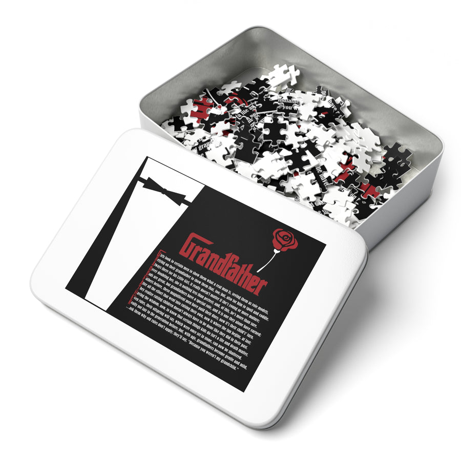 Moments in Rhyme is proud to present a fun acrostic poem puzzle from the It's Just a Phrase collection. Are you searching for the ideal, one-of-a-kind present for your beloved Grandfather? If he enjoys jigsaw puzzles, he'll adore this one. This puzzle will become a treasured possession, providing hours of entertainment. With a charming vintage image and a heartfelt acrostic poem spelling out Grandfather, it's a perfect way to express your bond with one of the most significant men in your life. It's made from sturdy puzzle board with a glossy finish and comes in a gift-ready tin box that shows off the design. Several sizes are available.