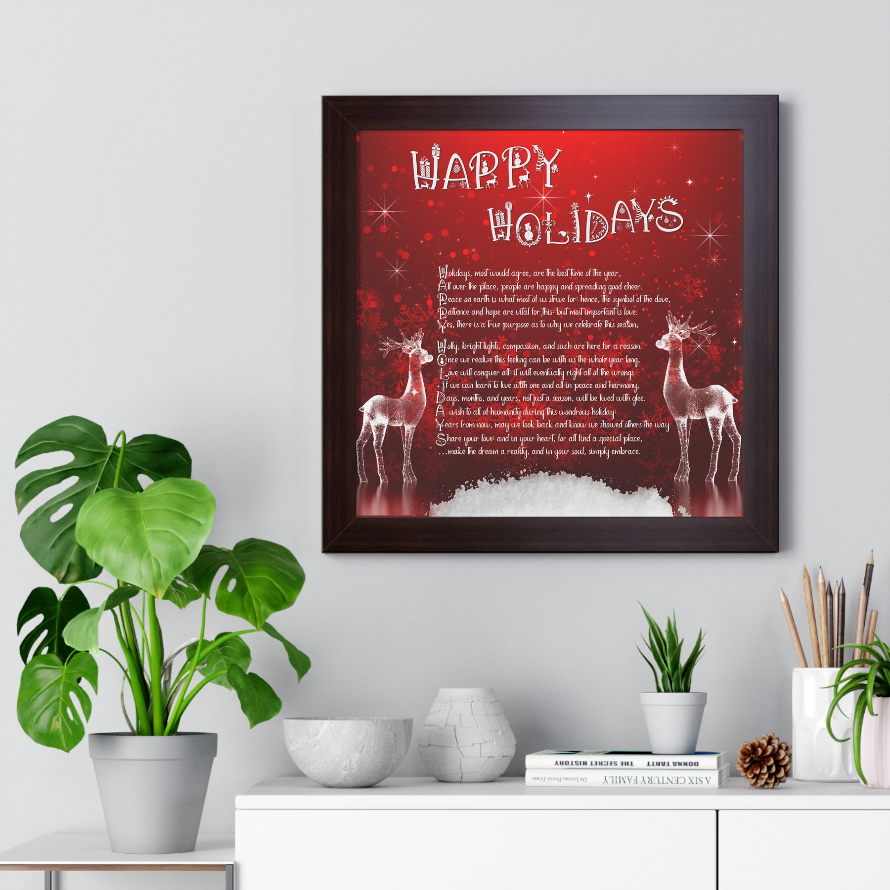 Moments in Rhyme introduces our It's Just a Phrase Puzzle Collection, meticulously crafted for any puzzle enthusiast and holiday lover alike. Gorgeous design that includes an acrostic poem spelling out "Happy Holidays". Leave this out all season long and invite family and guests to help with a piece or two here and there. They will piece together this enchanting puzzle, using each letter as a clue, unveiling a captivating poem about the holiday season. With its vibrant imagery and intricate design, it's also perfect for those seeking a mindful and immersive experience. Unleash your critical thinking skills and embrace the magic of this exquisite puzzle. This jigsaw puzzle is made with high-quality chipboard pieces and ships in a gift-ready box which also features the design on the box.