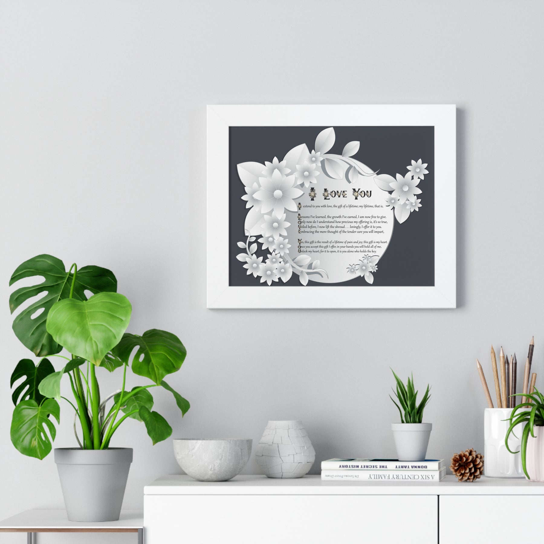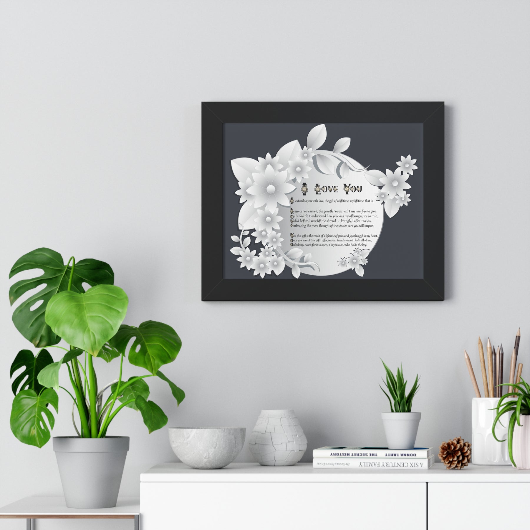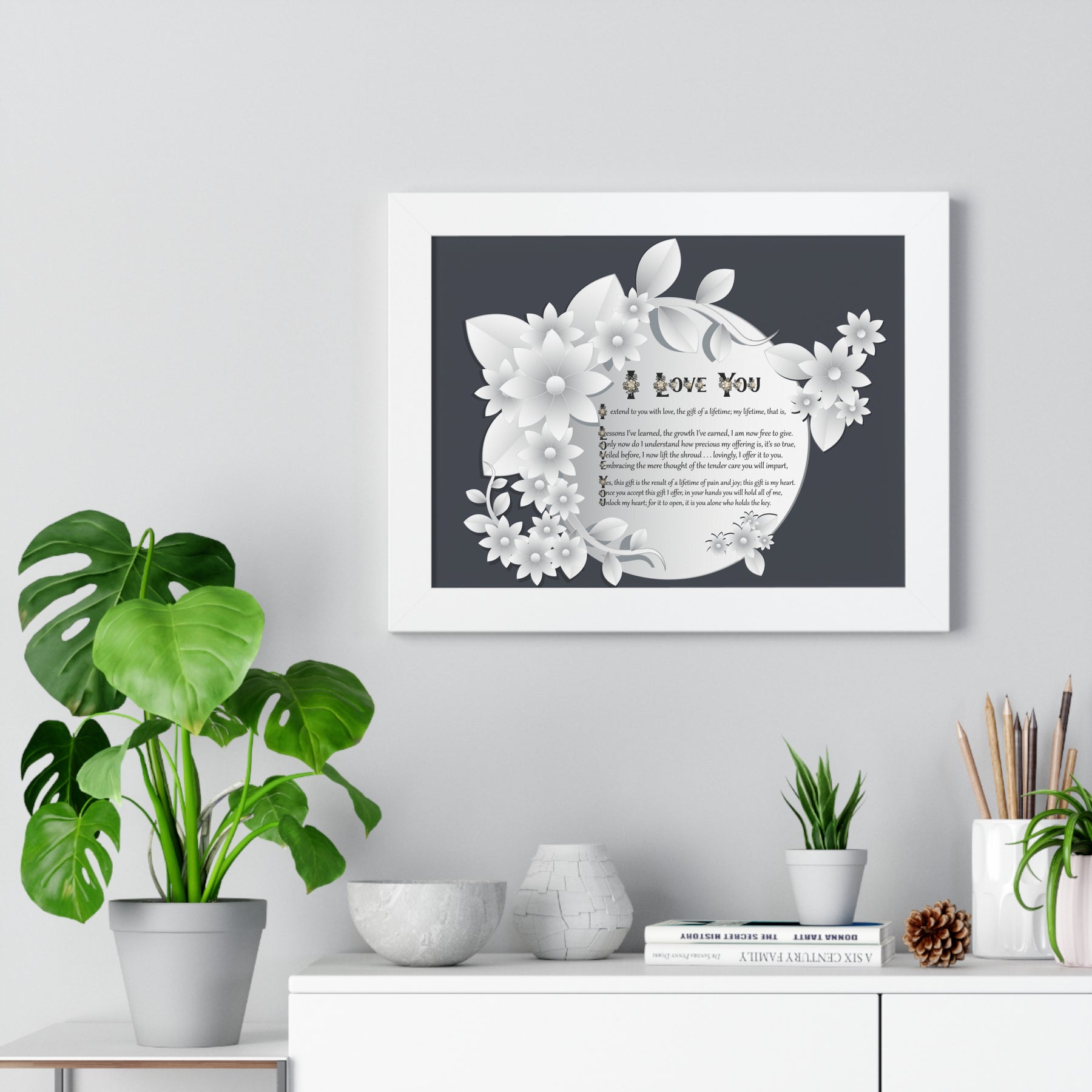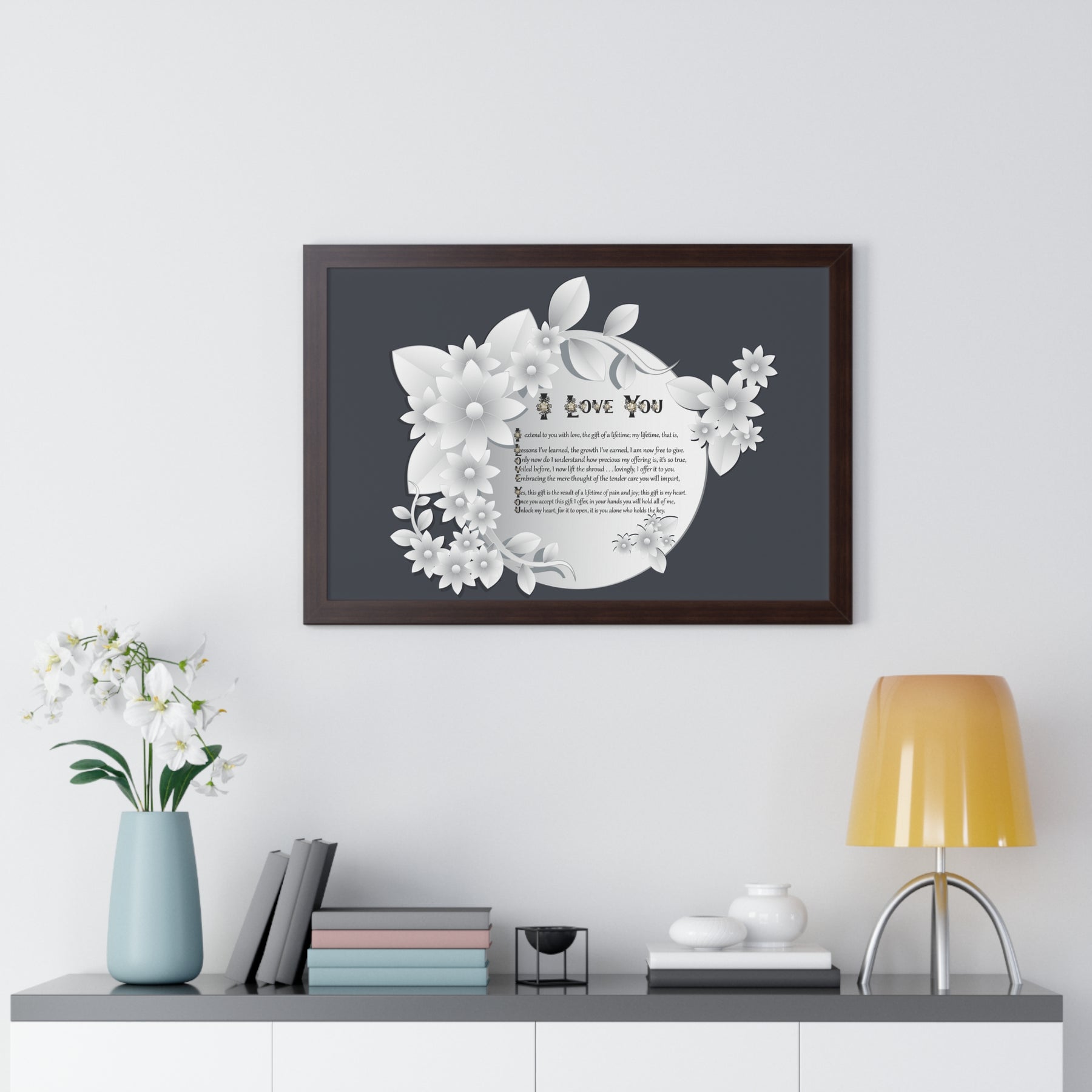 Your Sweetheart is going to love this acrostic poem print from Moments in Rhyme's It's Just a Phrase framed print collection. Check out the amazing font on this poem that spells out "I Love You. It's a heartwarming tribute to the special relationship you share with your beloved. Every time they see this print, they'll be reminded of your love and appreciation. And the graphic adds some artistic flare that will enhance any room.