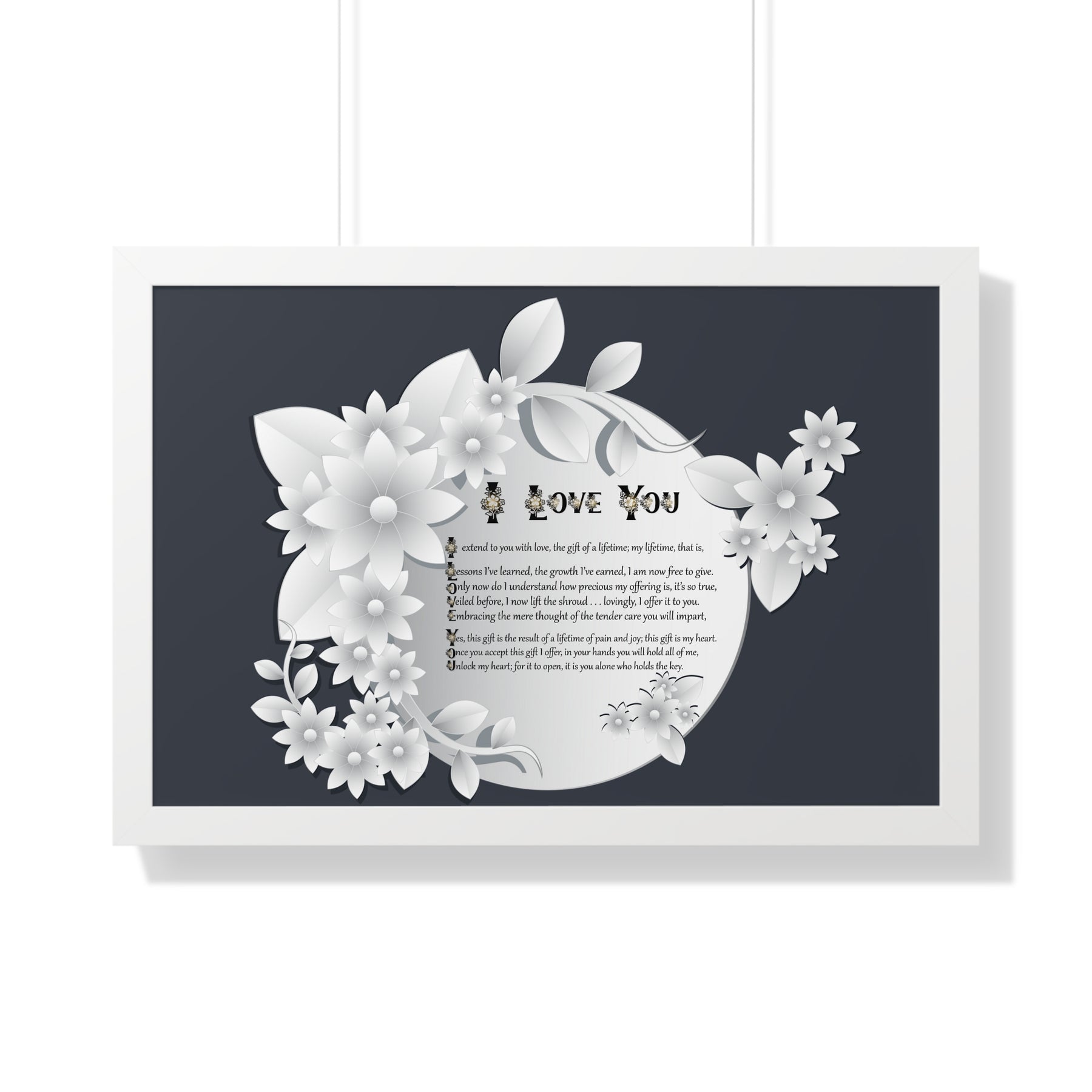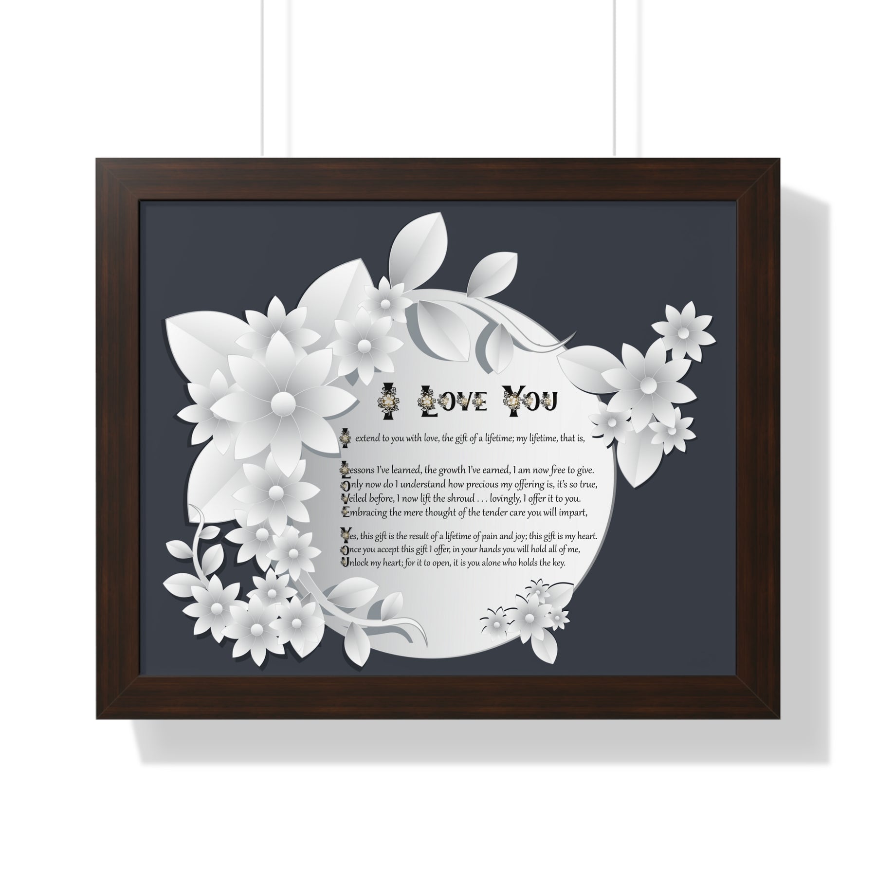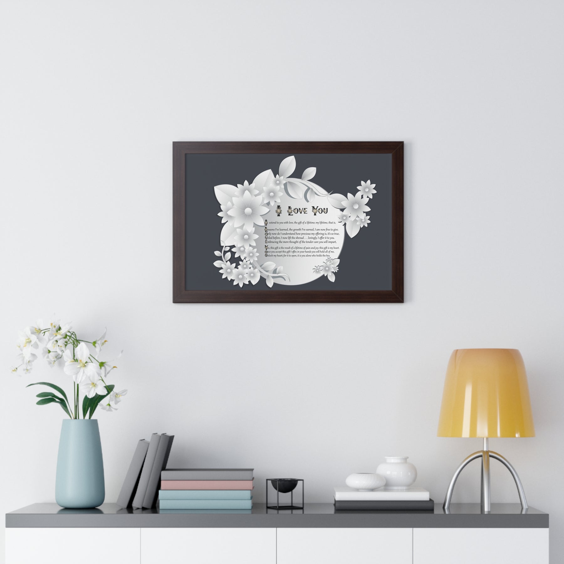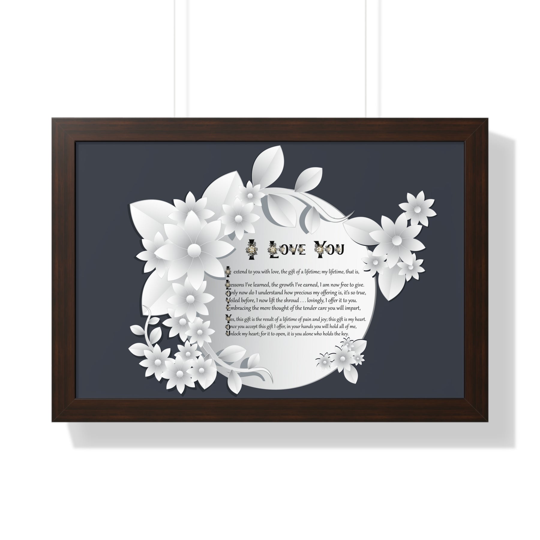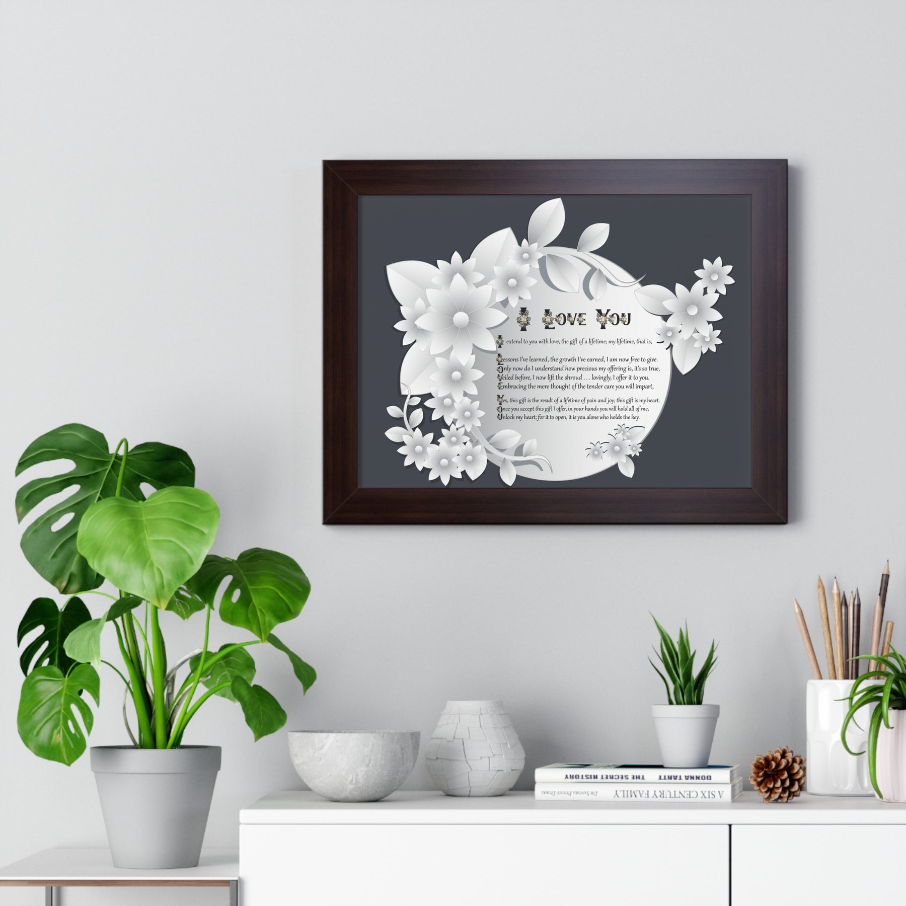 Your Sweetheart is going to love this acrostic poem print from Moments in Rhyme's It's Just a Phrase framed print collection. Check out the amazing font on this poem that spells out "I Love You. It's a heartwarming tribute to the special relationship you share with your beloved. Every time they see this print, they'll be reminded of your love and appreciation. And the graphic adds some artistic flare that will enhance any room.