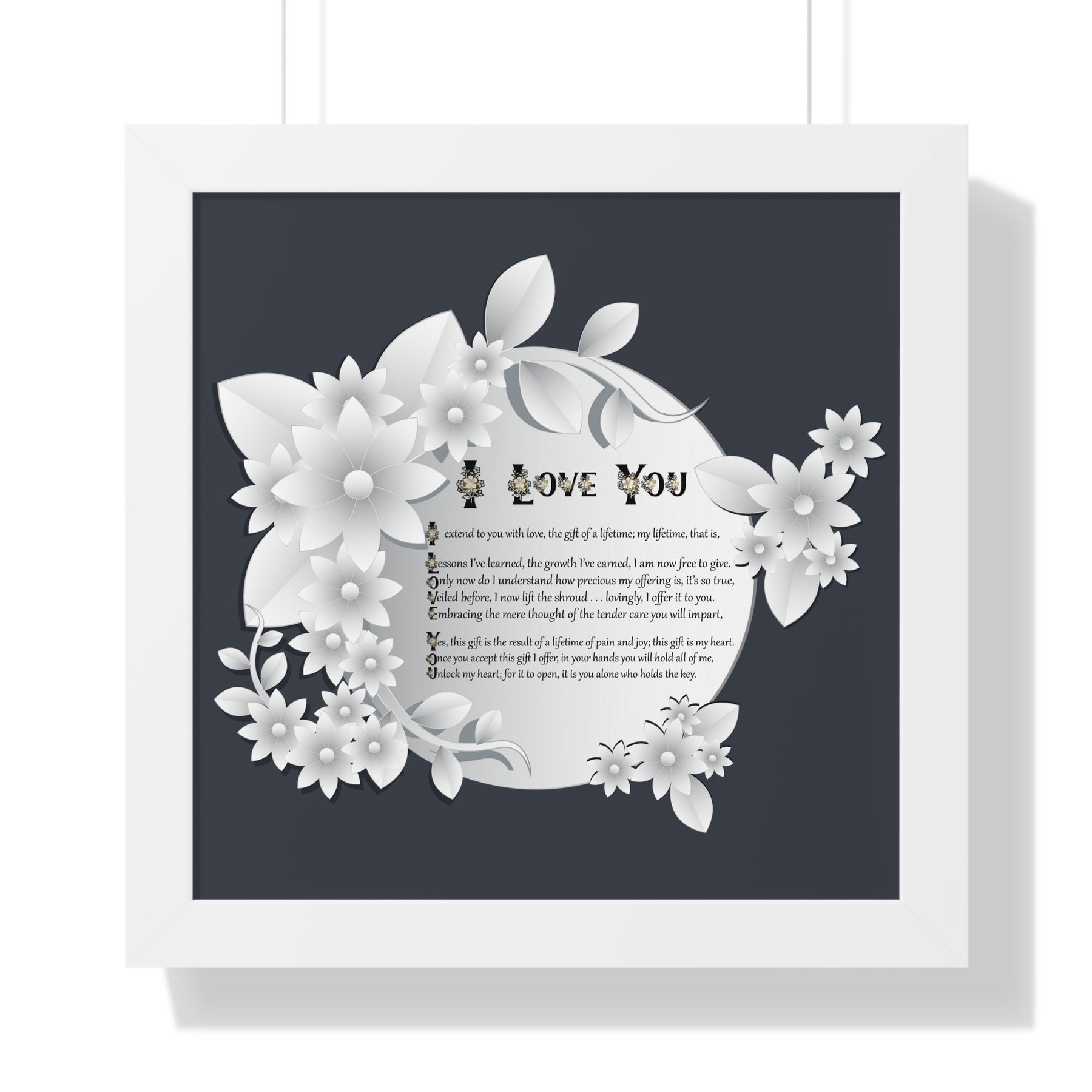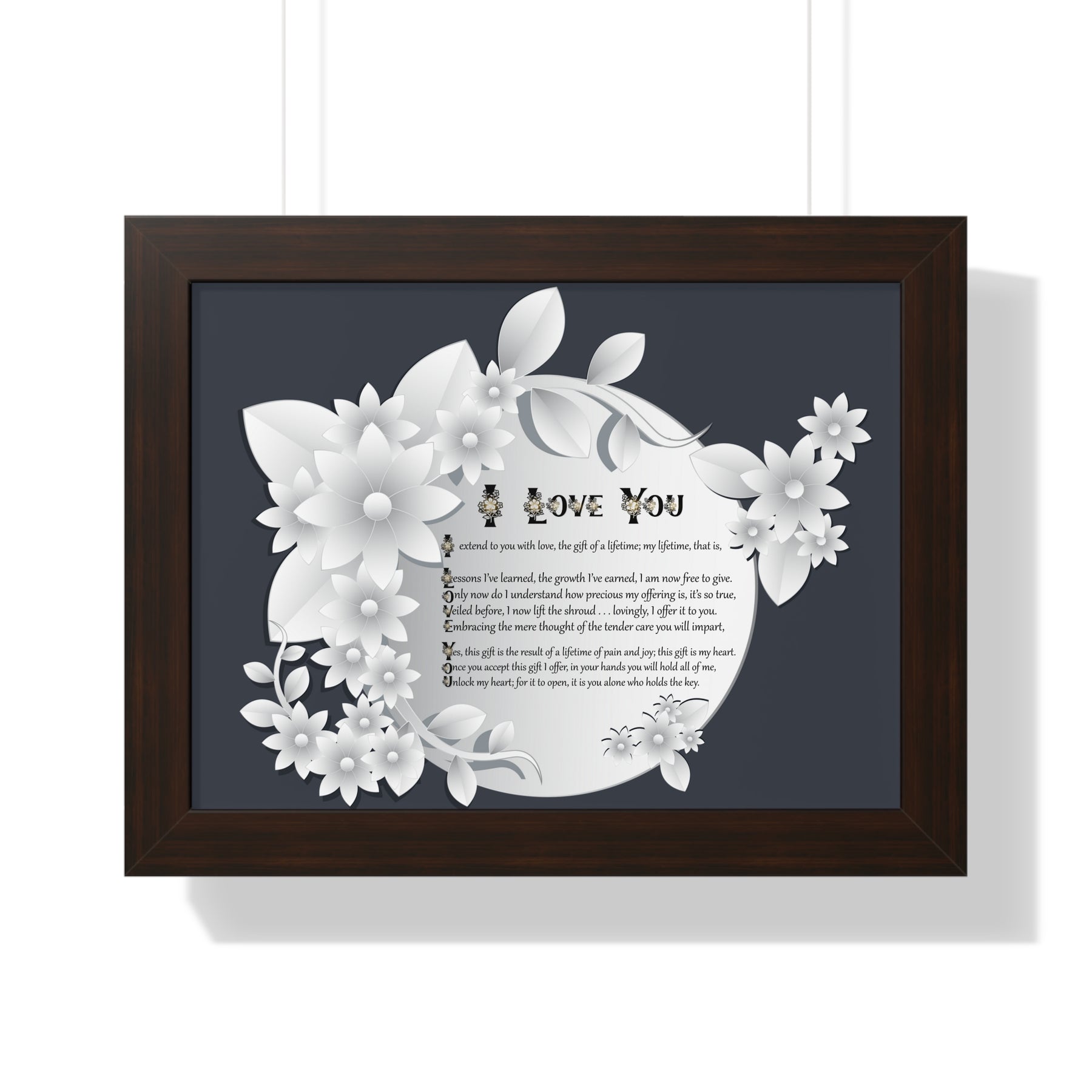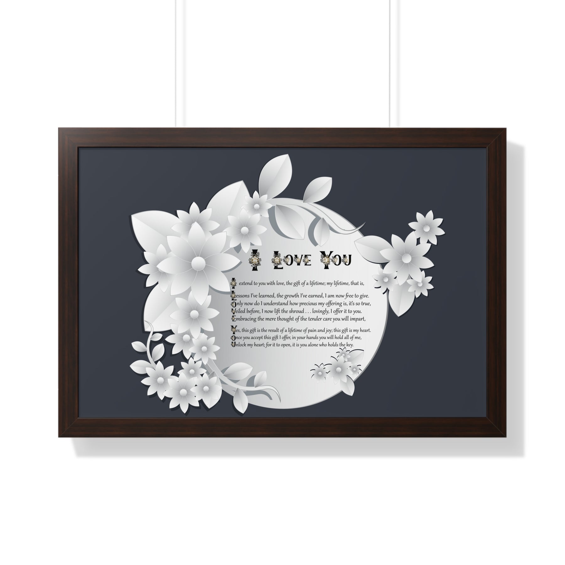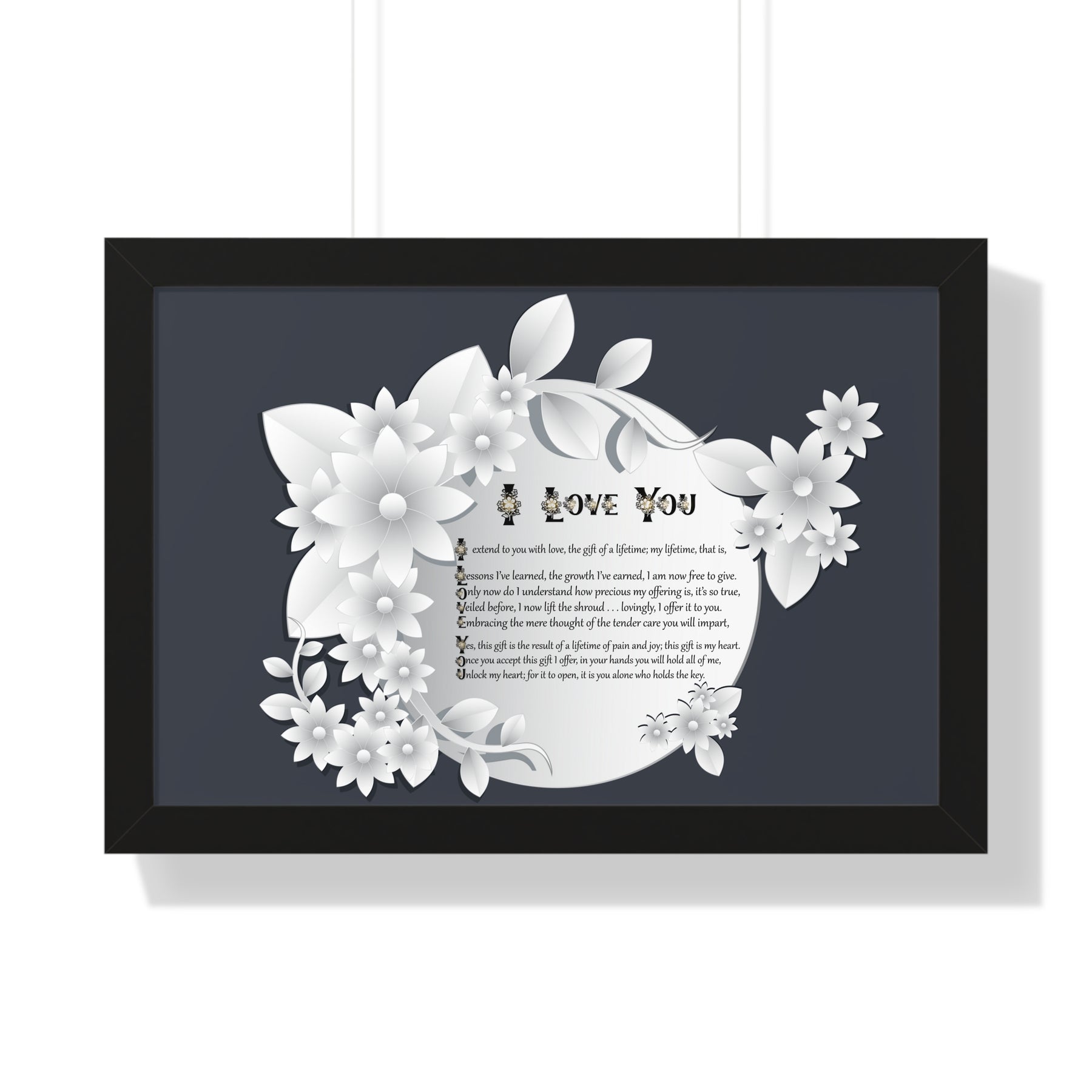 Your Sweetheart is going to love this acrostic poem print from Moments in Rhyme's It's Just a Phrase framed print collection. Check out the amazing font on this poem that spells out "I Love You. It's a heartwarming tribute to the special relationship you share with your beloved. Every time they see this print, they'll be reminded of your love and appreciation. And the graphic adds some artistic flare that will enhance any room.