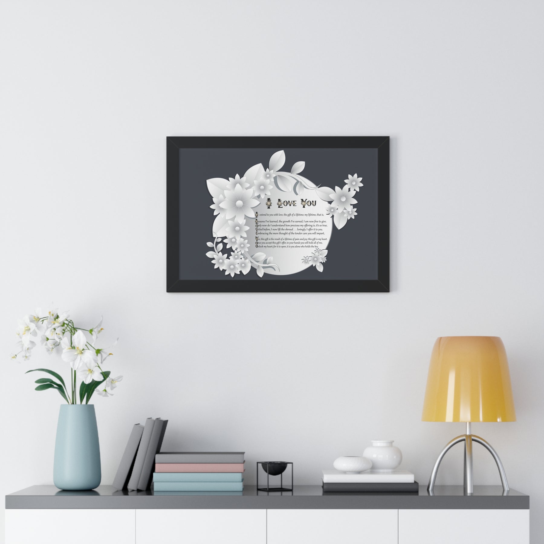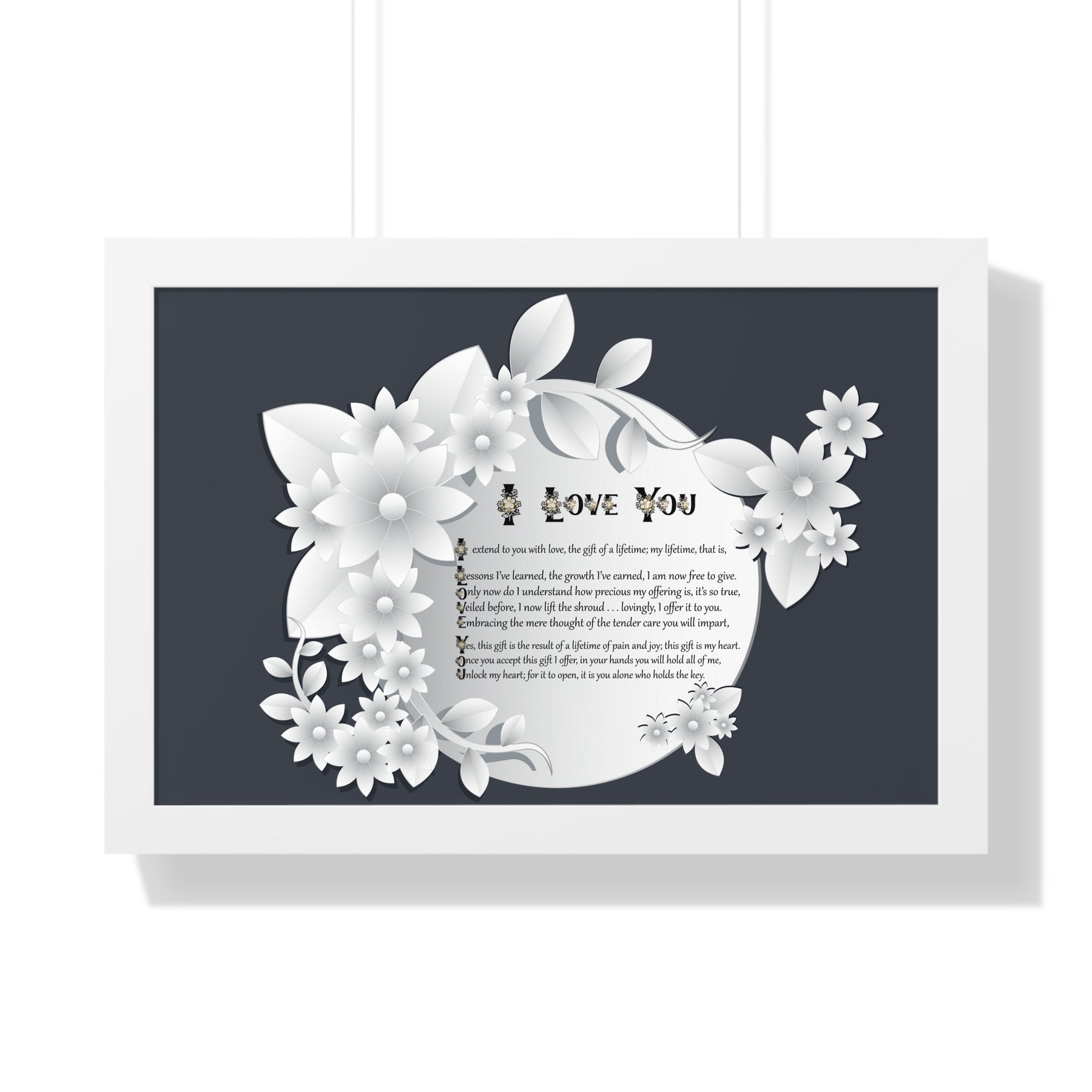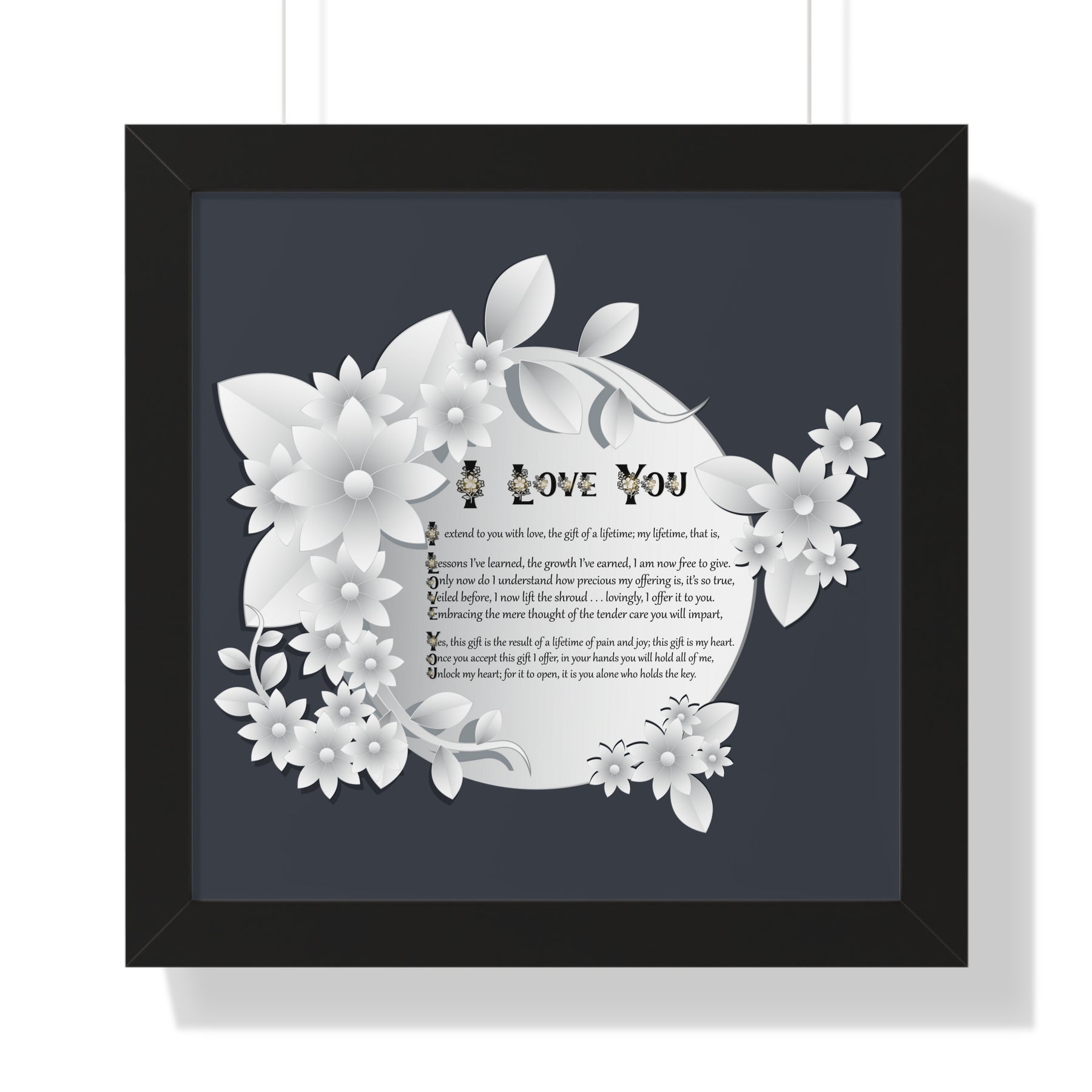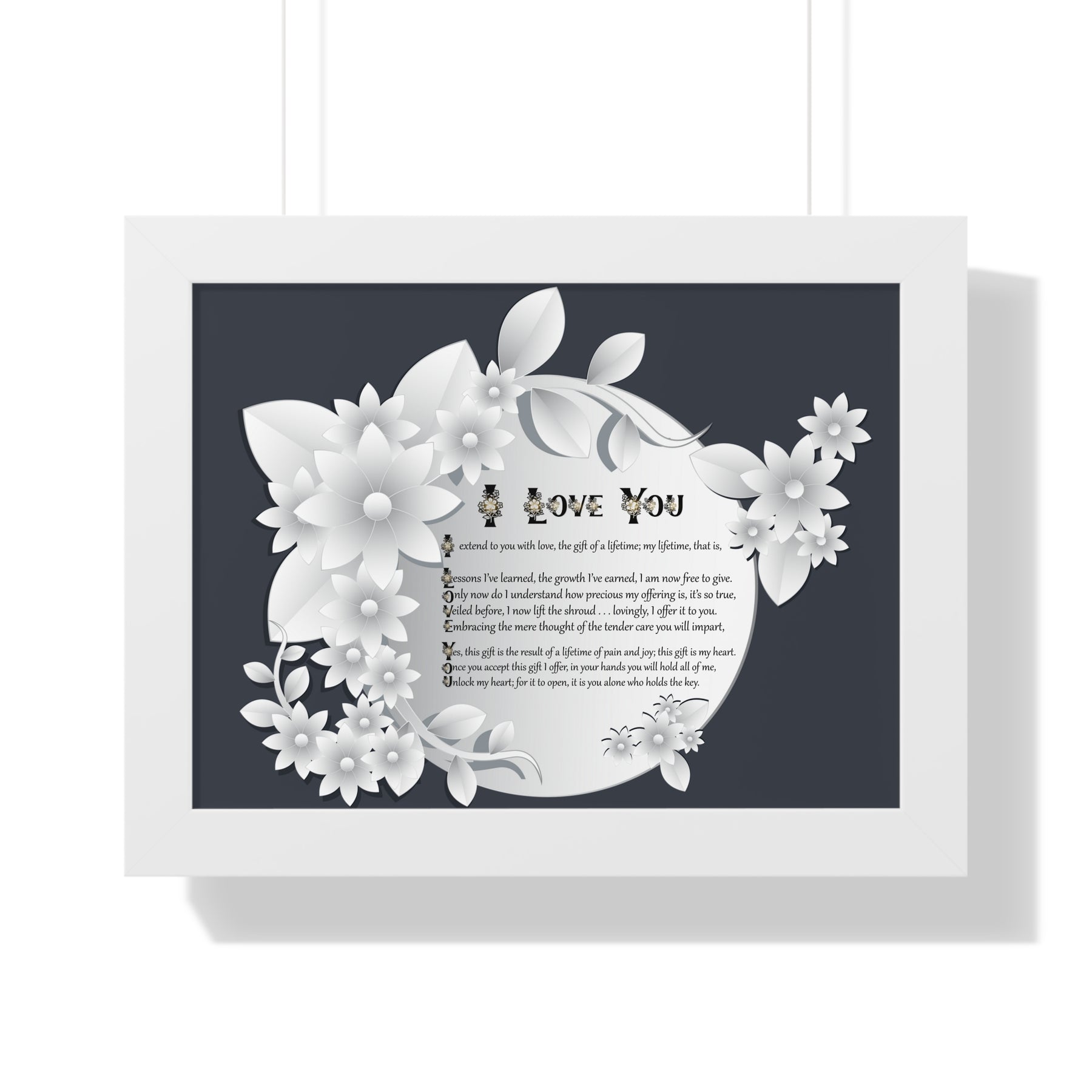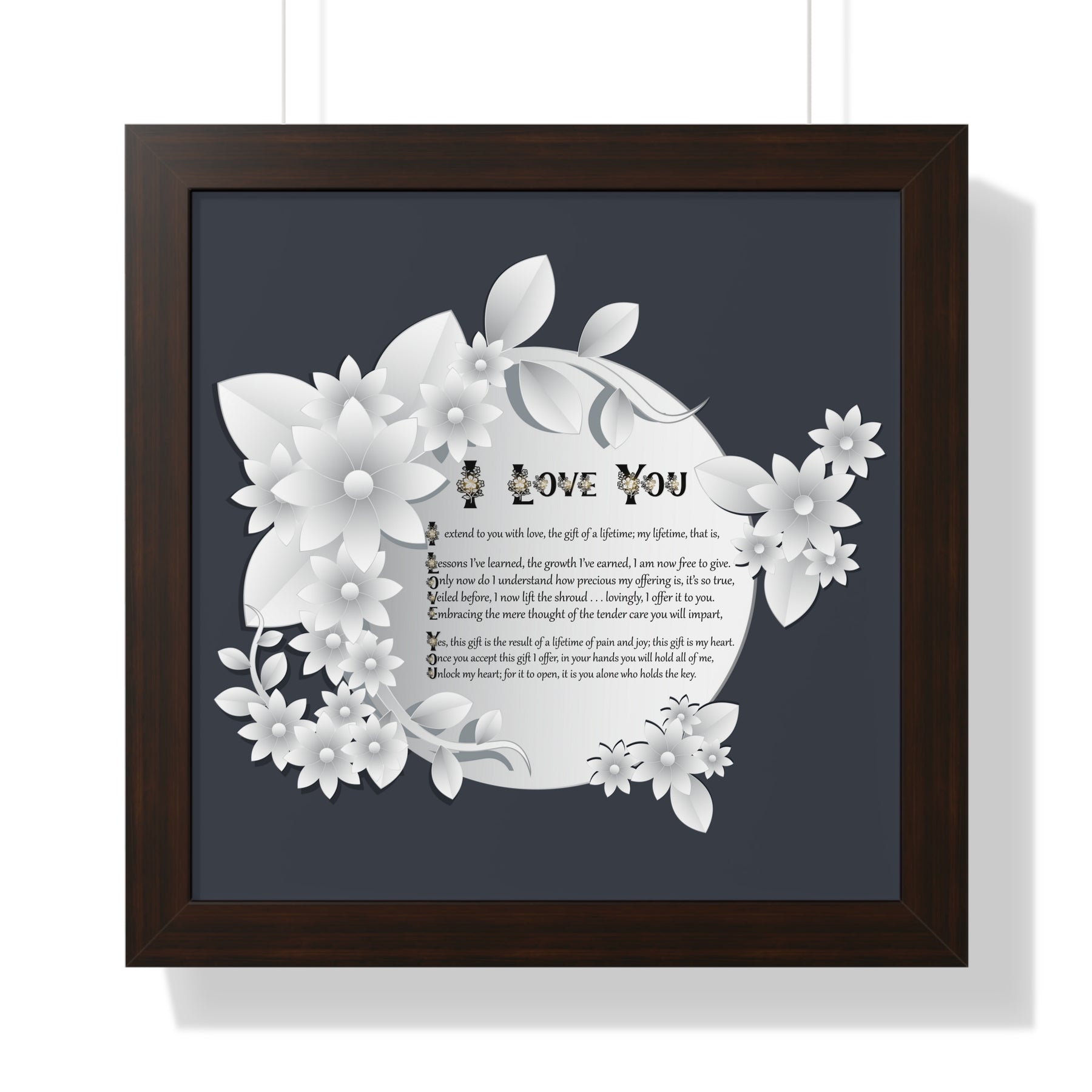 Your Sweetheart is going to love this acrostic poem print from Moments in Rhyme's It's Just a Phrase framed print collection. Check out the amazing font on this poem that spells out "I Love You. It's a heartwarming tribute to the special relationship you share with your beloved. Every time they see this print, they'll be reminded of your love and appreciation. And the graphic adds some artistic flare that will enhance any room.