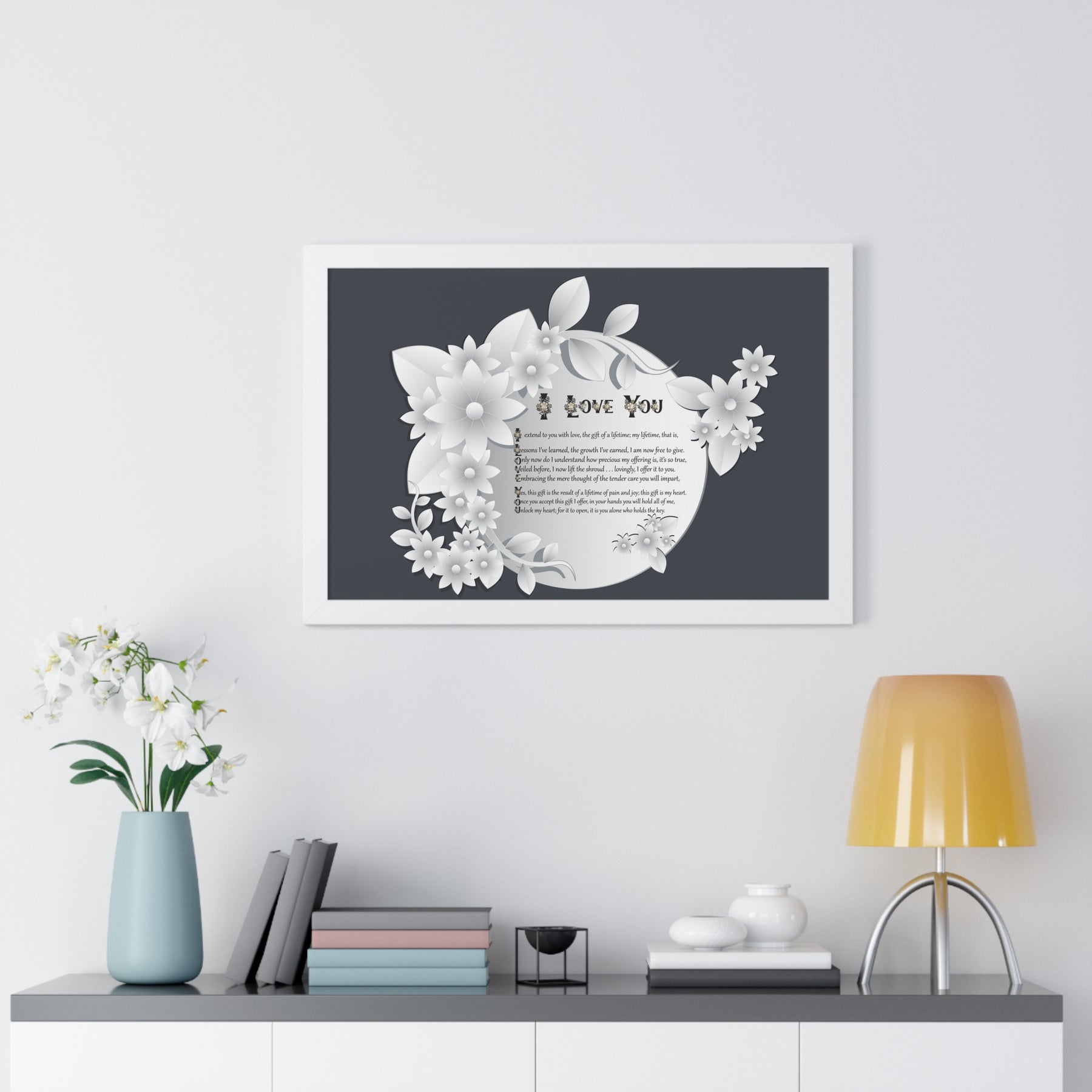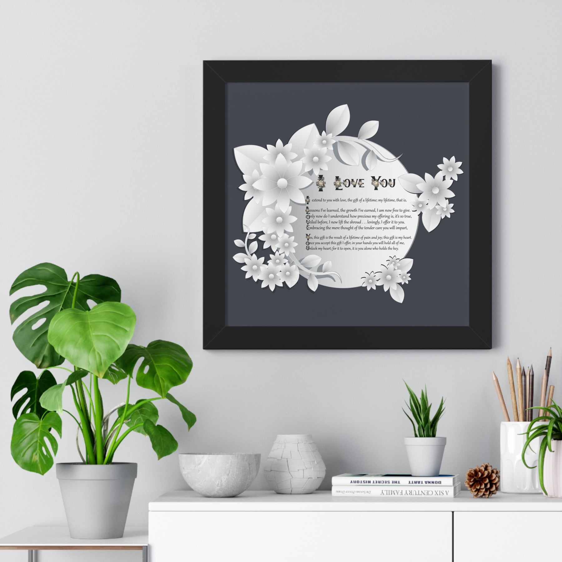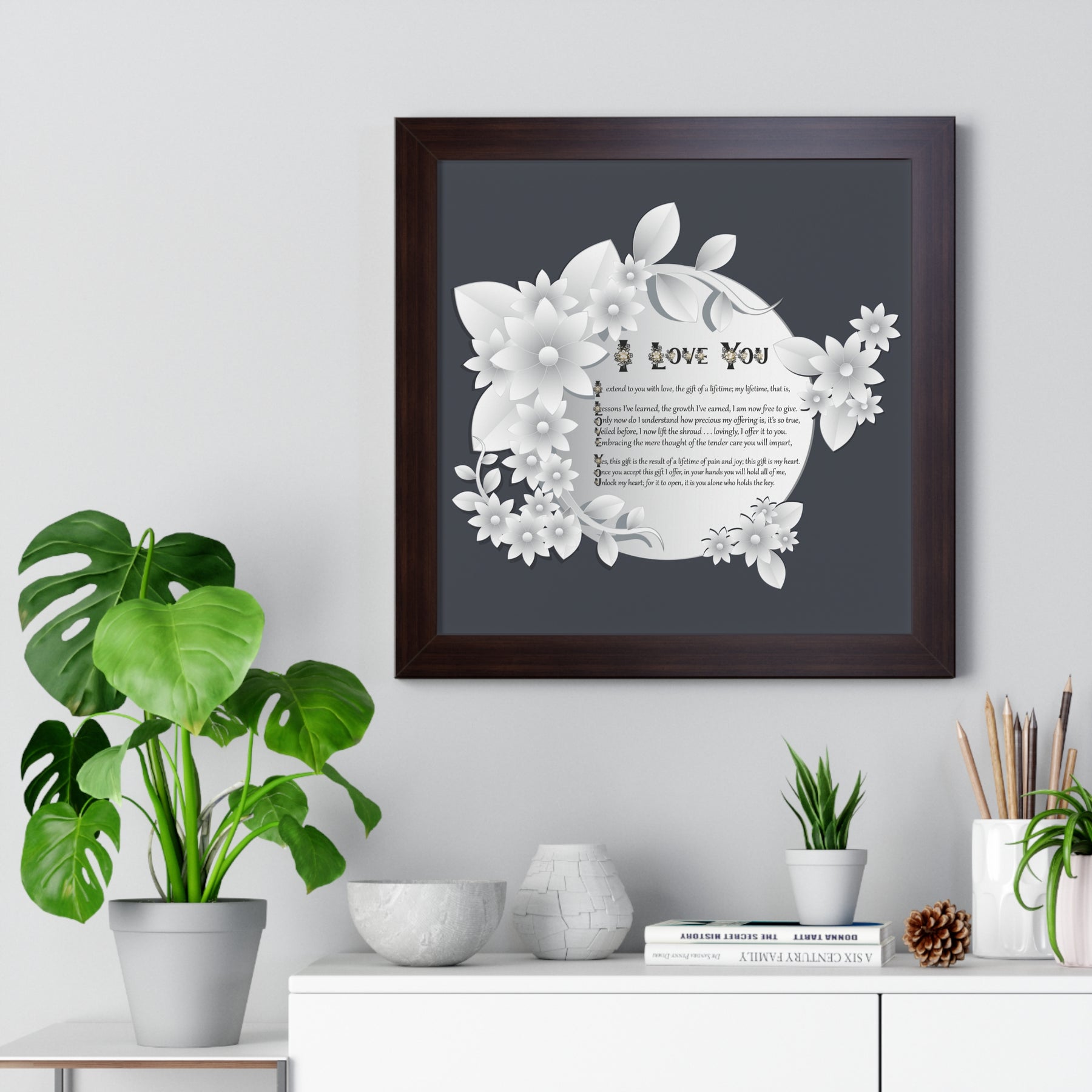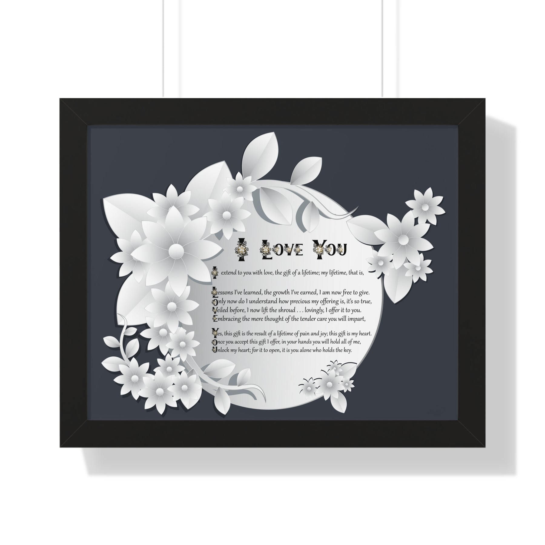 Your Sweetheart is going to love this acrostic poem print from Moments in Rhyme's It's Just a Phrase framed print collection. Check out the amazing font on this poem that spells out "I Love You. It's a heartwarming tribute to the special relationship you share with your beloved. Every time they see this print, they'll be reminded of your love and appreciation. And the graphic adds some artistic flare that will enhance any room.