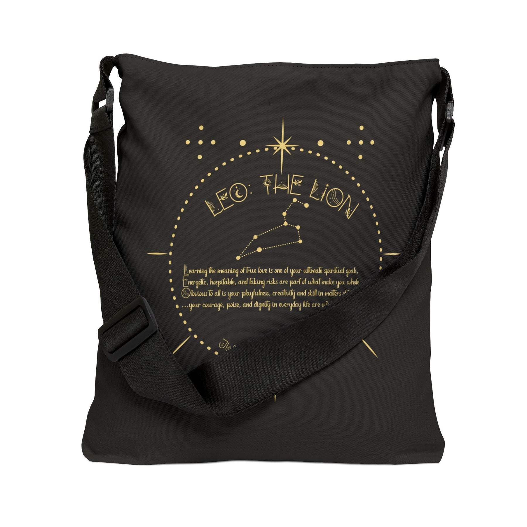 Explore our adjustable tote bags from Written in the Stars. This amazing tote features an acrostic poem spelling out Leo, along with its traits and spiritual goal, making it a unique choice for students, professionals, and creatives. Designed for everyday use, these totes have an interior zippered pocket for added security and adjustable straps for comfort. They make great gifts for holidays, graduations, or special occasions. Made from specially spun polyester threads, they keep their shape and resist wrinkles, so there’s no need to iron. Just spot clean or dry clean as needed. Available in two sizes.