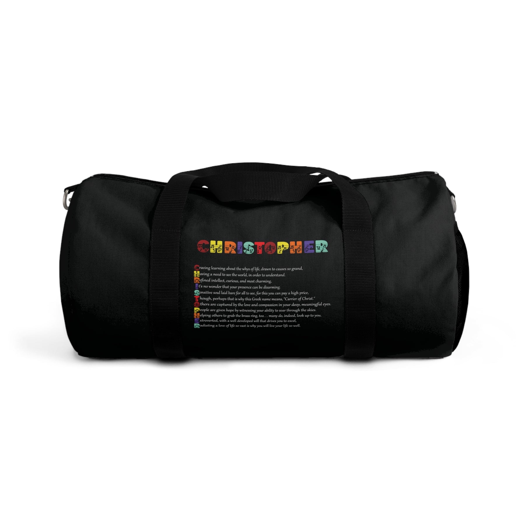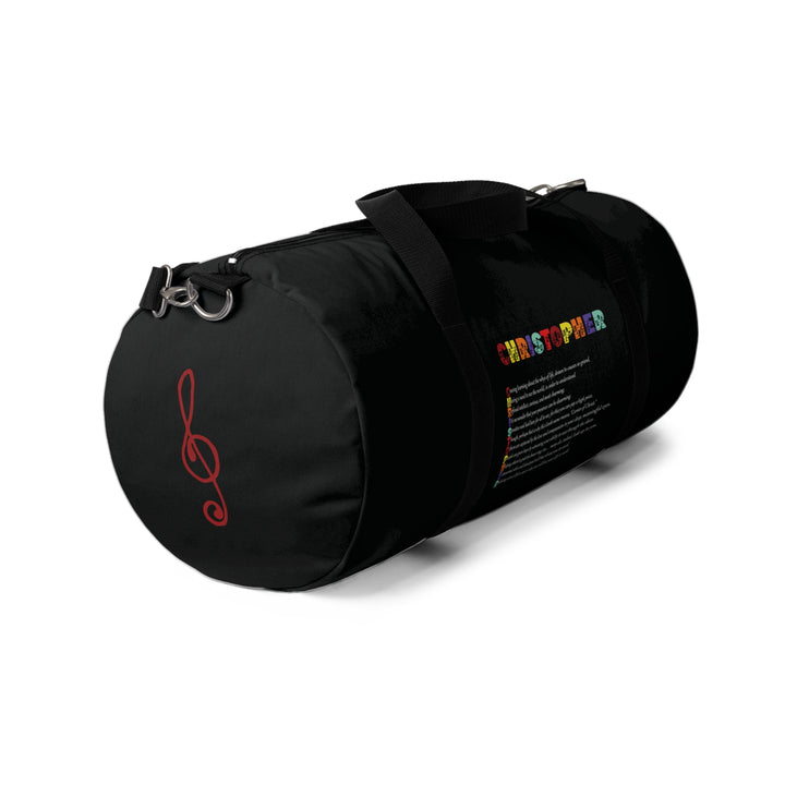 Discover our adjustable tote bags by Namesakes featuring an acrostic poem that spells out the name of your choice, along with lovely, sentimental prose. This versatile duffel bag combines functionality with eye-catching musical design. Perfect for gaming system storage, gym sessions, or weekend getaways, it adds a touch of personality to your adventures. This cool design inspires fun and excitement, making it a favorite for those who value style, practicality, and creativity. Ideal for anyone looking to organize their belongings. This duffel bag is a great accessory for everyday use or special occasions. It's perfect as a thoughtful gift for loved ones celebrating birthdays, holidays, and milestones.