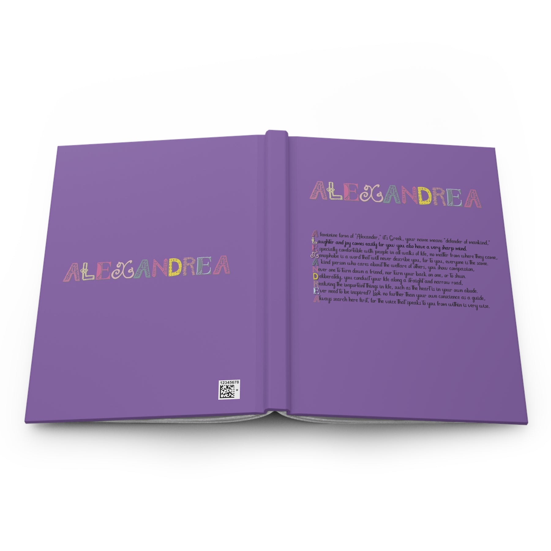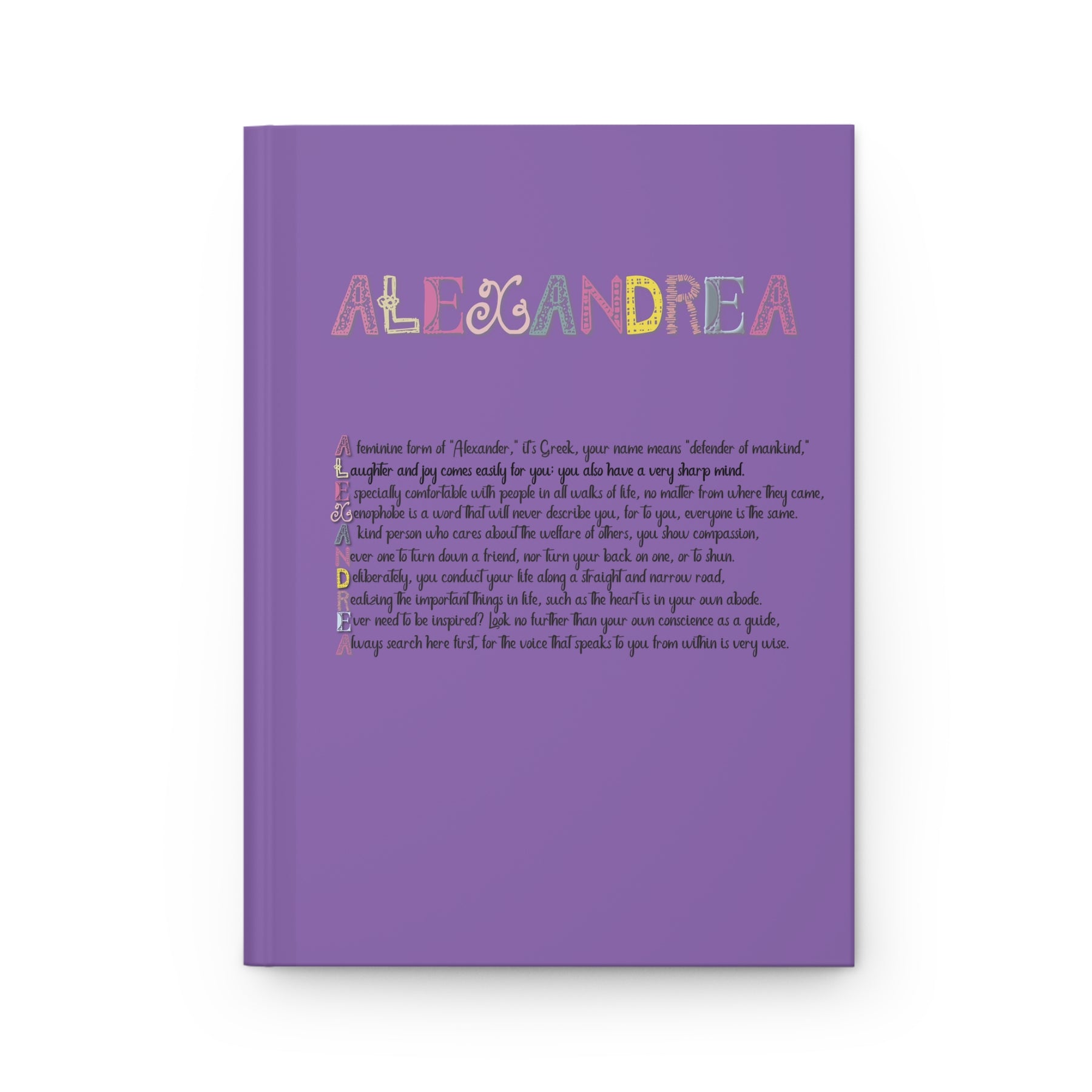 Help people write down their dreams in style with our Namesakes matte hardcover journal, featuring a poem that spells out your choice of name with its meaning and origin. Available in 5.75" x 8", with 150 lined pages, this sturdy hardcover journal features a fabulous font and a graphic. The matte laminate coating on the cover will make them stay true to your personal style. Tell us the first name you'd like on the journal, and we'll take care of the rest. This is perfect for birthdays, holidays, or any occasion.