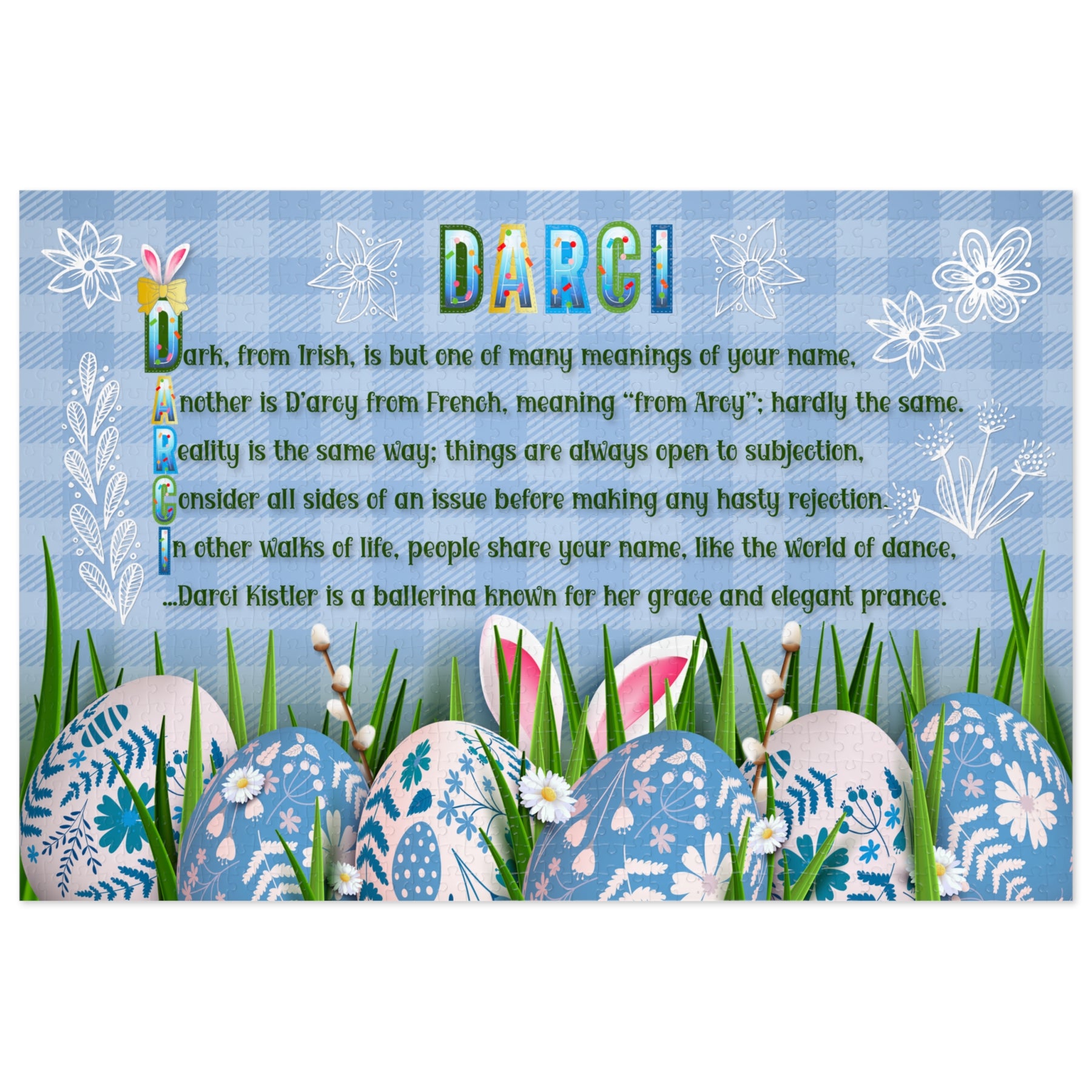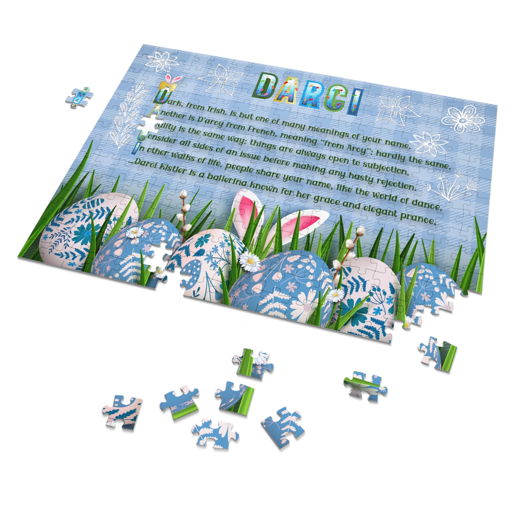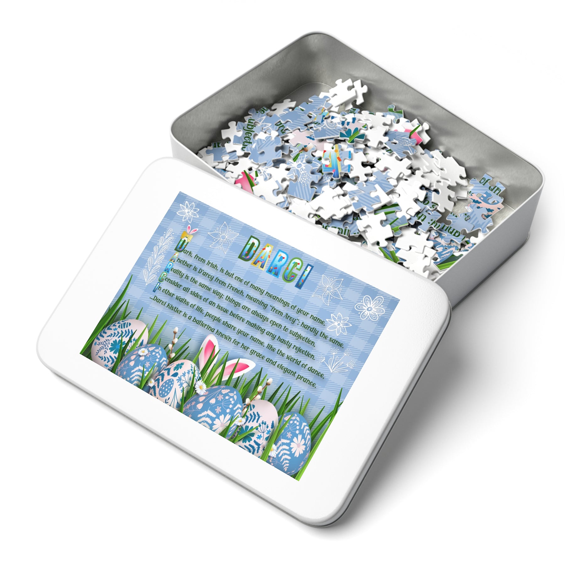 Namesakes from Moments in Rhyme creates acrostic poem puzzles that make thoughtful gifts for birthdays, holidays, Easter, or any special day. This puzzle has a comic-style look and a fun font. The poem shares the meaning and origin of the chosen name. Carefully crafted, this keepsake is designed to be a lasting memory. Let us know the name you'd like, and we’ll take care of the rest. The puzzle is built from sturdy puzzle board with a glossy finish and comes in a tin box ready for gifting. The design may change slightly based on the number of letters in the name.