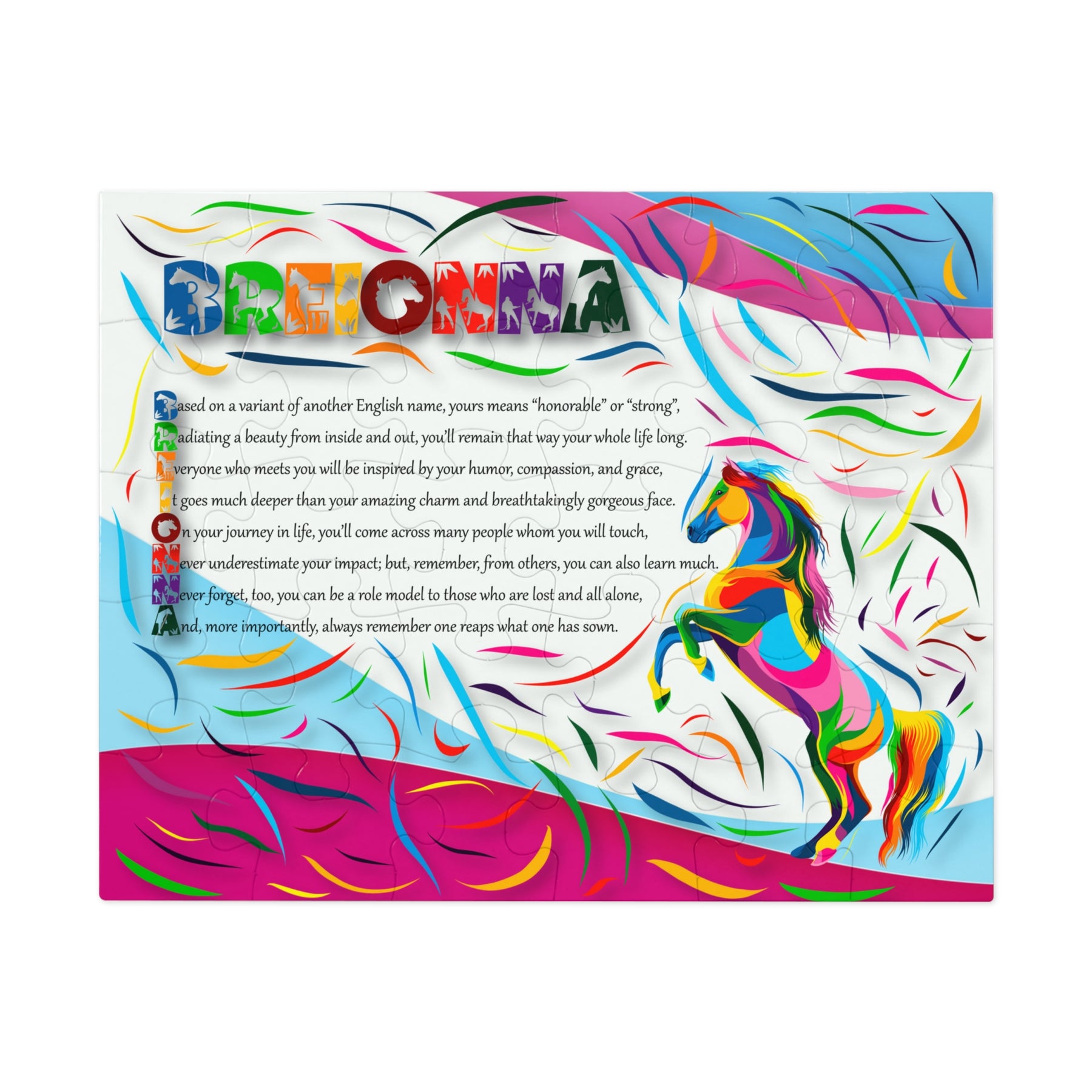 Namesakes from Moments in Rhyme creates acrostic poem puzzles that make thoughtful gifts for birthdays, holidays, Easter, or any special day. This puzzle has a vibrant horse design and a fun font. The poem shares the meaning and origin of the chosen name. Carefully crafted, this keepsake is designed to be a lasting memory. Let us know the name you'd like, and we’ll take care of the rest. The puzzle is built from sturdy puzzle board with a glossy finish and comes in a tin box ready for gifting. The design may change slightly based on the number of letters in the name.
