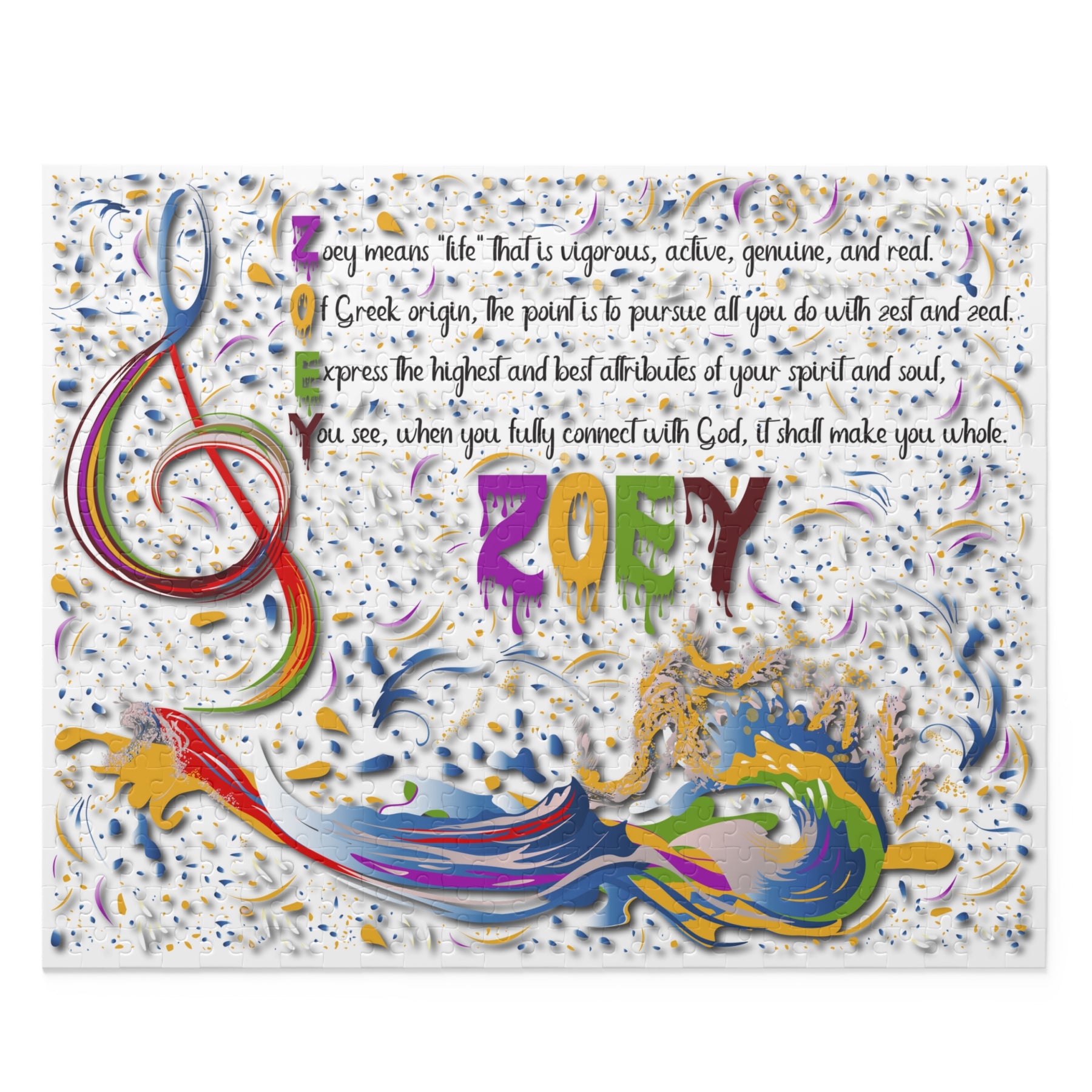 Namesakes from Moments in Rhyme creates acrostic poem puzzles that make thoughtful gifts for birthdays, holidays, Easter, or any special day. This puzzle has a fabulous musical splash design and a fun font. The poem shares the meaning and origin of the chosen name. Carefully crafted, this keepsake is designed to be a lasting memory. Let us know the name you'd like, and we’ll take care of the rest. The puzzle is built from a sturdy puzzle board with a glossy finish and comes in a tin box ready for gifting. The design may change slightly based on the number of letters in the name.