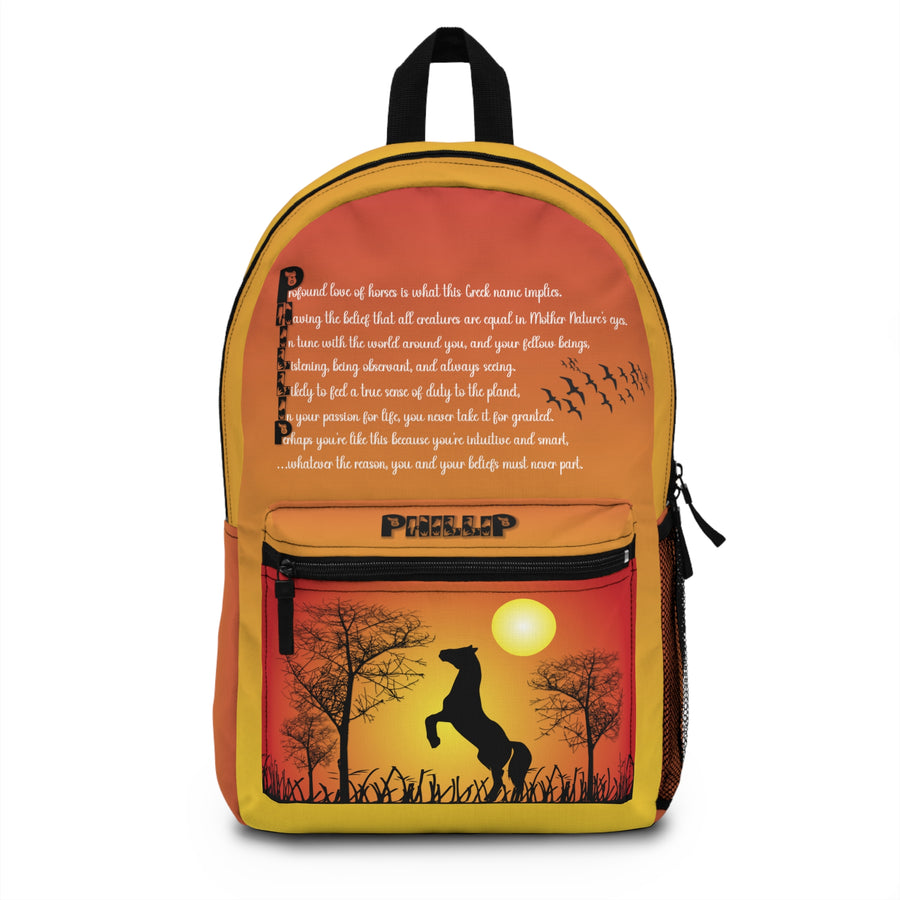 Gotta lot of stuff to take places? The Namesakes acrostic poem Sunset and Horse design backpack from Moments in Rhyme provides ample space for everything. Take it to class, on a trip, or wherever you need to go. It’s made from spun polyester, so it’s both lightweight and tough, weighing just 1.3 lbs. The adjustable shoulder straps and blank name tag inside add convenience, and the waterproof material keeps your things safe. Just tell us the name you’d like on it, and we’ll do the rest.