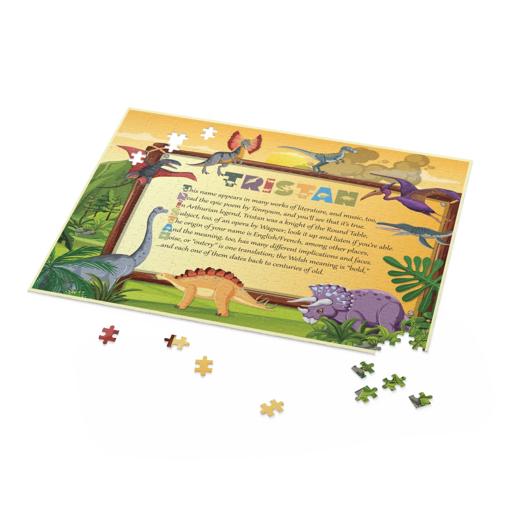 Namesakes from Moments in Rhyme creates acrostic poem puzzles that make thoughtful gifts for birthdays, holidays, Easter, or any special day. This puzzle has an adorable dinosaur design and a fun dinosaur font. The poem shares the meaning and origin of the chosen name. Carefully crafted, this keepsake is designed to be a lasting memory. Let us know the name you'd like, and we’ll take care of the rest. The puzzle is built from sturdy puzzle board with a glossy finish and comes in a tin box ready for gifting. The design may change slightly based on the number of letters in the name.