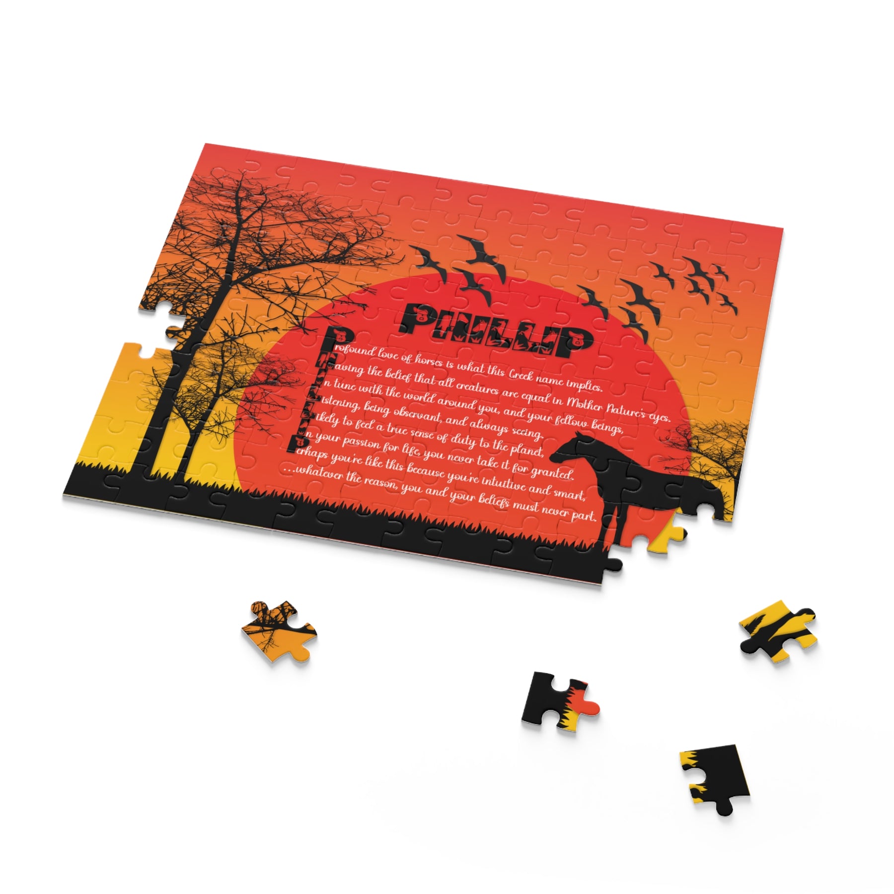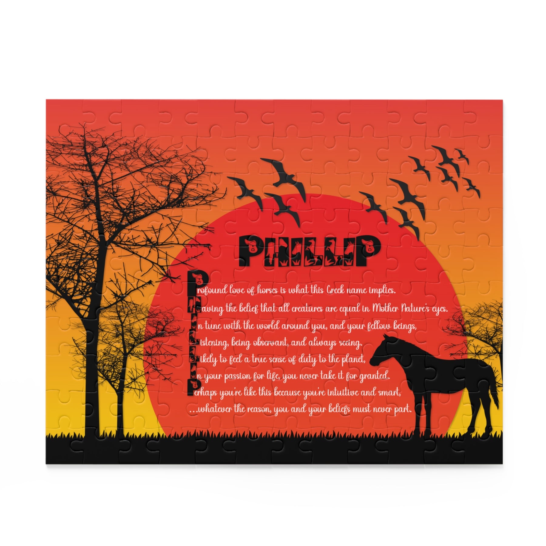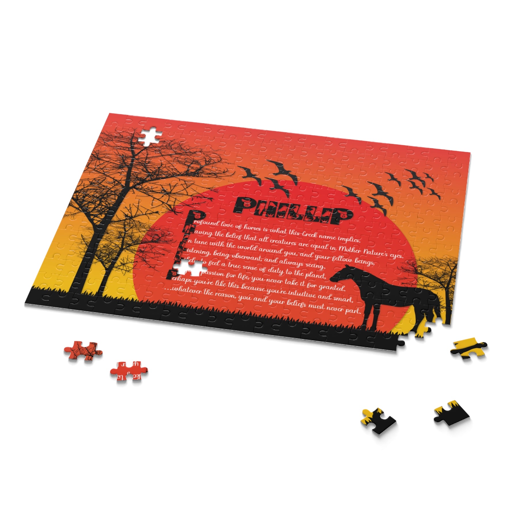 Namesakes from Moments in Rhyme creates acrostic poem puzzles that make thoughtful gifts for birthdays, holidays, Easter, or any special day. This puzzle has a sunset and horse design with a fun font. The poem shares the meaning and origin of the chosen name. Carefully crafted, this keepsake is designed to be a lasting memory. Let us know the name you'd like, and we’ll take care of the rest. The puzzle is built from sturdy puzzle board with a glossy finish and comes in a tin box ready for gifting. The design may change slightly based on the number of letters in the name.