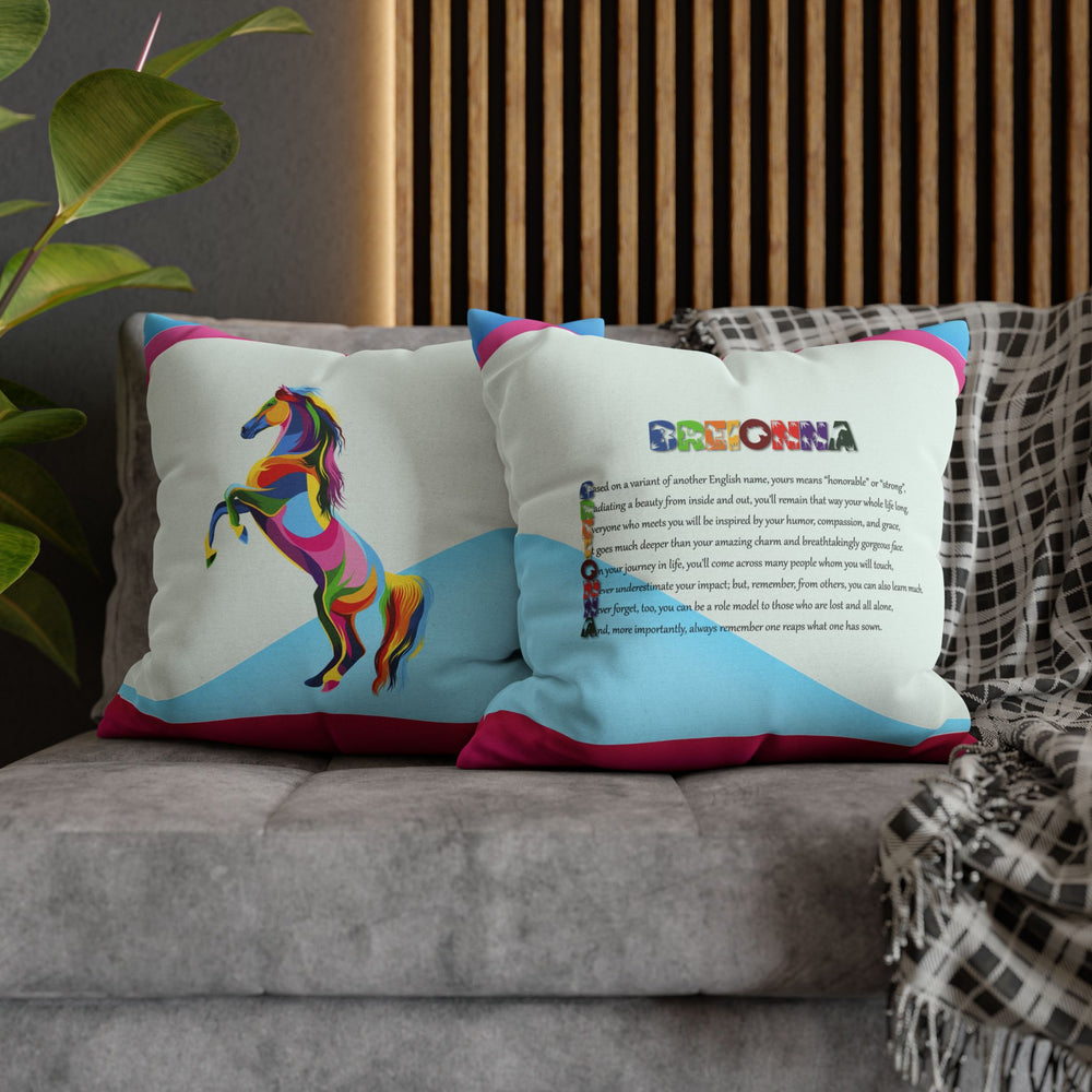 Give the gift of personalized comfort with our unique Namesakes pillow cover featuring an acrostic poem that spells out the name, meaning, and origin. This vibrant, fun horse design is perfect for birthdays, Easter, Valentine's Day, or Christmas. Check out the adorable horse font! This is a one-of-a-kind present for someone special in your life, and it is sure to become a lifetime keepsake.